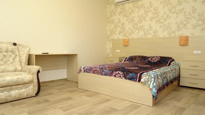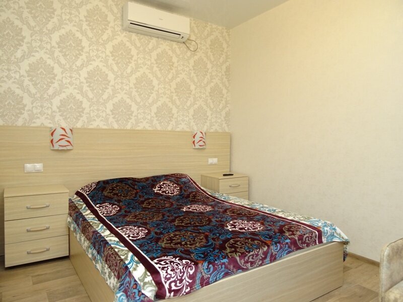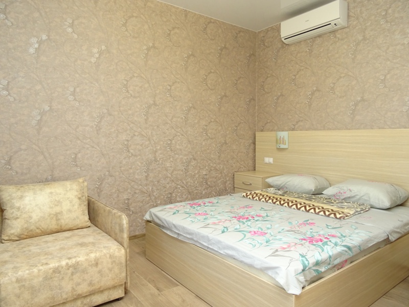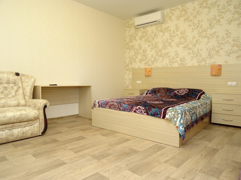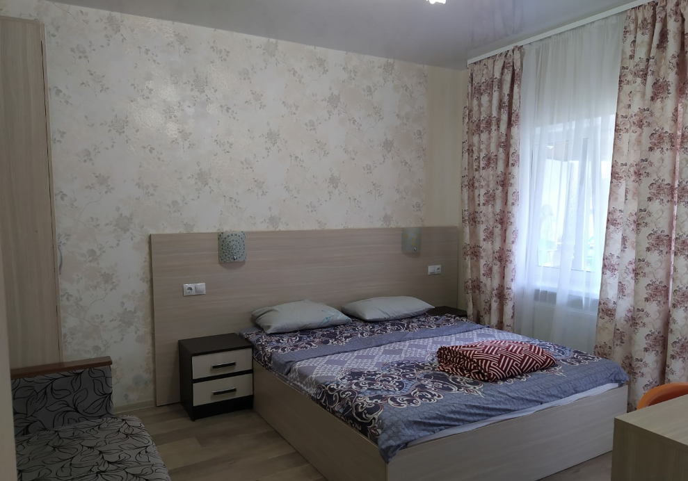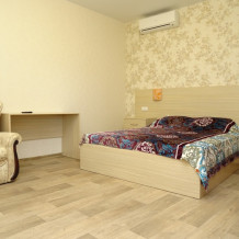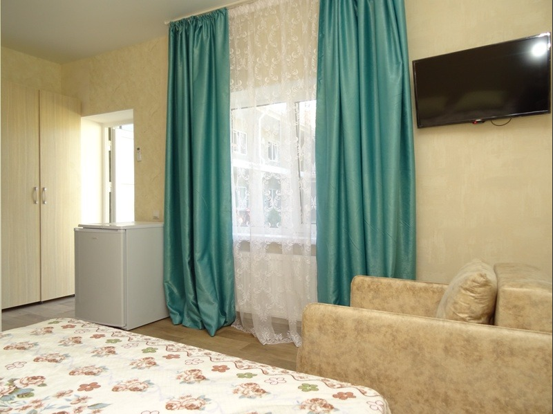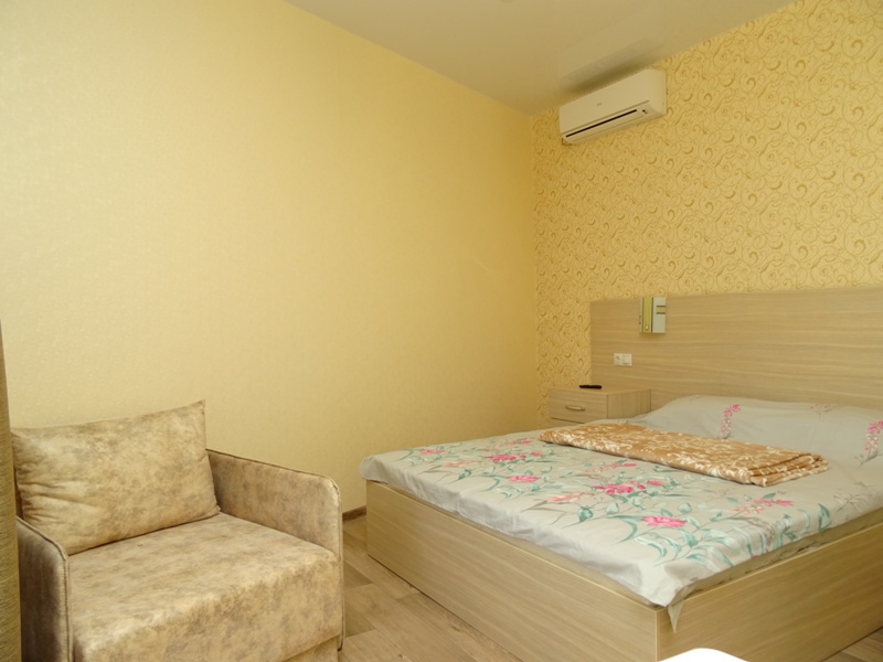 В номере: односпальные или двуспальная кровати, диван-кровать, кресло-кровать, шкаф, стулья, прикроватные тумбочки, журнальный столик, вешалка, зеркало, сплит-система, телевизор, спутниковое ТВ, интернет, холодильник, электрочайник, посуда, балкон. Санузел, душ в номере.