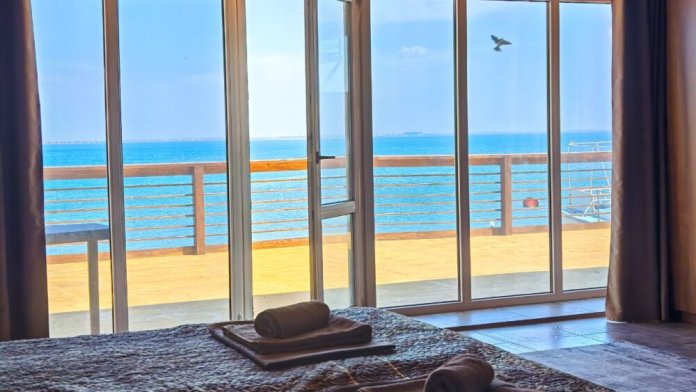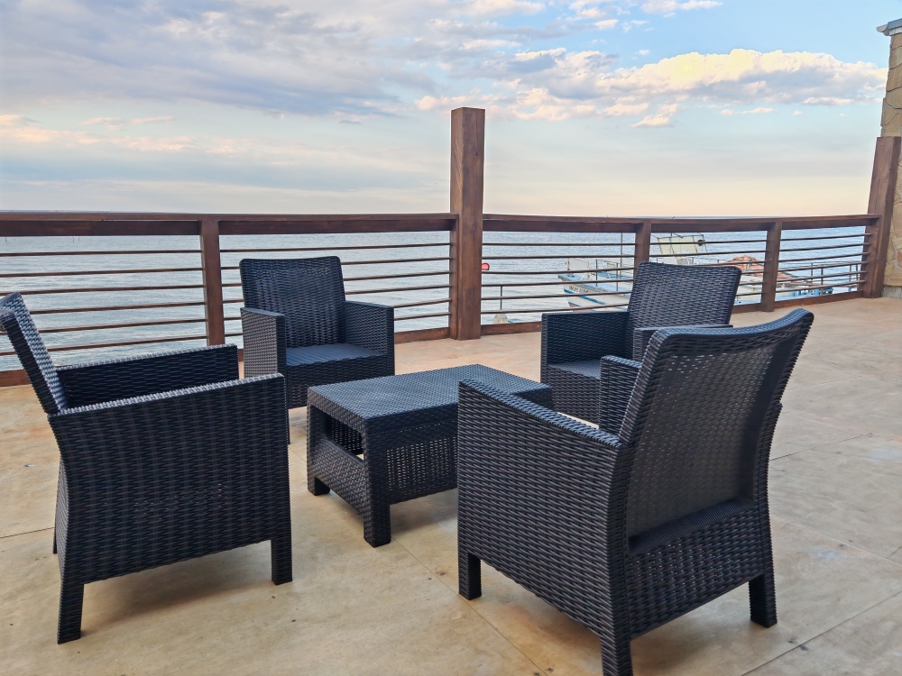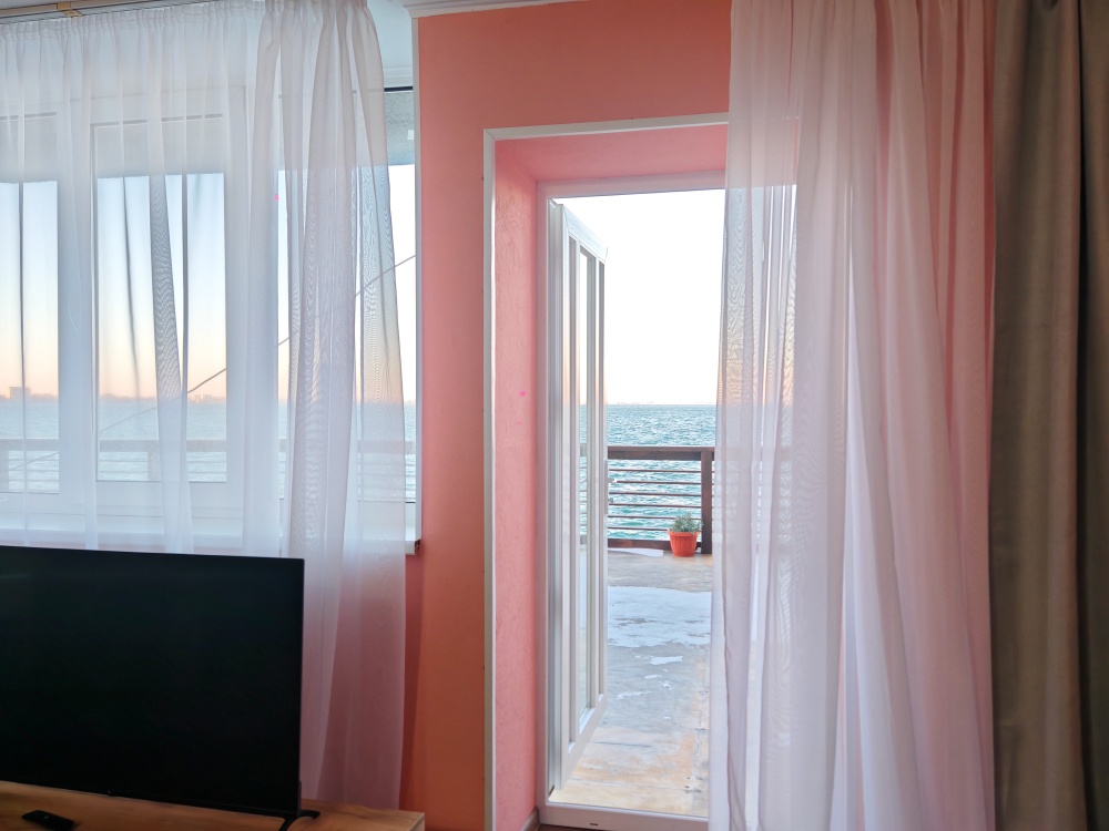 Мебель: двуспальная кровать, шкаф, стулья, прикроватные тумбочки, стол, зеркало, кухонный гарнитур, обеденная, зонавозможно доп. место (платно) - еврораскладушка.