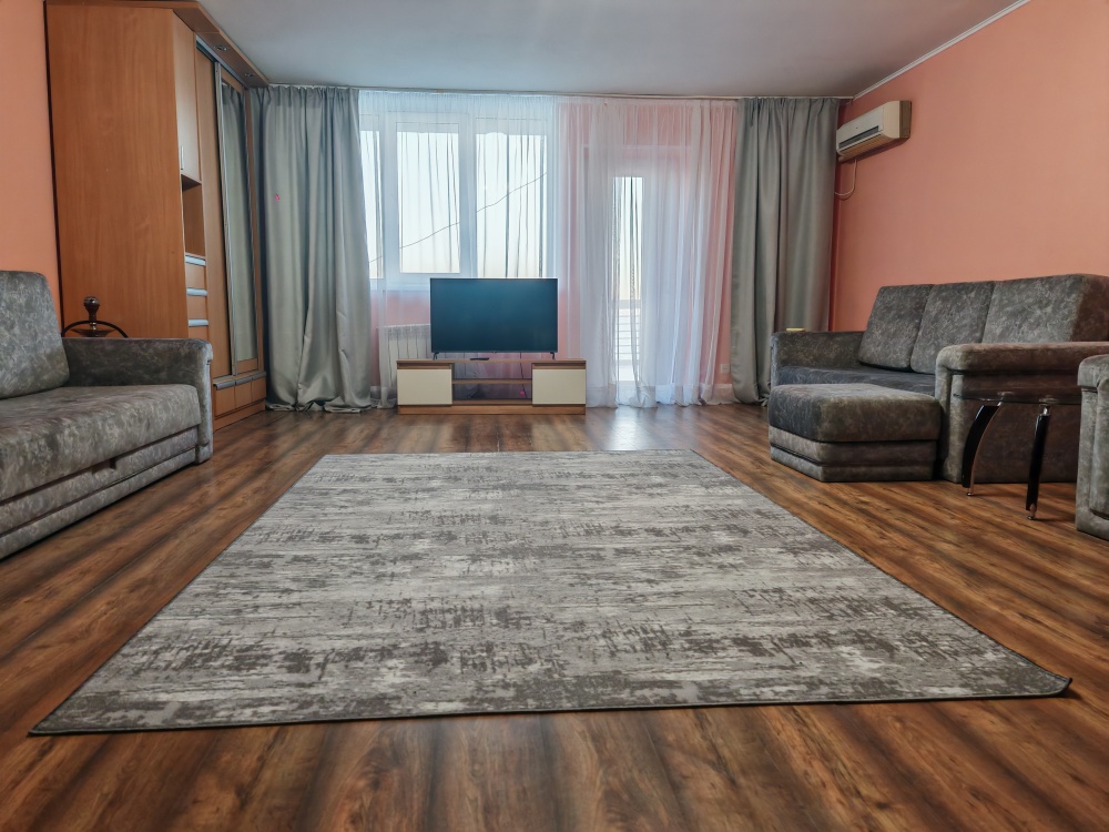 Мебель: двуспальная кровать, кресло-кровать, шкаф, стол, журнальный столик, комод, прихожая, зеркало, кухонный гарнитур, обеденная зона, возможно доп.место (платно) - еврораскладушка.