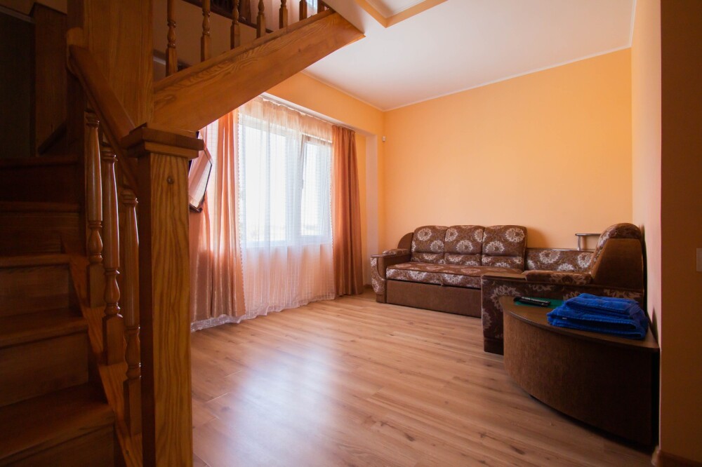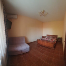 У нас песчаные пляжи и идеальный вход в море. При этом море совсем неглубокое - отлично подходит для отдыха с детьми. Вы всегда найдете себе место на пляже. Пляж оборудован лежаками, навесами и переодевалками и находится всего в 700 метров от гостевого дома, в 15 минутах ходьбы. Наш район славится целебным воздухом и очень чистым морем.
