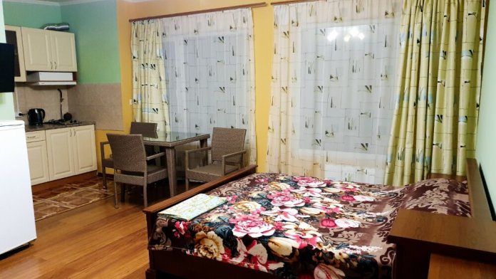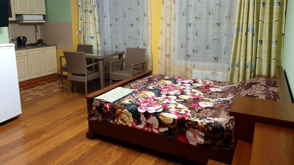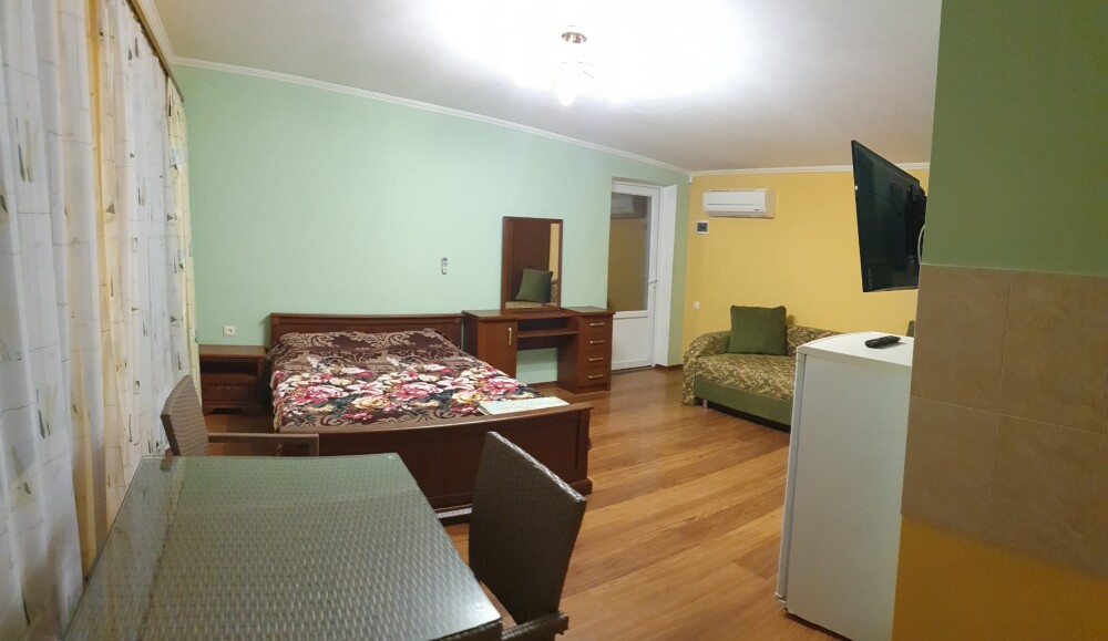 На всей территории отеля и в номерах есть бесплатный Wi-Fi, все наши комнаты имеют свежий ремонт, хорошую мебель, удобства в номере, кондиционер, телевизор, холодильник. Проводится уборка номеров, 1 раз в 5 дней (или по необходимости) меняются постельное бельё и полотенца. Закрытая территория гостевого дома заботливо озеленена множеством цветов и декоративных растений. Парковка под видеонаблюдением, бассейн с подогревом.