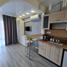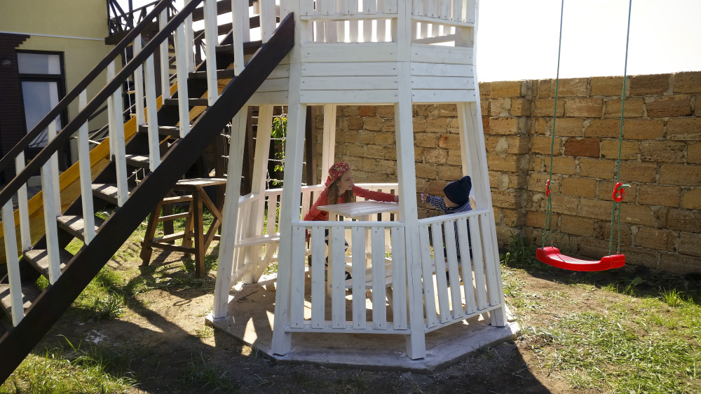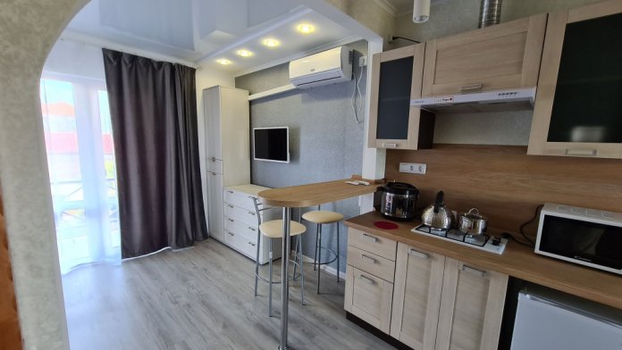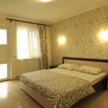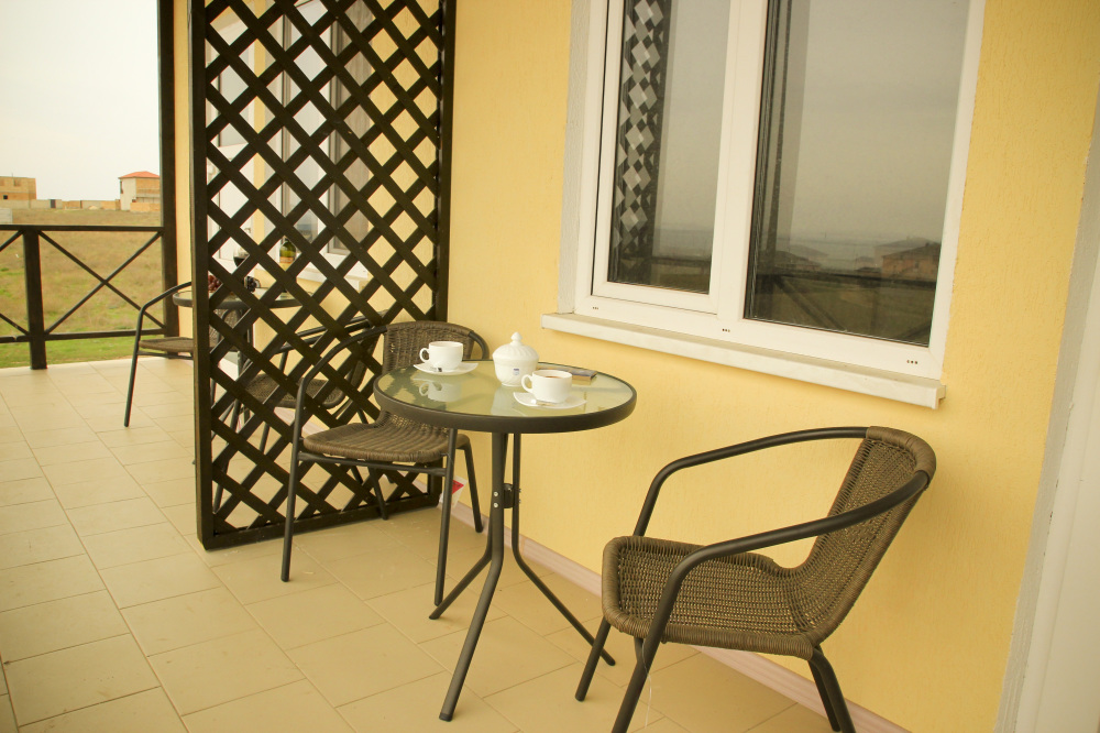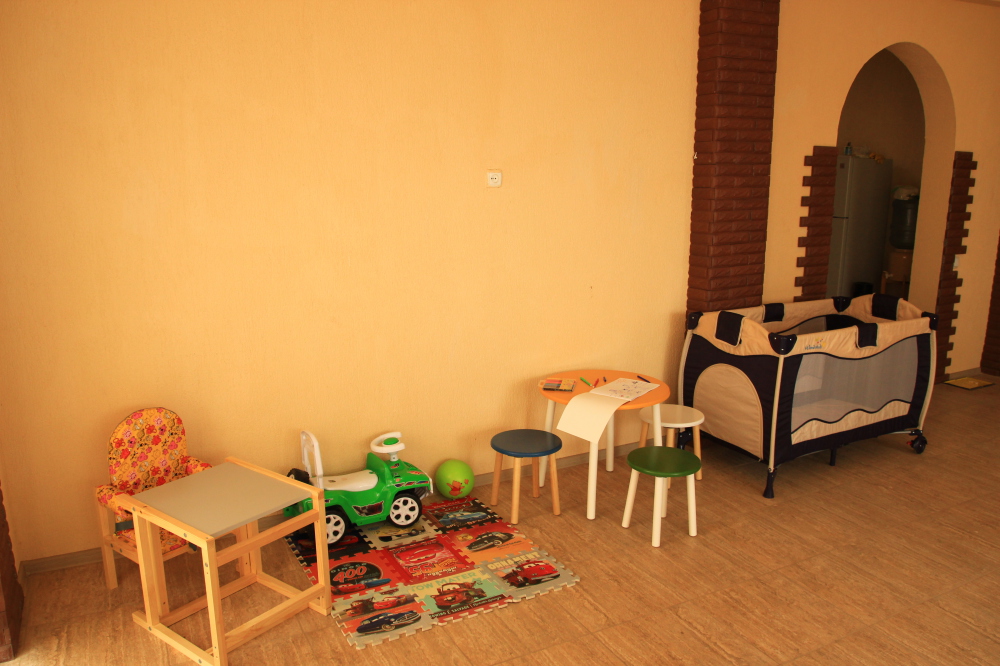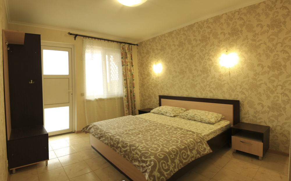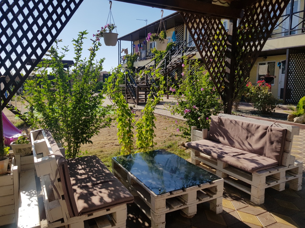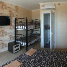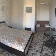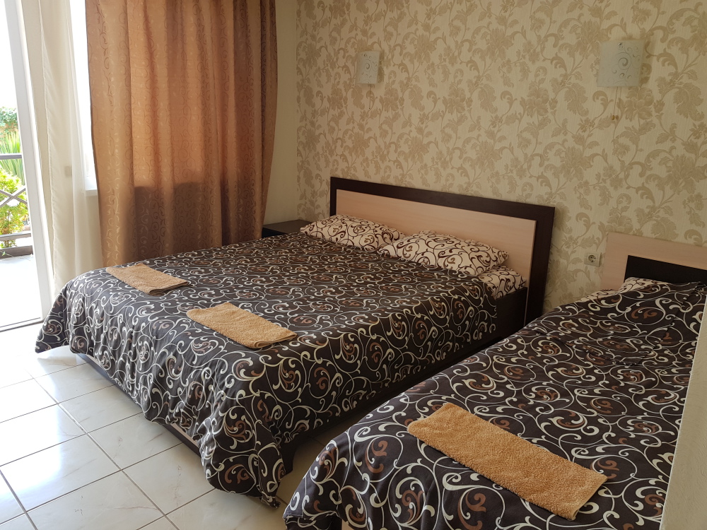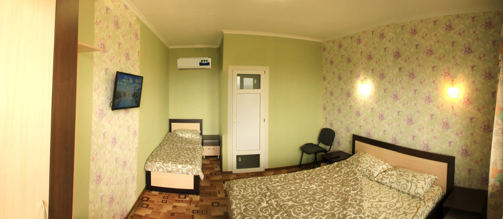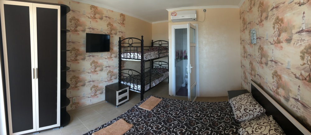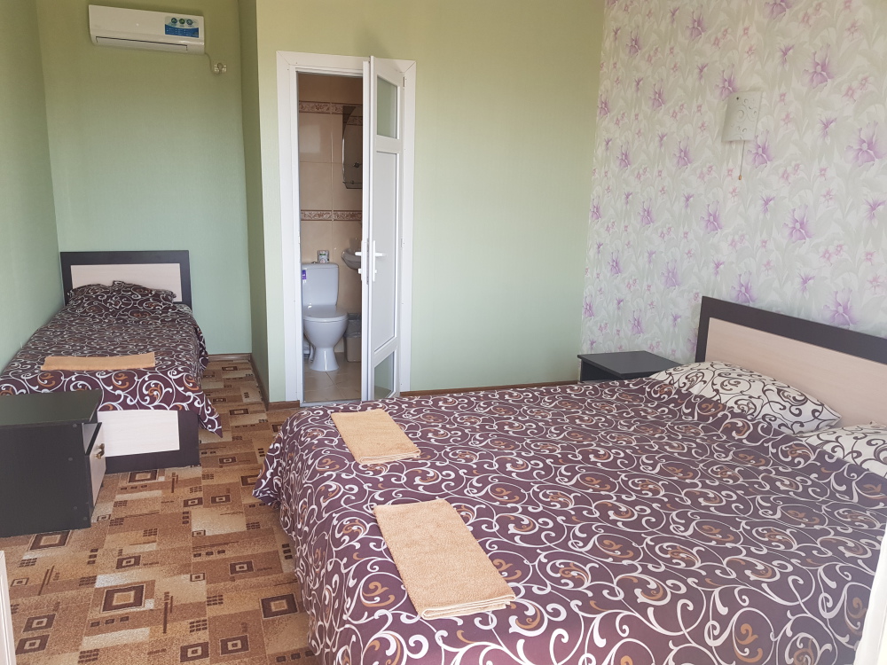 В наших комнатах - вся необходимая мебель, кондиционеры, телевизоры, санузел (холодная/горячая вода круглосуточно). Дополнительные места для Ваших детей, детские кроватки, стульчики для кормления, манеж. Из окон всех номеров открывается вид на море. На территории гостиницы комфортная обеденная зона с большим телевизором, просторная кухня с холодильником и плитой, уютная беседка с барбекю, детская площадка, парковка, Wi-Fi.