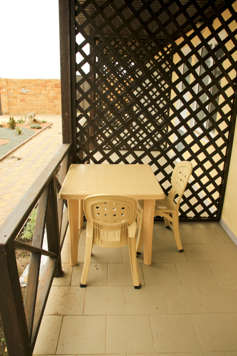 Двуспальная кровать (2х1,6м), двухэтажная кровать, прикроватные тумбочки, шкаф для вещей, кондиционер,телевизор, Wi-Fi, санузел с круглосуточной горячей и холодной водой, оборудована летняя терраса с мебелью