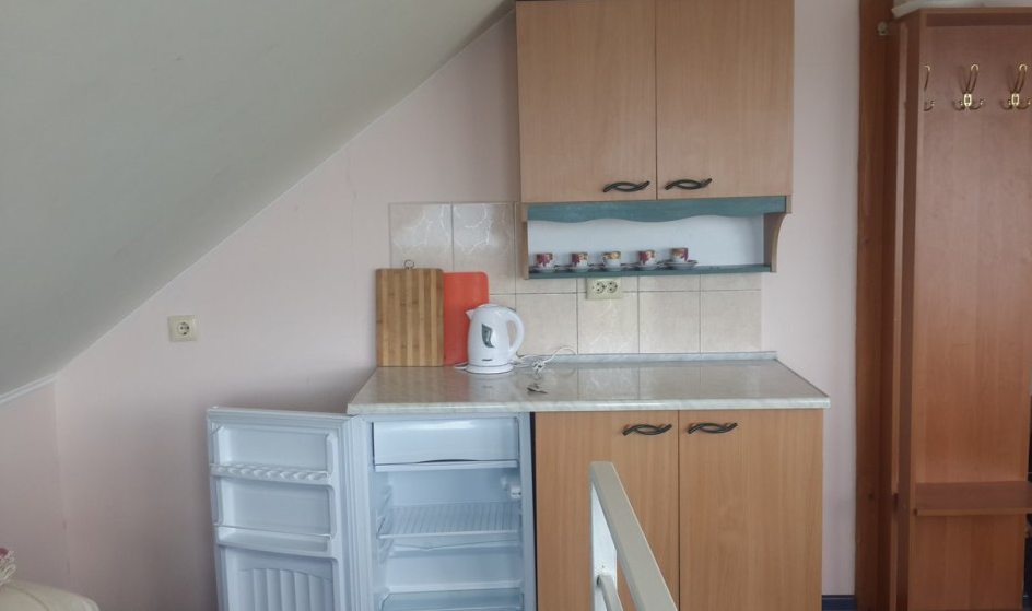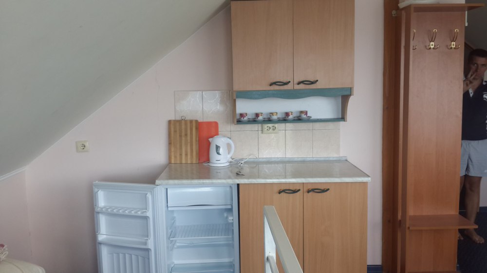 Номер с балконом и мини кухней со всеми удобствами расположен на третьем этаже .Есть такой же номер на втором этаже