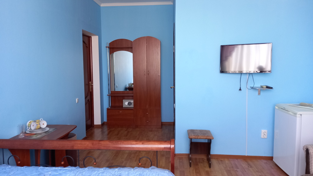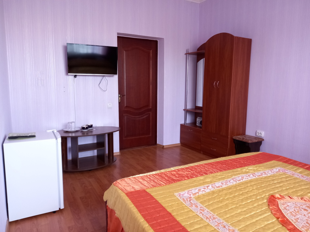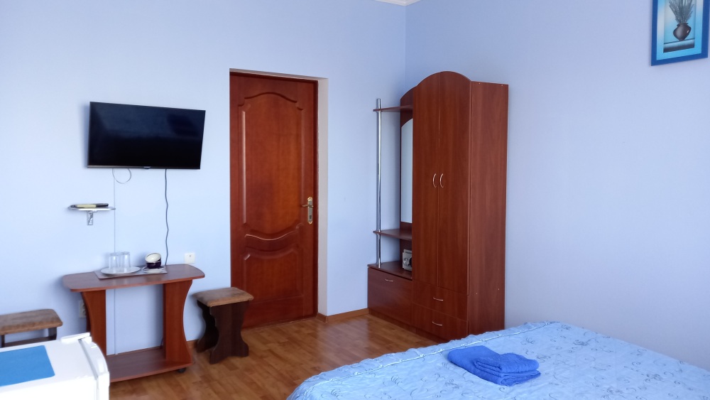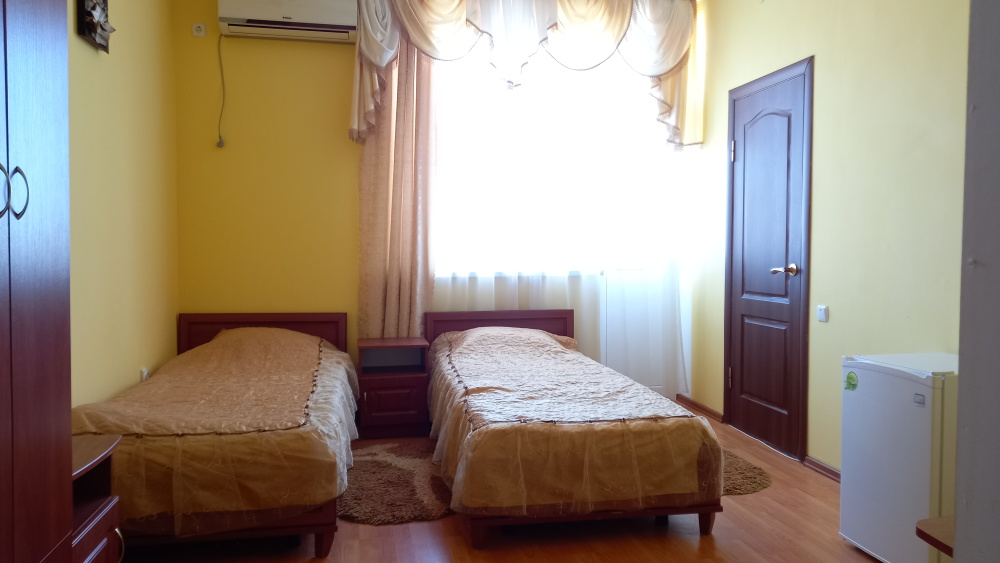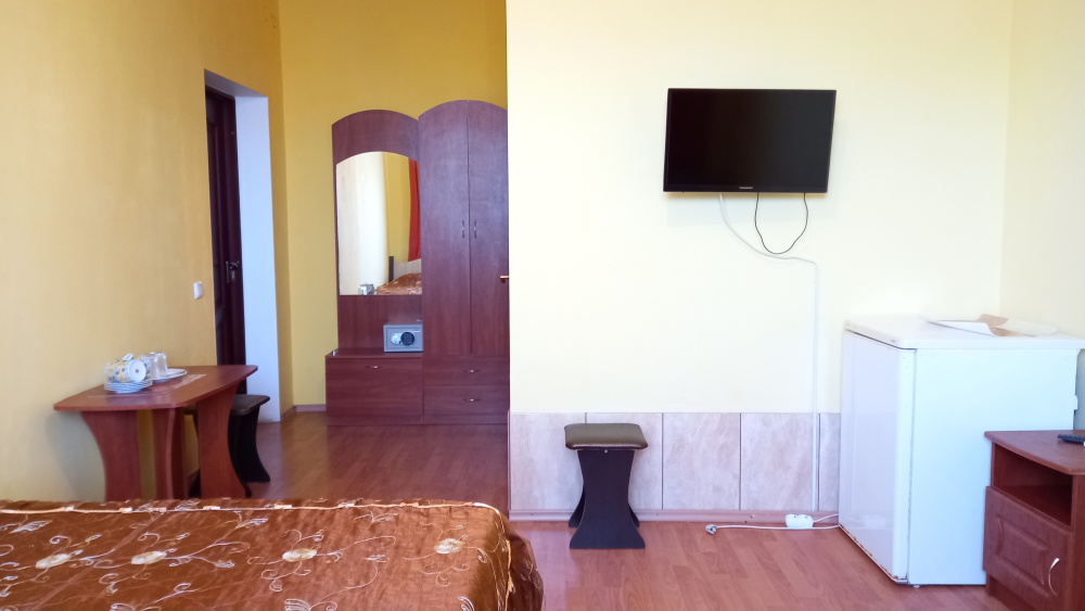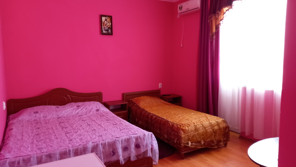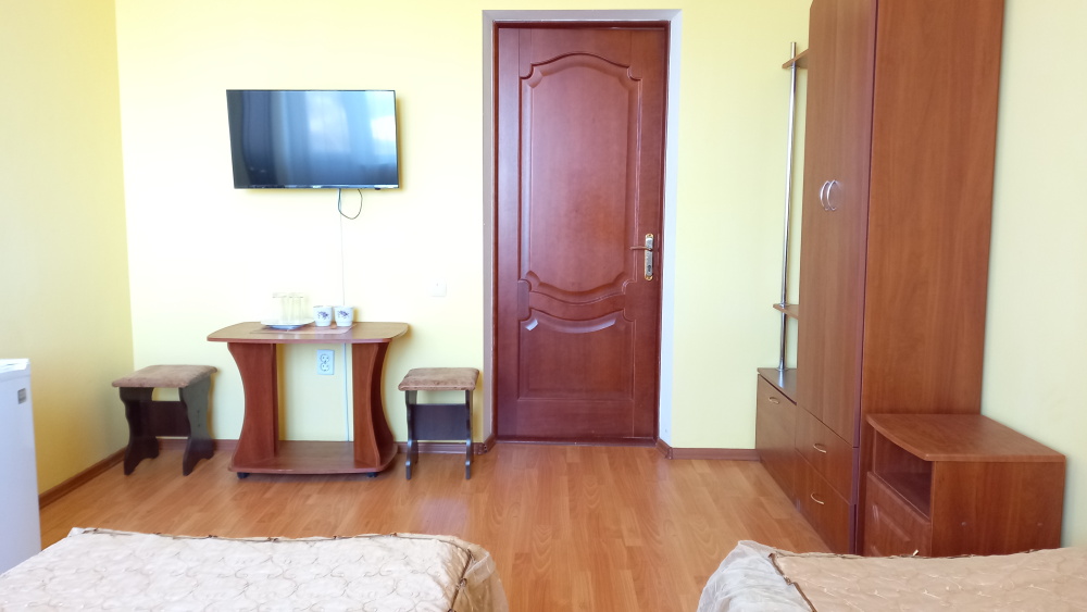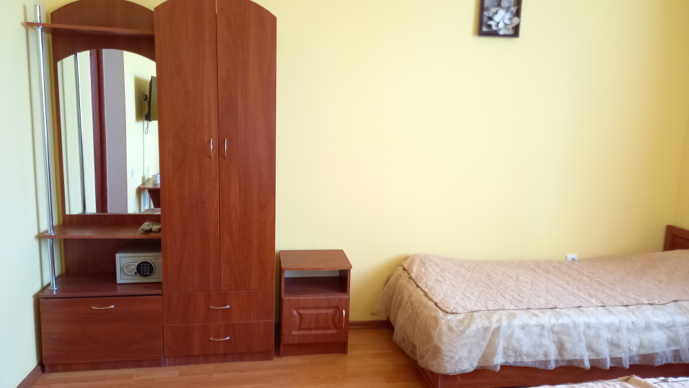 Чтоб Ваш отдых был максимально комфортным все наши номера благоустроены одно и двуспальными кроватями с ортопедическими матрасами, собственным санузлом с душевой кабиной и предоставляемыми гигиеническими средствами (жидкое мыло, туалетное бумага),комплектом полотенец (банное, для лица),холодильником, Ж.К. телевизором с 28 цифровыми каналами, кондиционером, набором чайной посуды (эл.чайник на этаже перед входом в номер), сейфом с электронным замком(1 кор.)Вентилятором(2 кор.) Холодная и горячая вода круглосуточно!