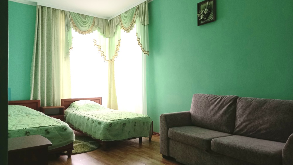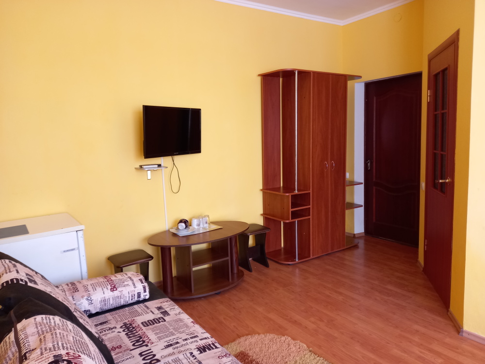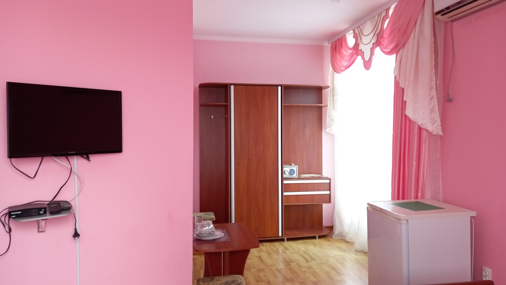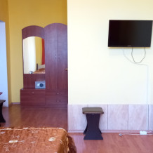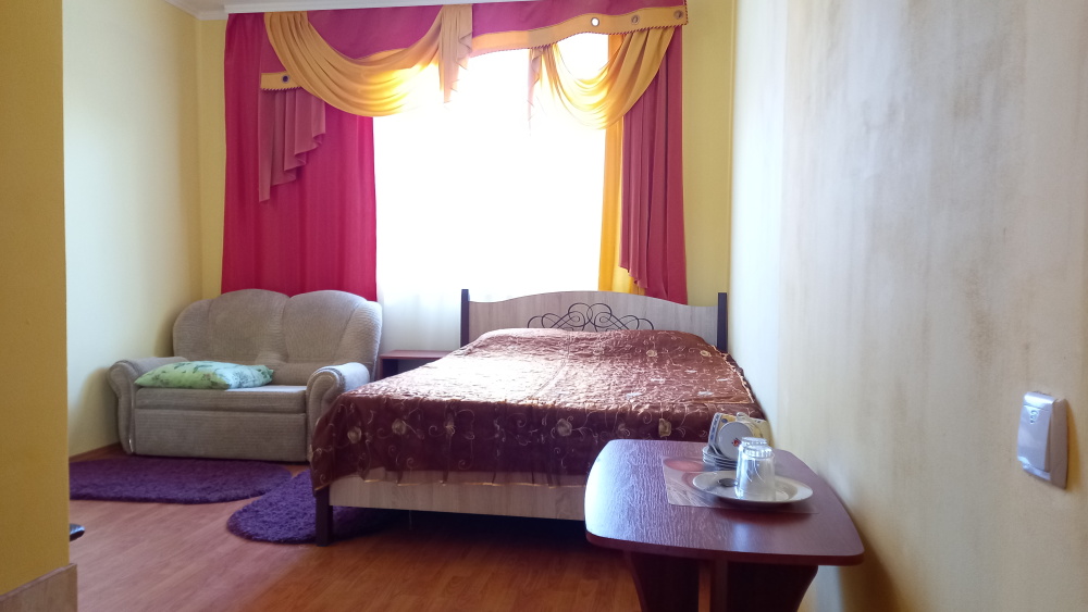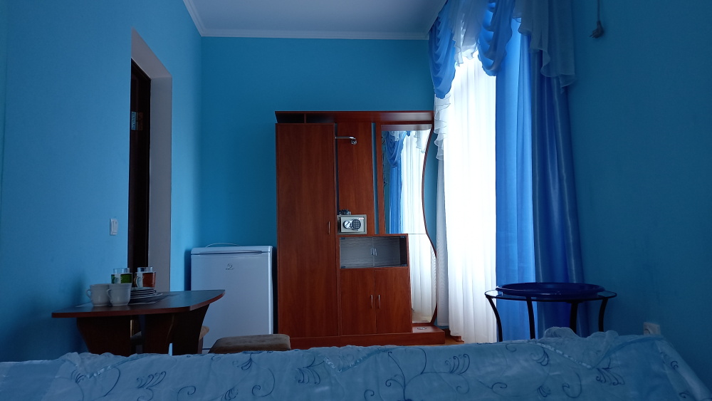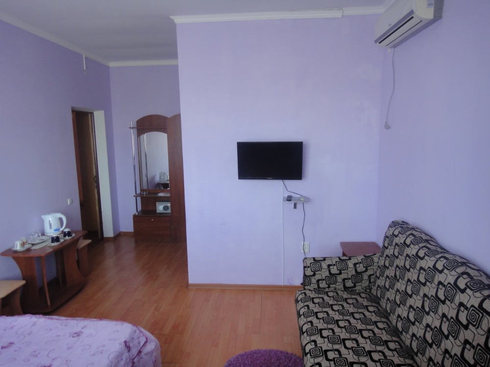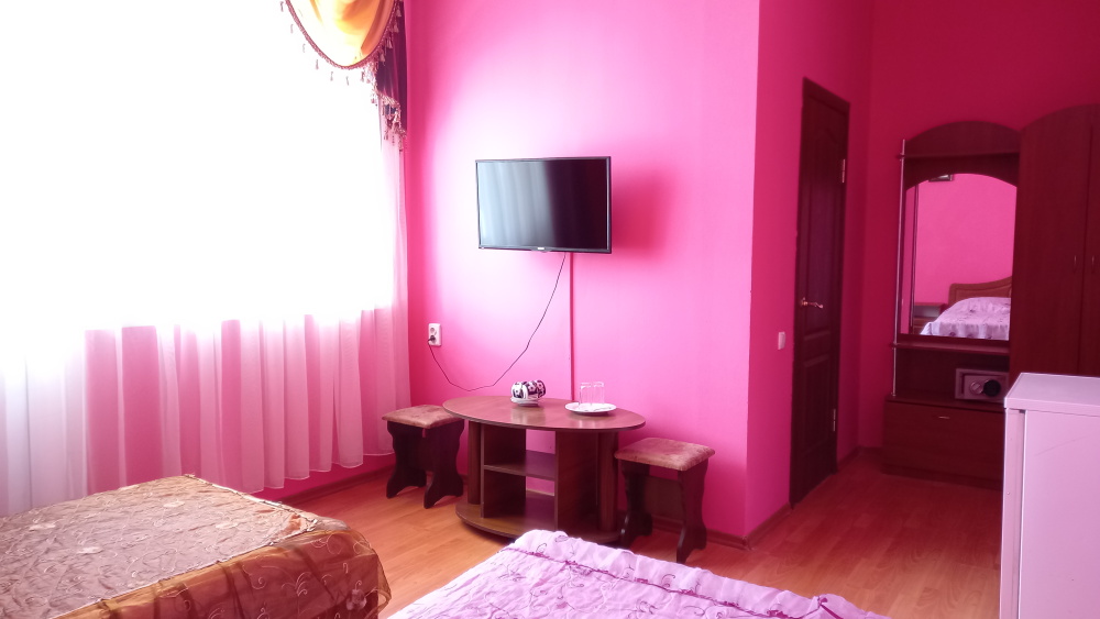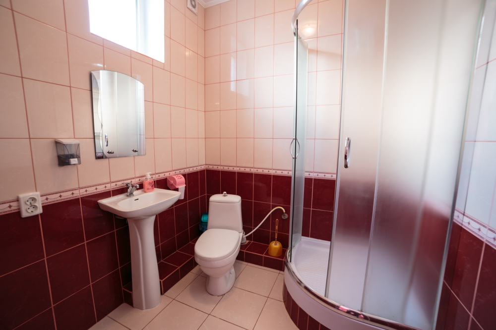 Чтоб Ваш отдых был максимально комфортным все наши номера благоустроены одно и двуспальными кроватями с ортопедическими матрасами, собственным санузлом с душевой кабиной и предоставляемыми гигиеническими средствами (жидкое мыло, туалетное бумага),комплектом полотенец (банное, для лица),холодильником, Ж.К. телевизором с 28 цифровыми каналами, кондиционером, набором чайной посуды (эл.чайник на этаже перед входом в номер), сейфом с электронным замком(1 кор.)Вентилятором(2 кор.) Холодная и горячая вода круглосуточно!