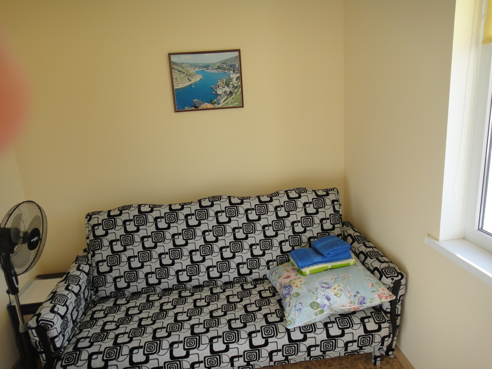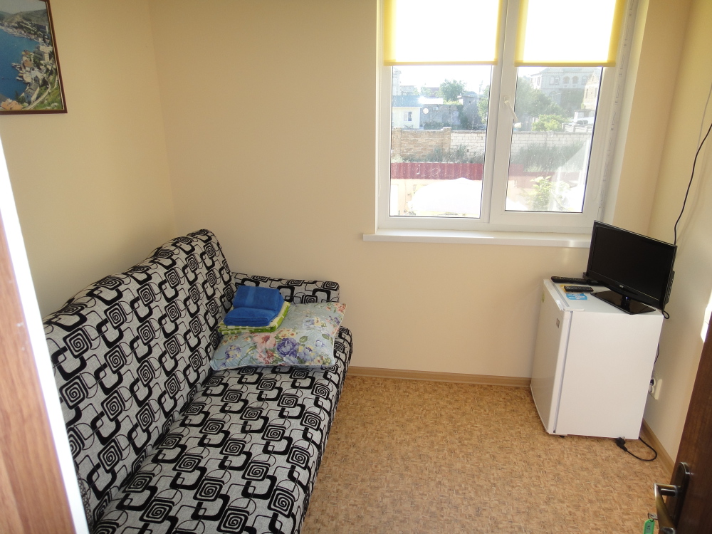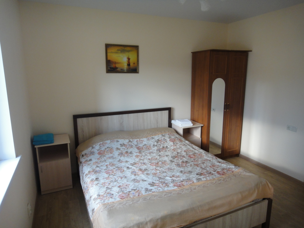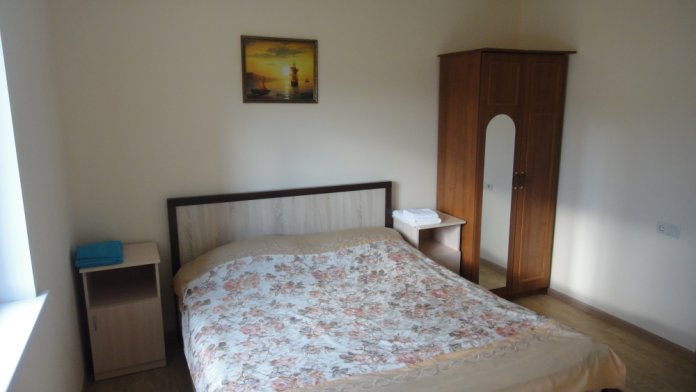 Номерной фонд представлен 1−2−3−4 местными, одно и двухкомнатными номерами. На втором и третьем этажах с балконов открывается живописный вид на море и озеро с лебедями.