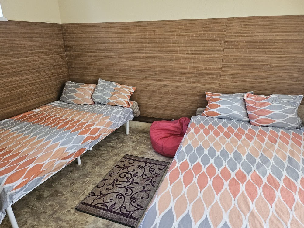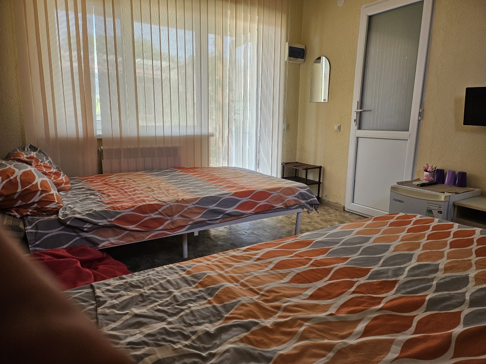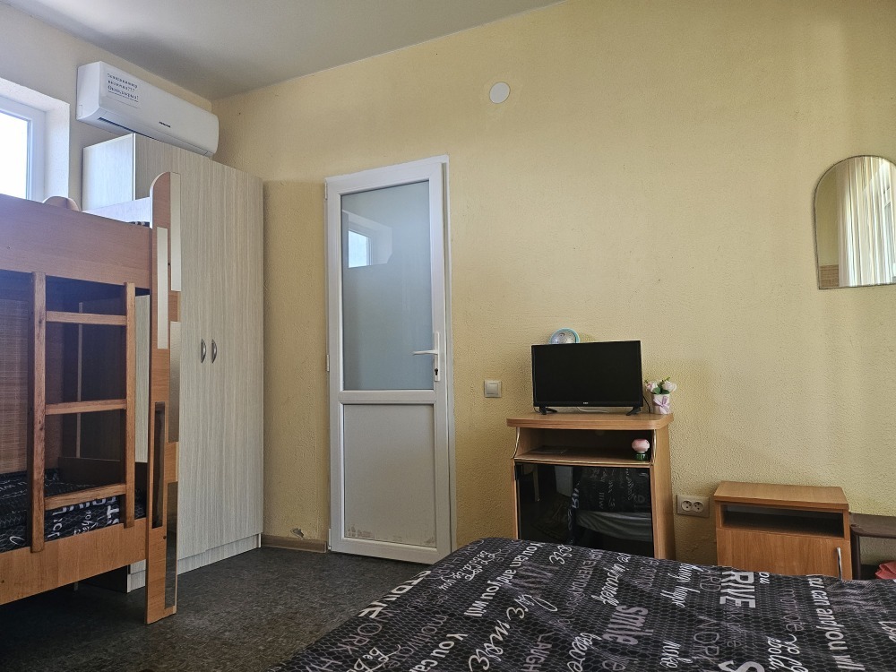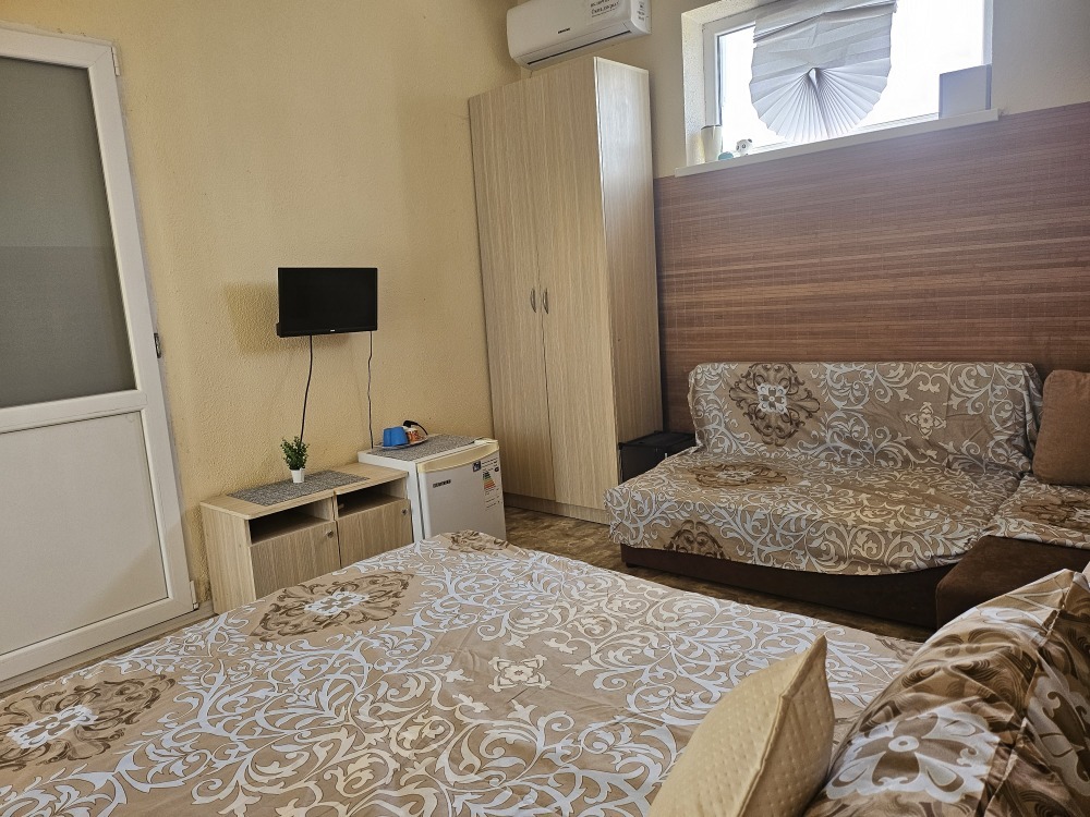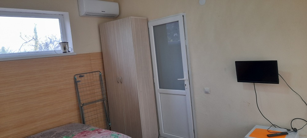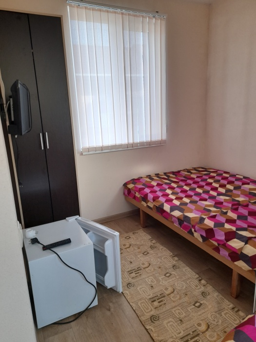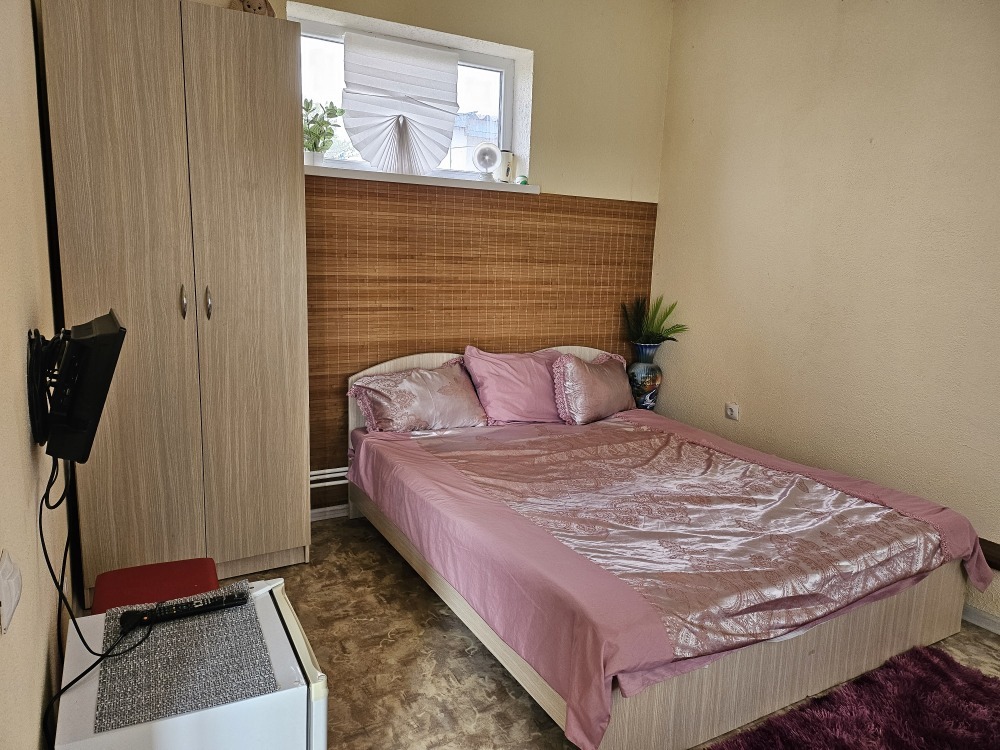 В номере телевизор, холодильник, интернет, кондиционер, электрочайник, шкаф для хранения вещей. В номере все удобства, постельное белье, полотенца, посуда-предоставляем. Свой санузел в номере-горячая, холодная вода-круглосуточно.