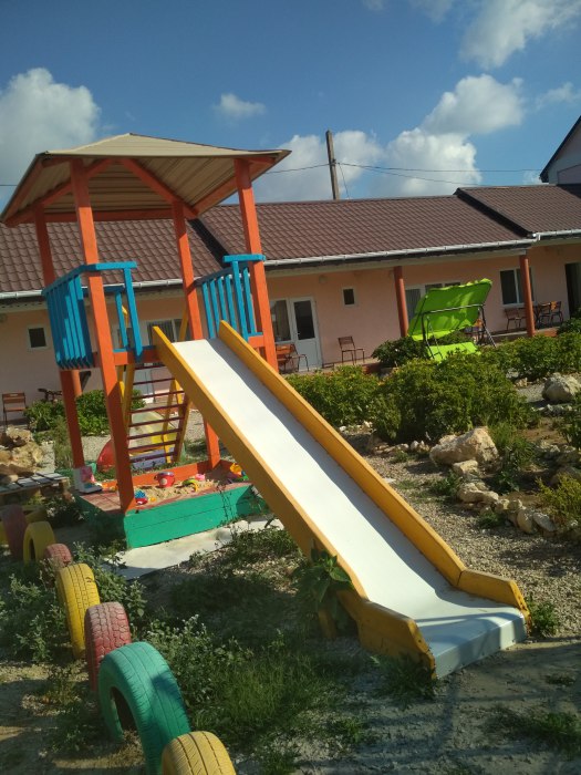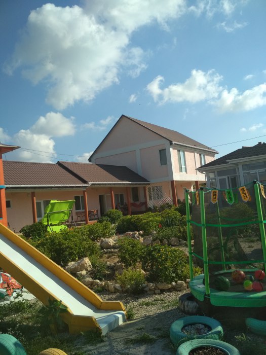 Гостевой дом - новый уютный комплекс 2017 года постройки, в строительство которого мы вложили свою душу, надеясь найти отклик и признание в Ваших сердцах. На придомовой территории располагается благоустроенная кухня с гостевой зоной, всей необходимой техникой и посудой - бойлер, газовая плита, духовка, пароварка, микроволновая печь, стиральная машина автомат, утюг, есть детская площадка для досуга малышей, для взрослых удобные качели, гамаки. Мангал, тандыр с зоной отдыха.