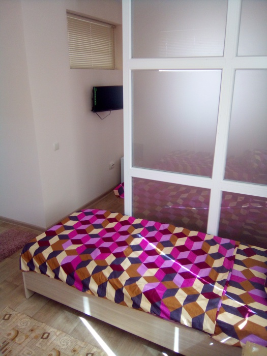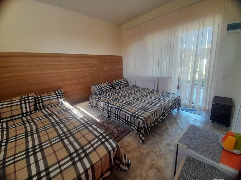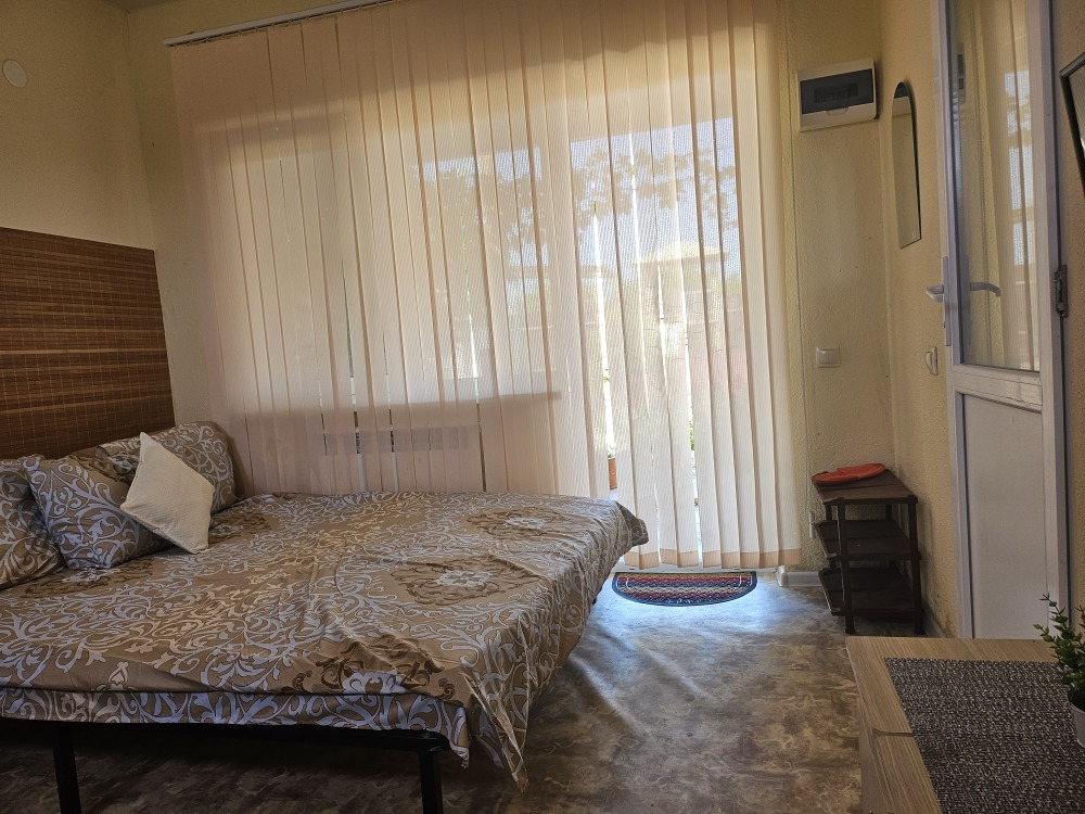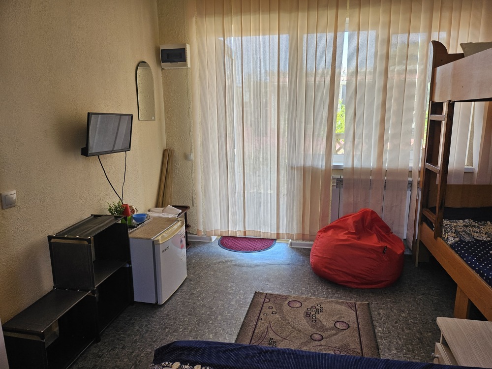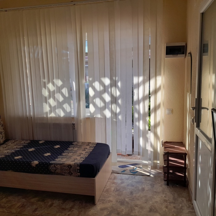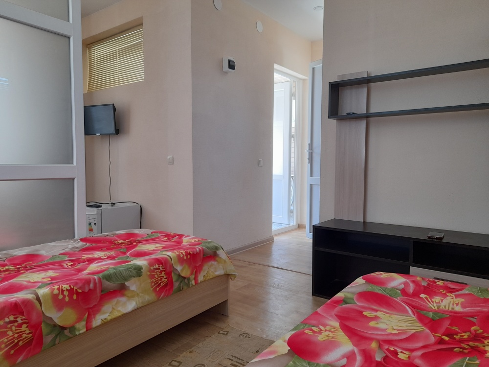 Уютный улучшенный номер «Студия», размещение до 4-х гостей. Приоритетом которых является совместный комфортный отдых. Номер разделен на 2 отдельные части, для уютного проживания семьи, с возможностью уединиться находясь в одном помещении, имеет прихожую +санузел, оснащен всей необходимой быт. техникой, мебелью, Wi-Fi. Терраса с садовой мебелью.