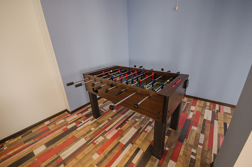 - отделка (на полу кафельная плитка, на стенах структурная краска, натяжной потолок)