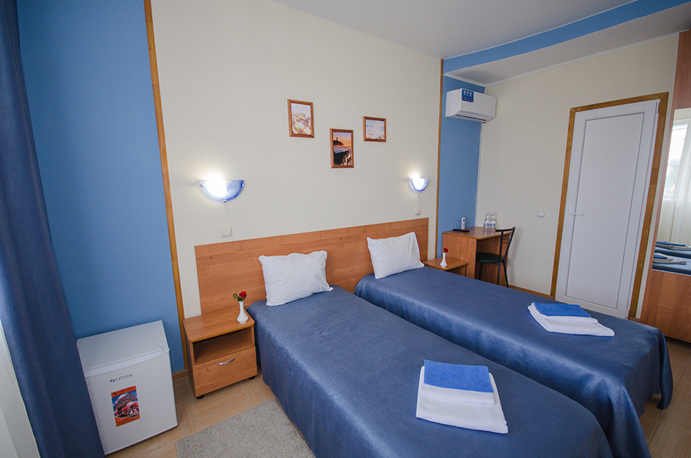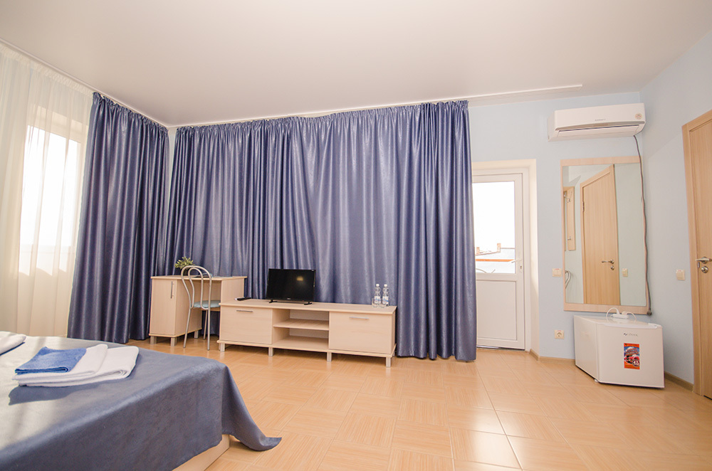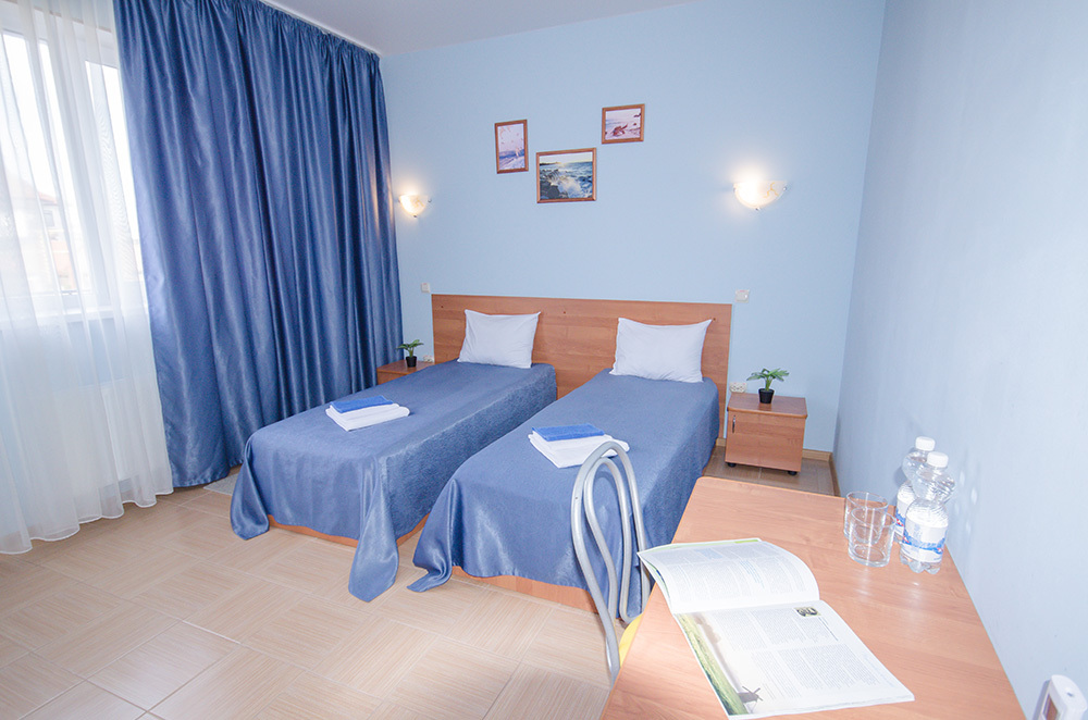 «Стандарт» – 2-х местный номер. Возможность установки двух дополнительных мест. Номера «Стандарт» расположены на 2 и 3 этажах и имеют собственные балконы с видом на дачные и гостевые дома.