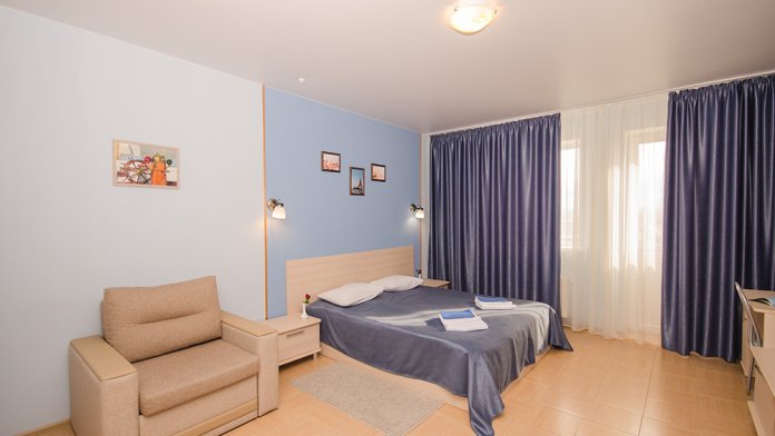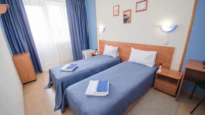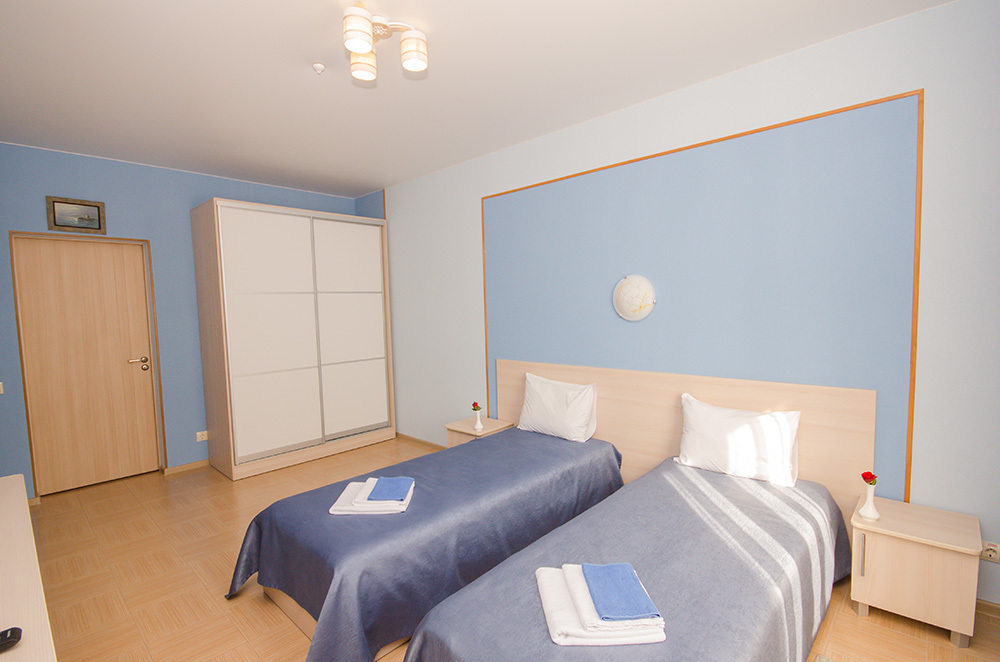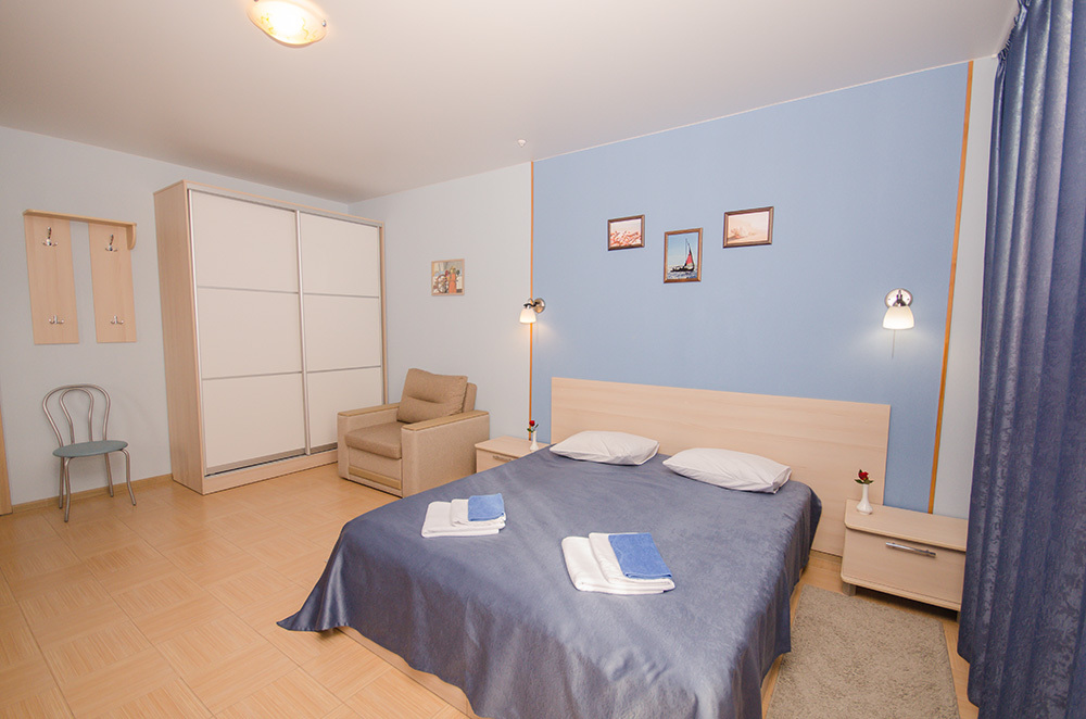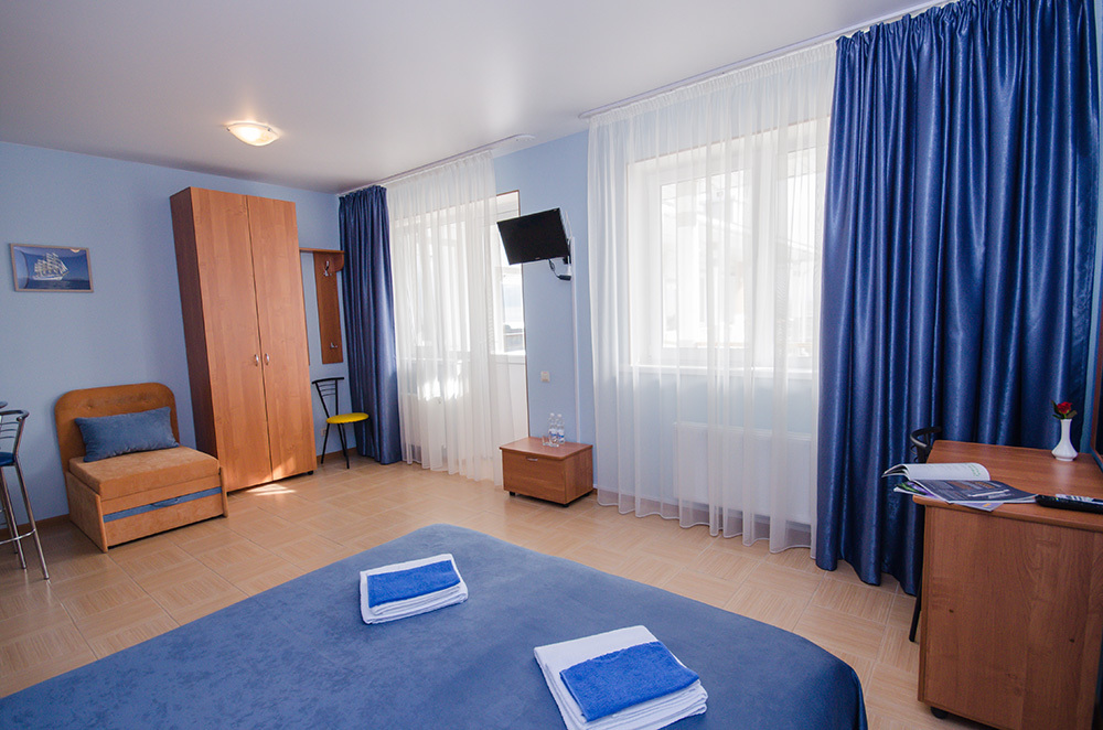 «Капитанский» – 2-х местный номер. Возможность установки одного дополнительного места. Номер расположен на 3 этаже и имеет прекрасный вид на окрестности.