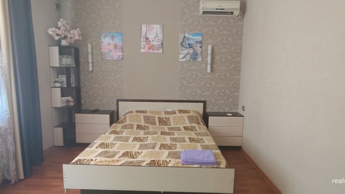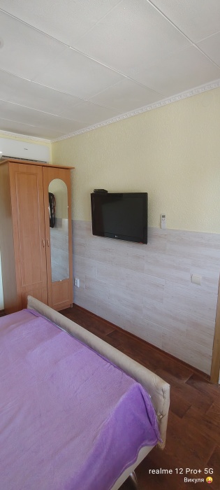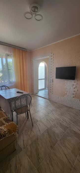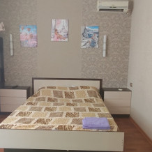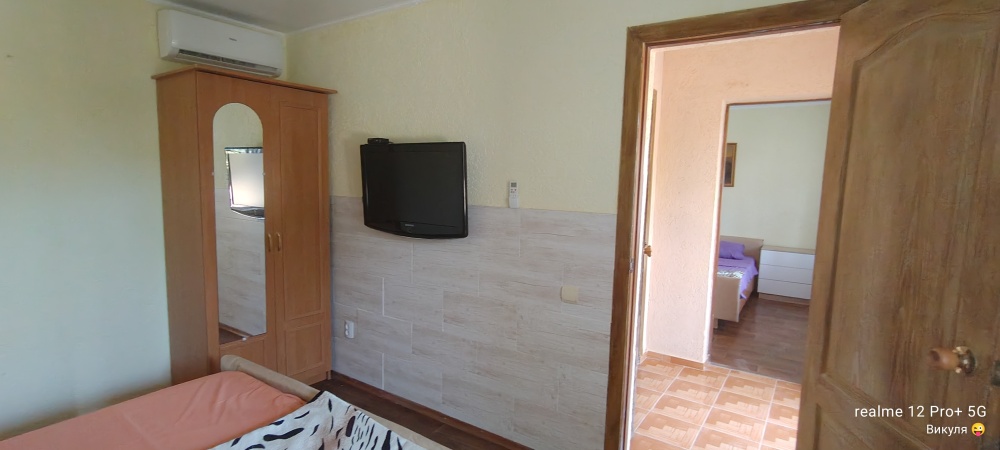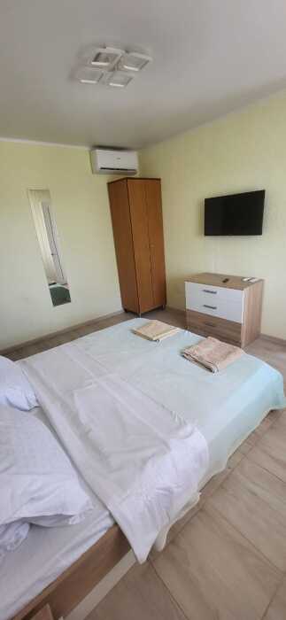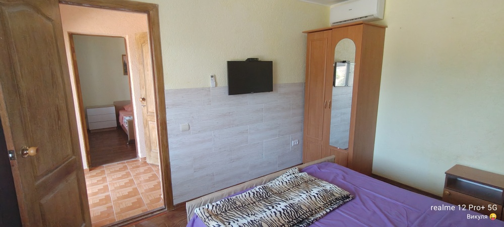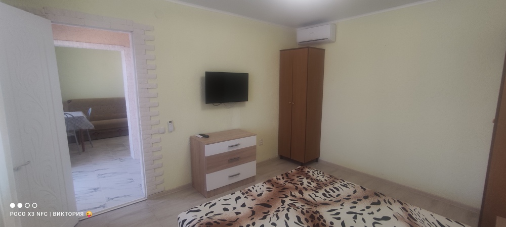 Номер сделан блоком , заходите на лево кухня с диваном, телевизор, кондиционер, холодильник, электрическая плита , на право спальня с двухспальной кроватью , телевизор, кондиционер, возле номера на балконе стоит стол и стулья, где можно вечером спокойно посидеть )