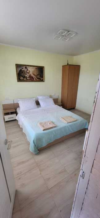 Все номера сделаны блоками, блок состоит из двух номеров и санузел. В каждом номере кровати с красивым бельем, тумбочка, телевизор, платяной шкаф, зеркало.