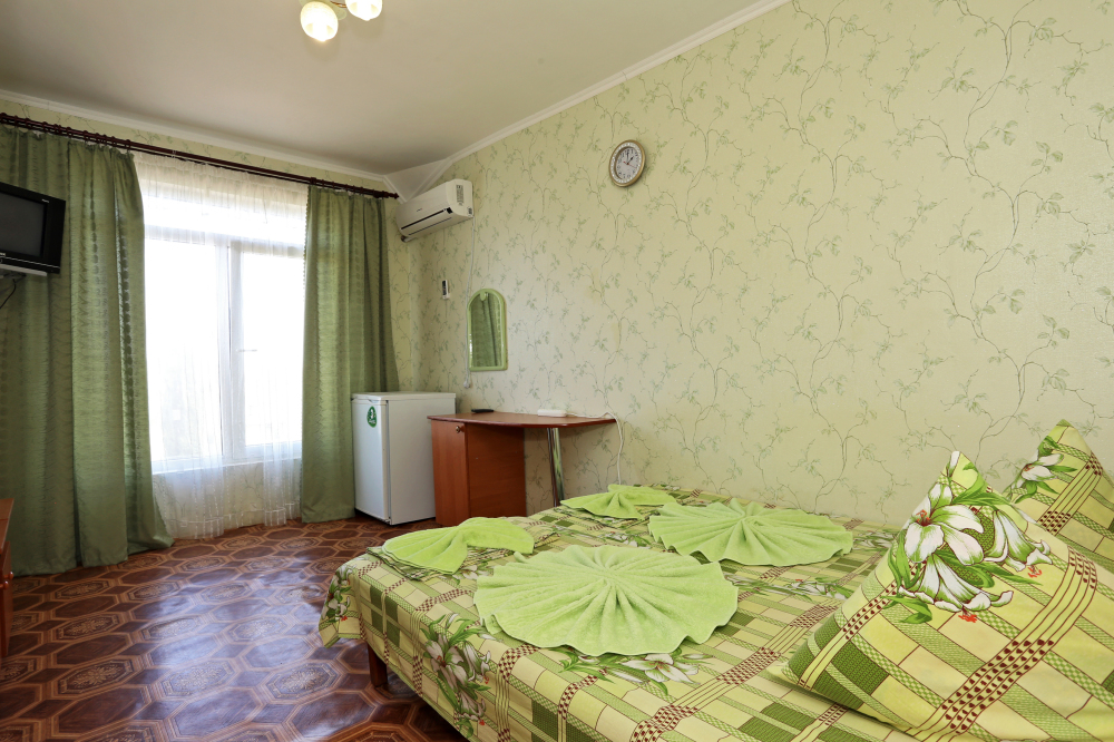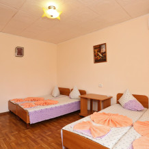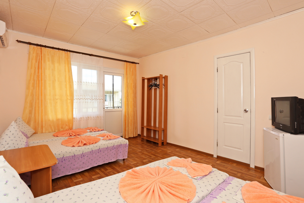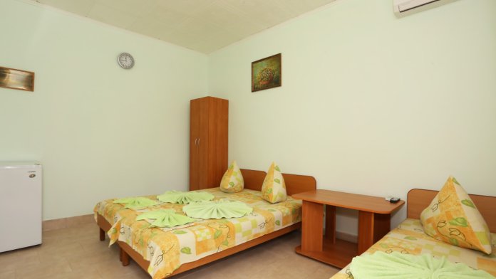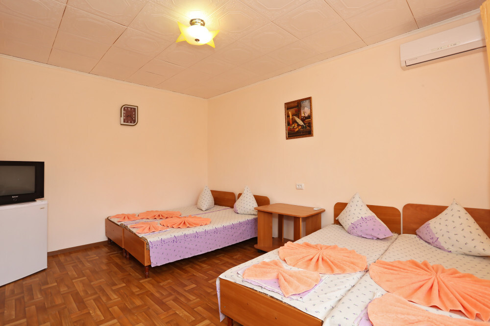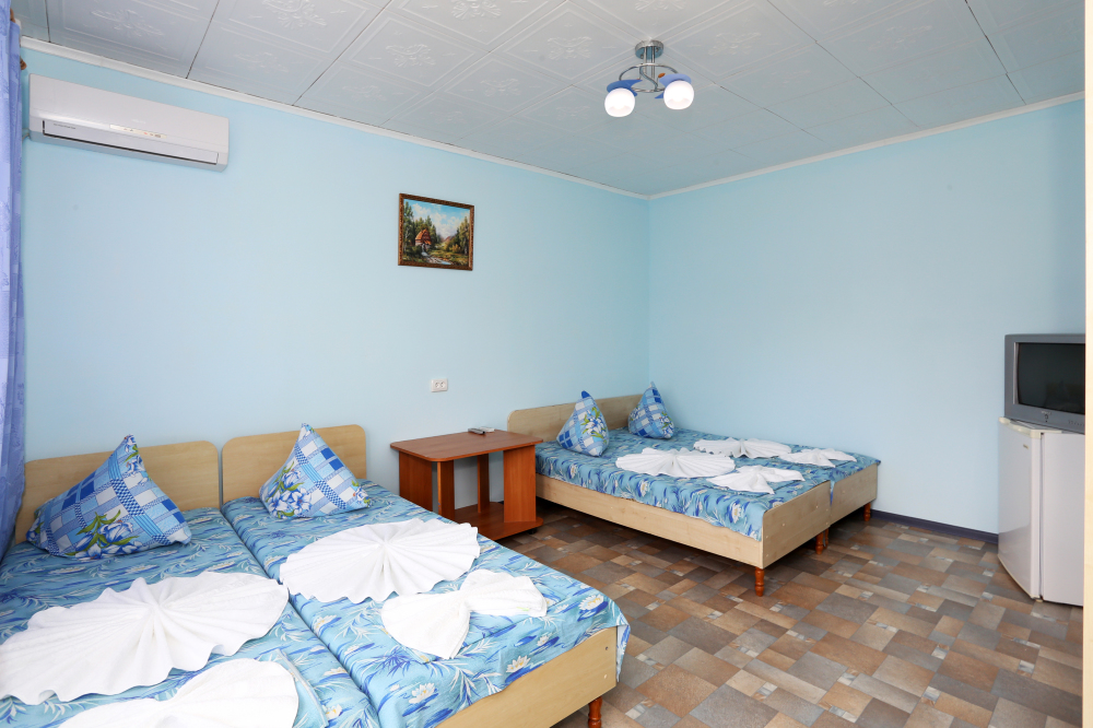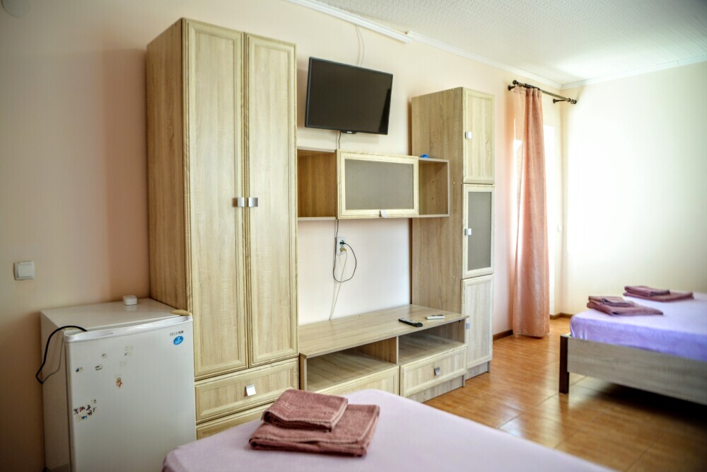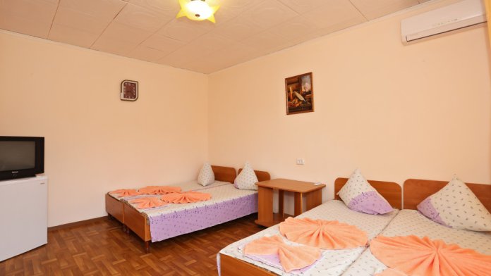 Уютные номера категории «Стандарт» со своим санузлом, холодильником, телевизором и кондиционером и номера категории «Эконом» с санузлом на два номера, телевизором и кондиционером обеспечат Вам приятный отдых.