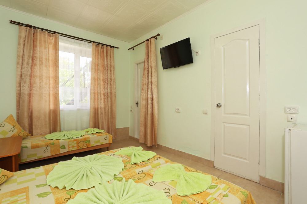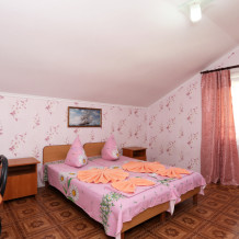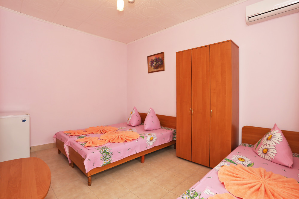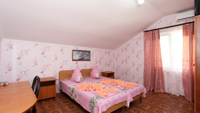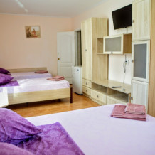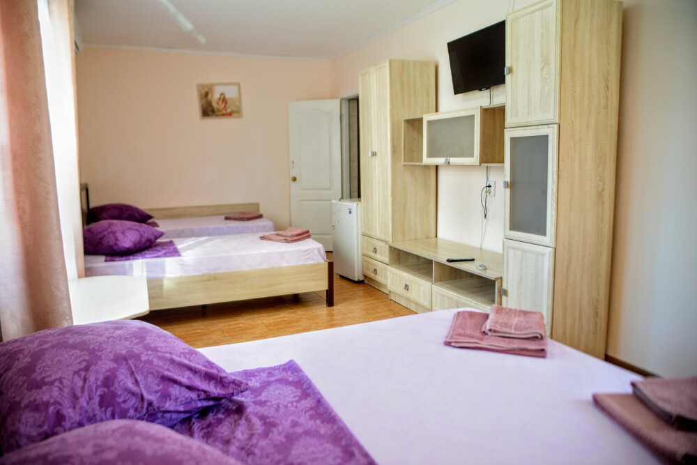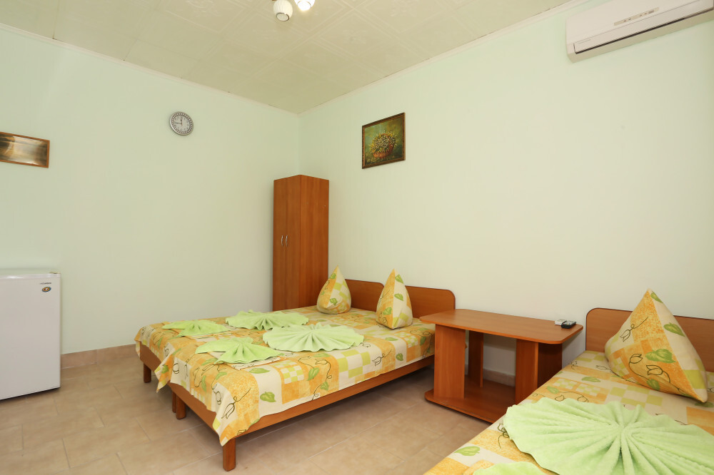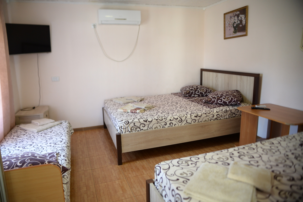 Уютные номера категории «Стандарт» со своим санузлом, холодильником, телевизором и кондиционером и номера категории «Эконом» с санузлом на два номера, телевизором и кондиционером обеспечат Вам приятный отдых.
