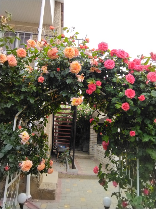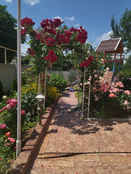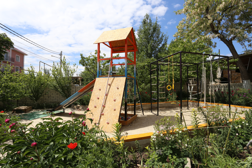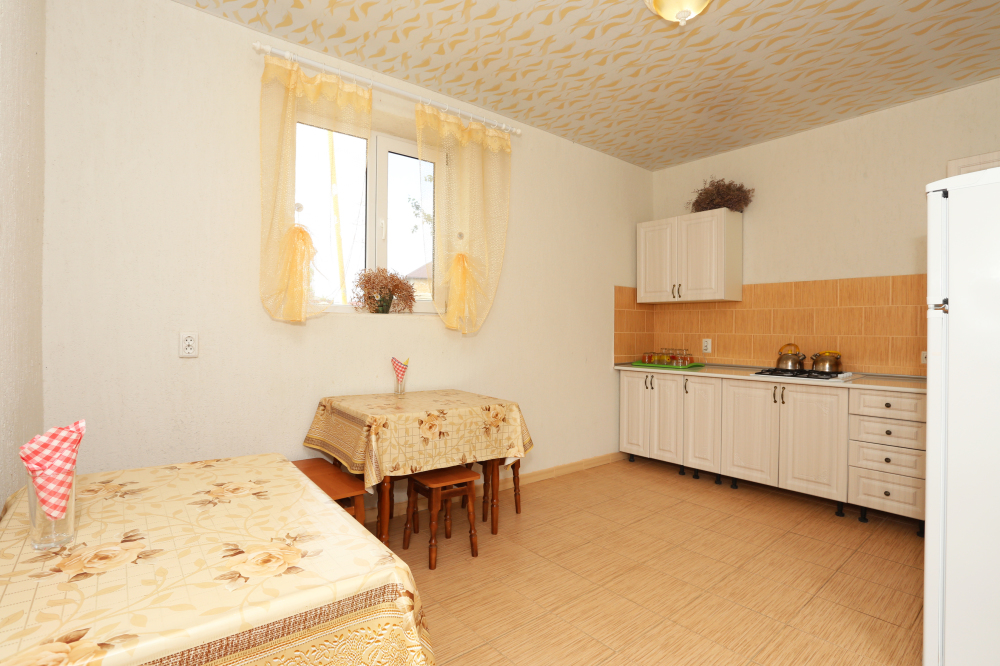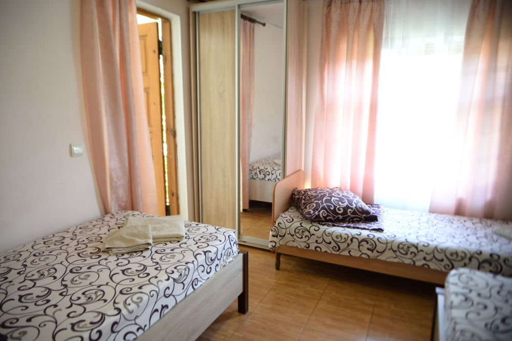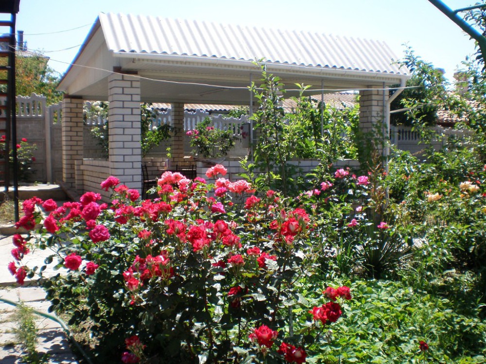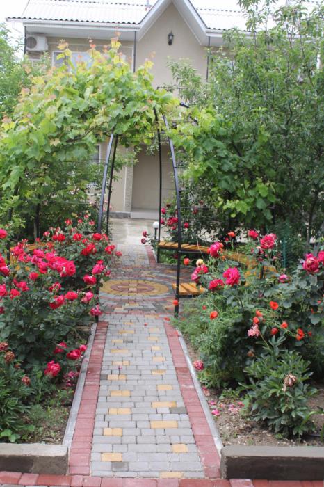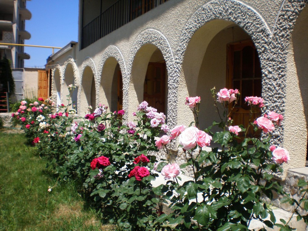 Большой, утопающий в зелени и цветах двор, закрытая территория, бесплатная стоянка и WI-FI ,беседки и мангал, большие и оборудованные кухни, трансфер по умеренной цене и предварительное бронирование.