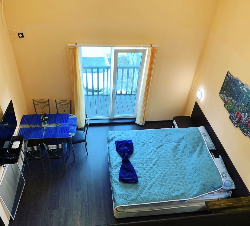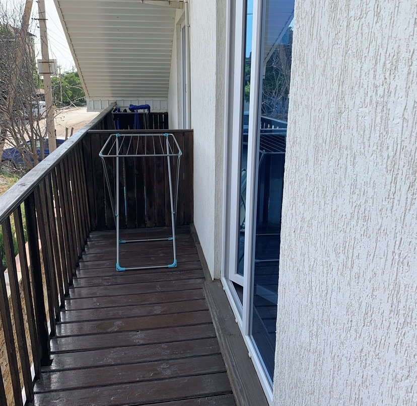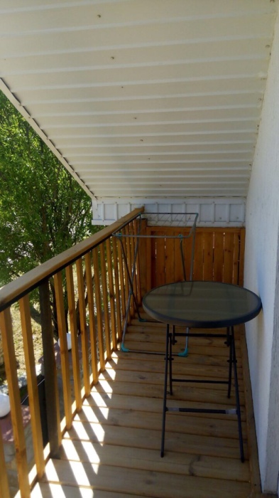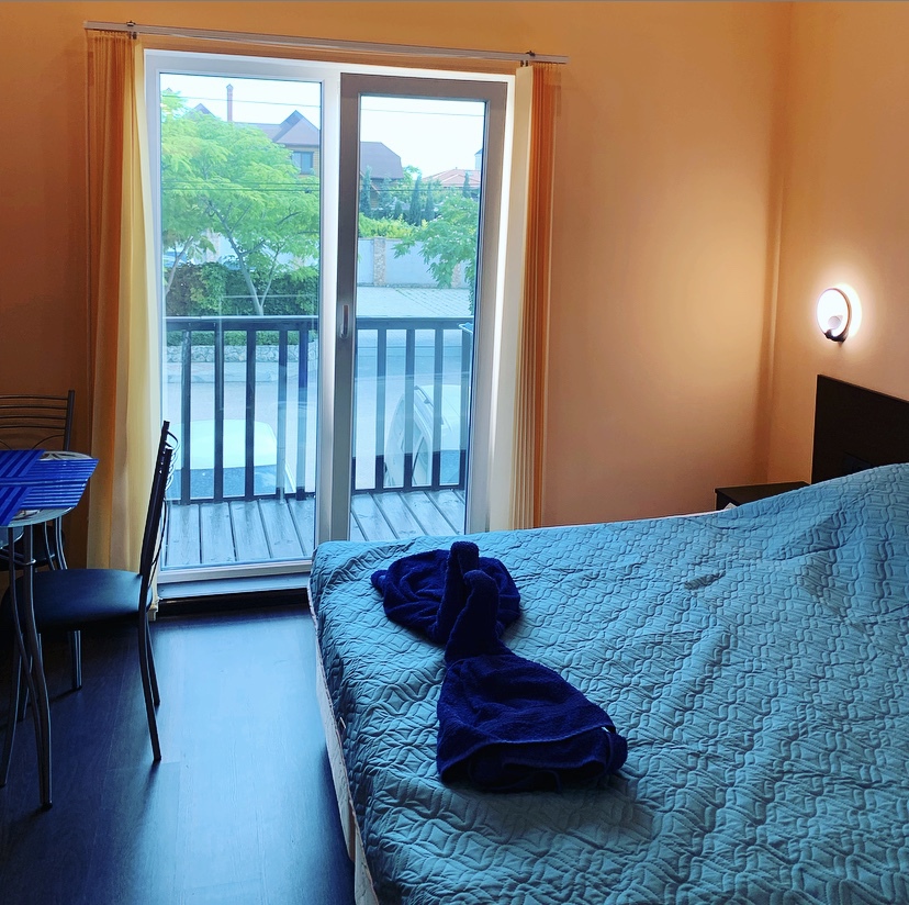 В каждом номере балкон-терраса со столиком и стульями.