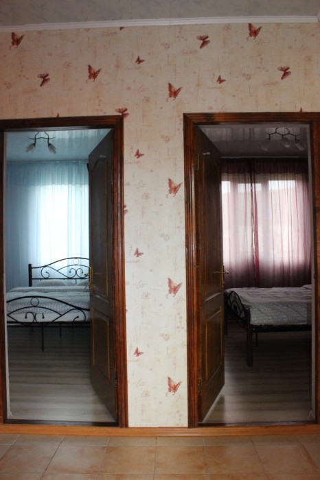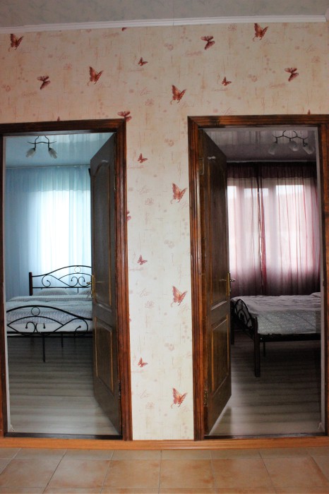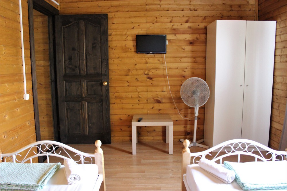 В каждой комнате: кондиционер, ТВ, wi-fi. 2-спальная кровать, шкаф, тумбочки.