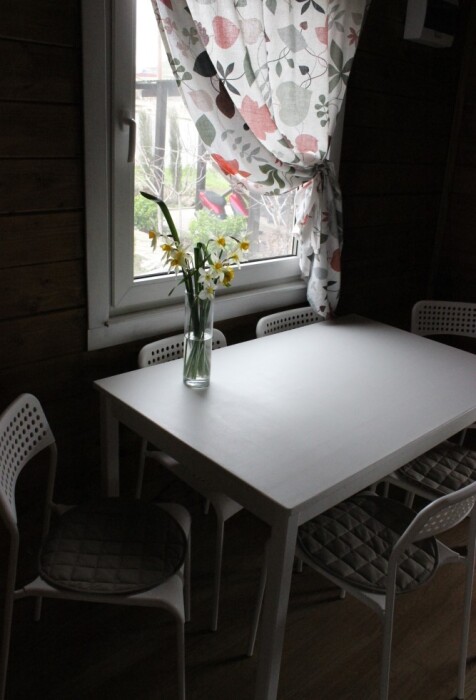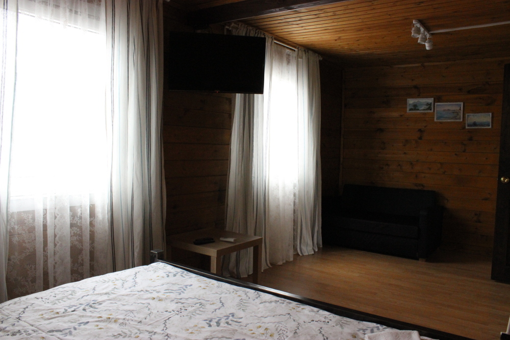 Для размещения гостям предлагается: двое апартаментов до 4 гостей и двухэтажный деревянный коттедж «Пилигрим» до 6 гостей.