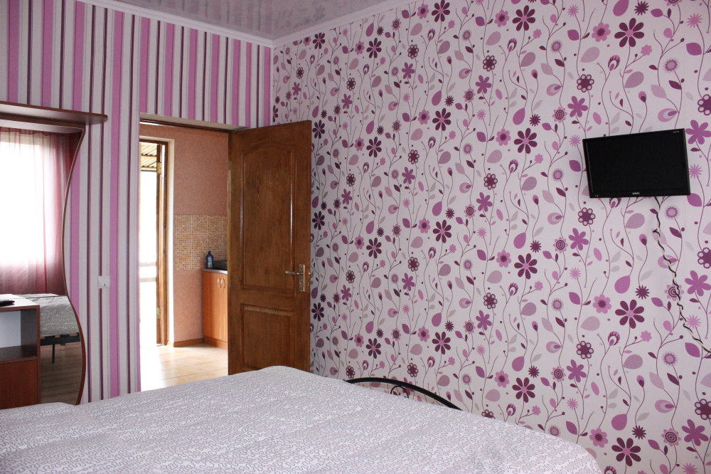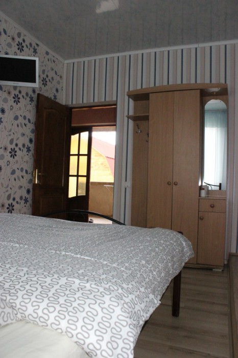 В номере: кухня, санузел, кондиционеры, ТВ, wi-fi. 2-спальные кровати, шкаф, тумбочка. Рядом с номером, на балконе - мягкий уголок, личное место для отдыха.