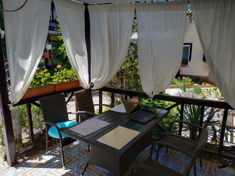 Двухместный номер с 1 кроватью, отдельным входом и кондиционером. Из окна открывается красивый вид. Обеденная зона на улице.