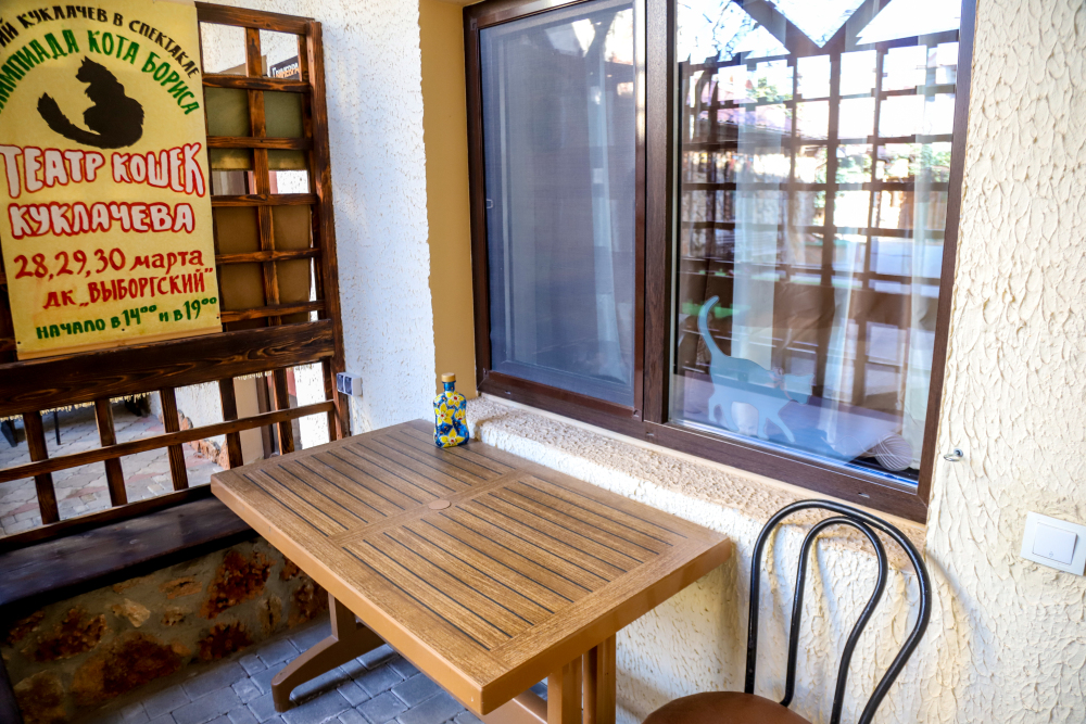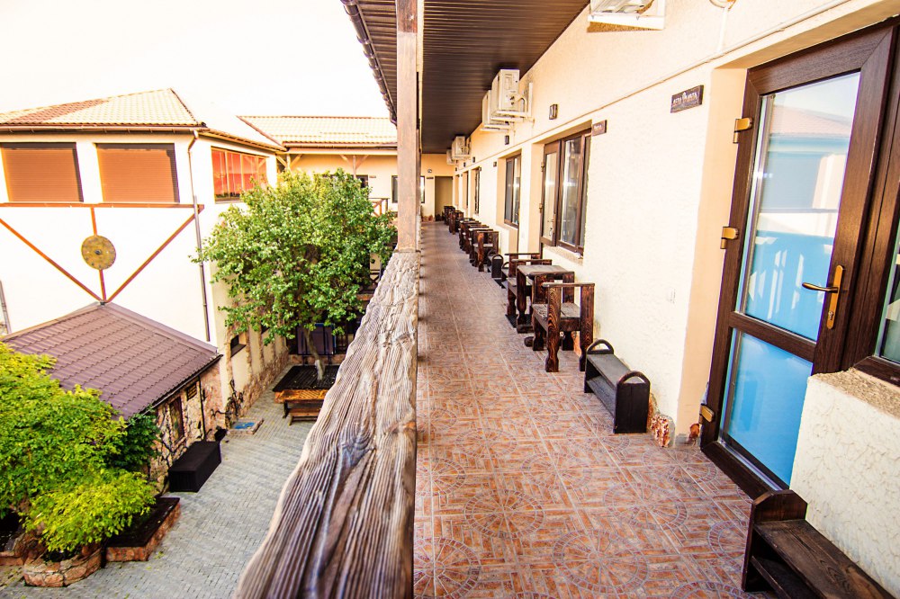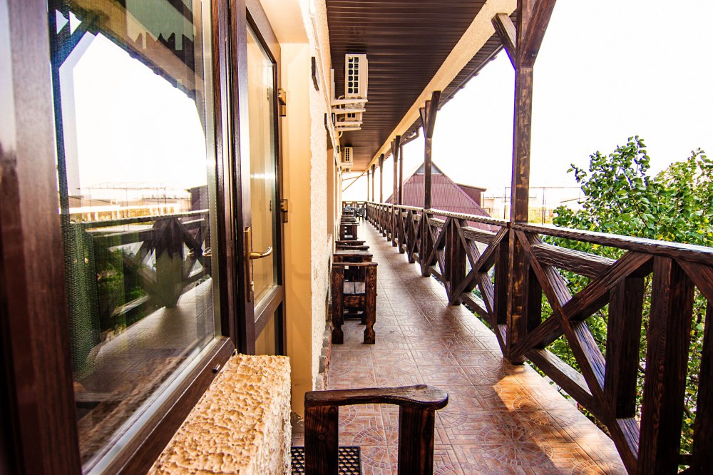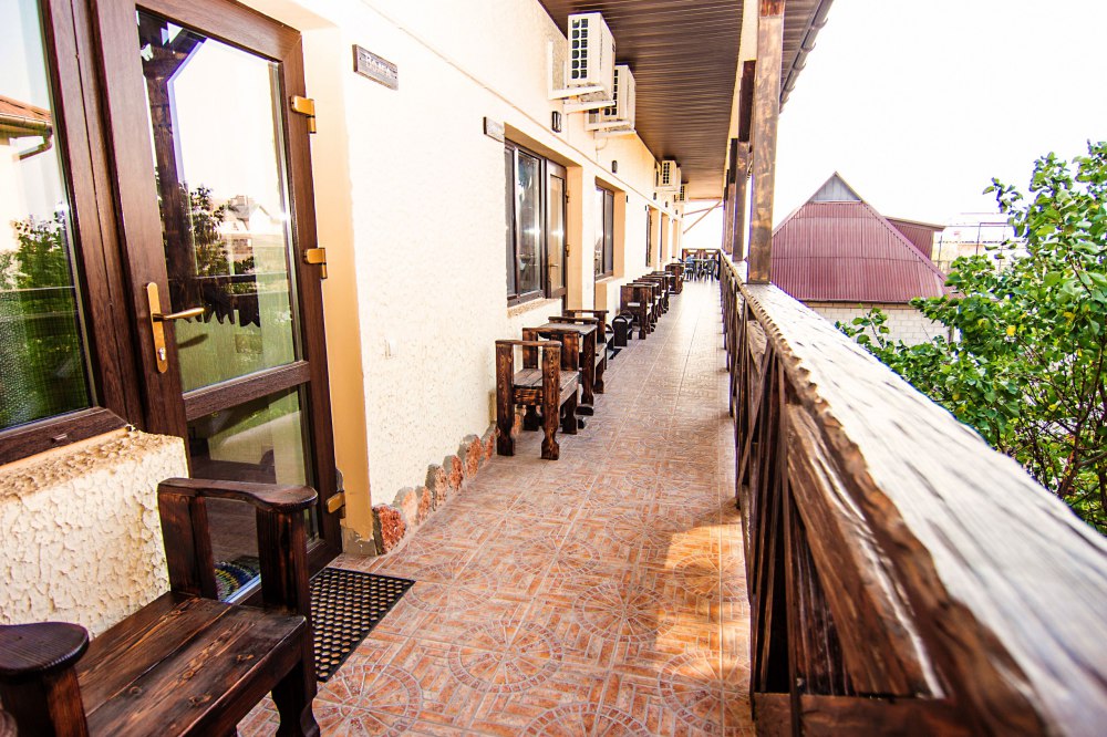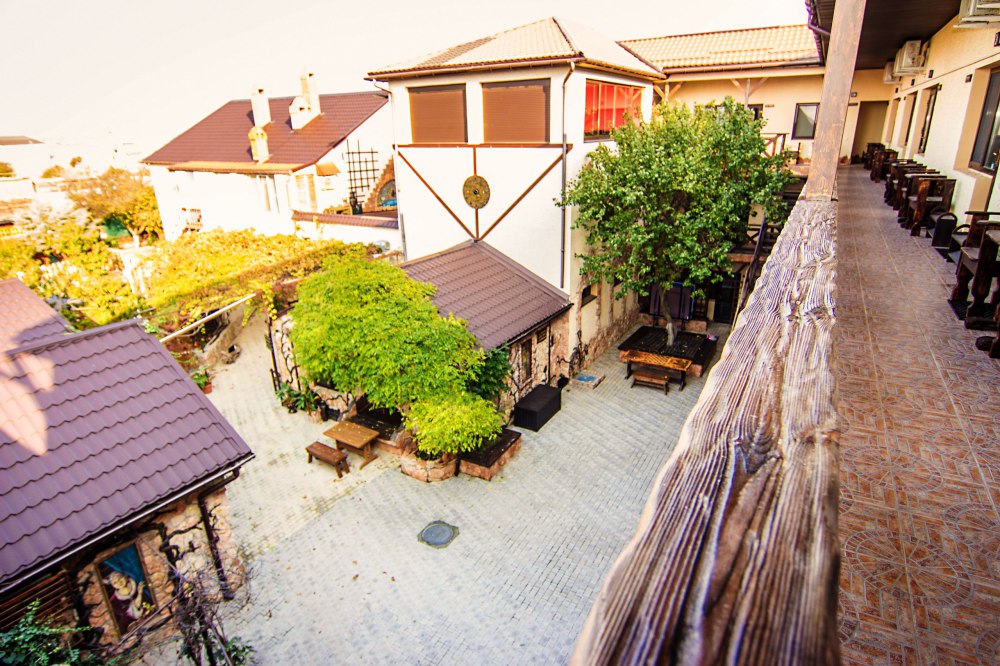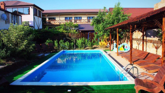 Удачное месторасположение и песчаный пляж. Усадьба находится практически на самом морском побережье (до пляжа всего 10 минут ходьбы). Туристы, хоть раз побывавшие в поселке Черноморское в Крыму, утверждают, что воздух здесь кристально чистый и свежий, а море чаще всего теплое и спокойное.