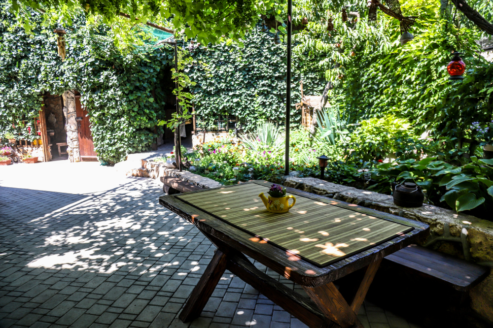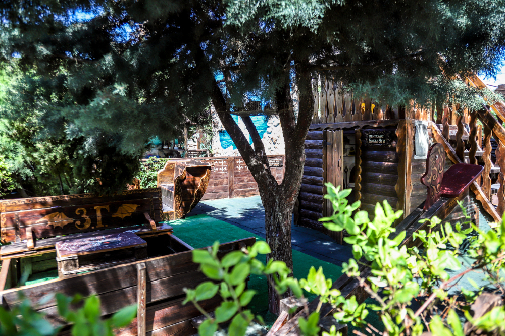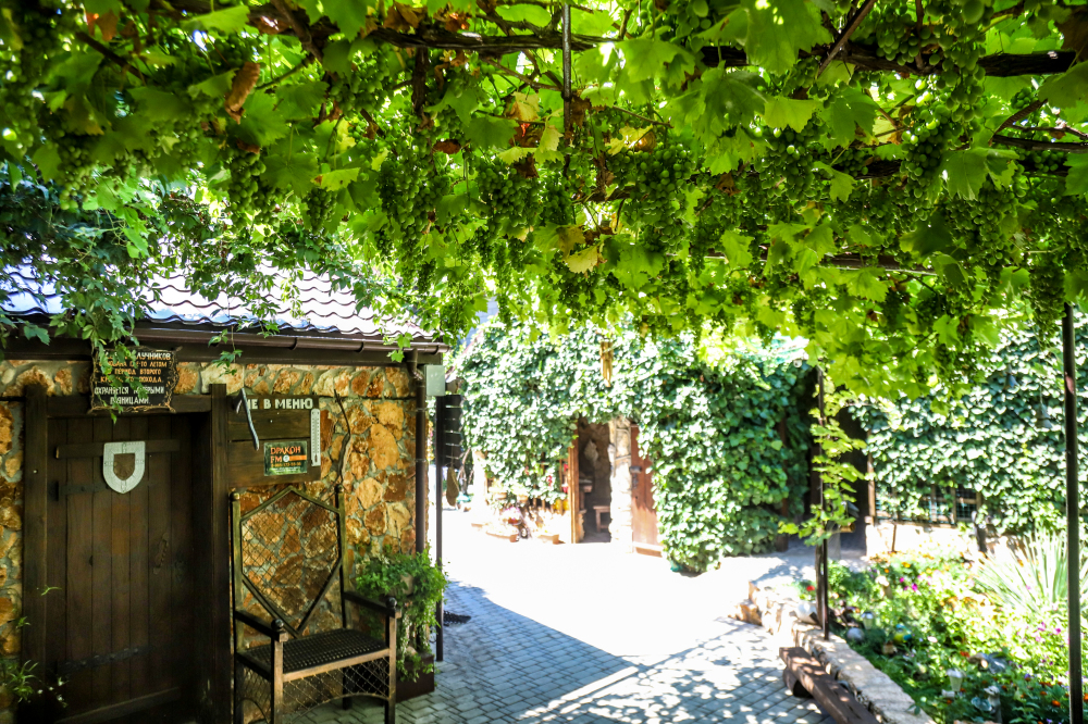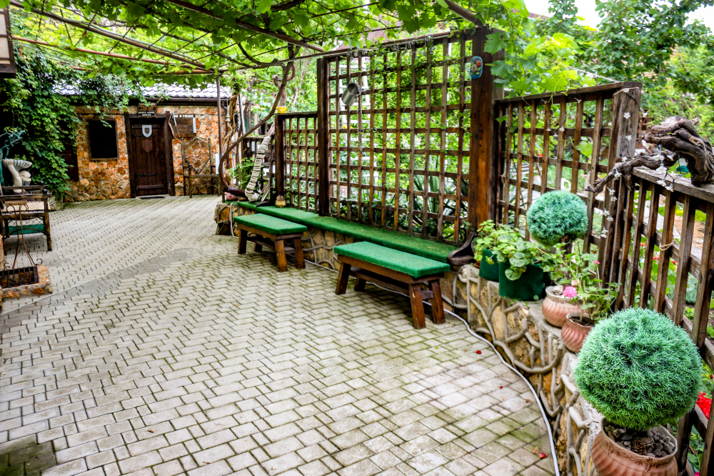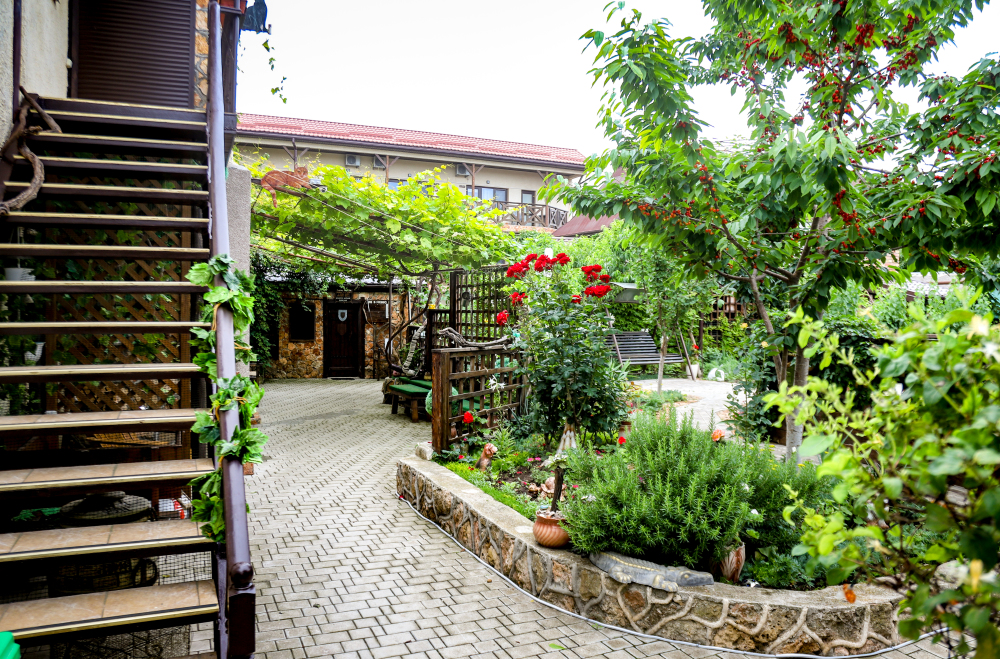 Просторная и хорошо обустроенная территория, оформленная в стиле средневековья. На зелёной и цветущей территории, которая рассчитана на отдых даже не покидая усадьбы, есть: