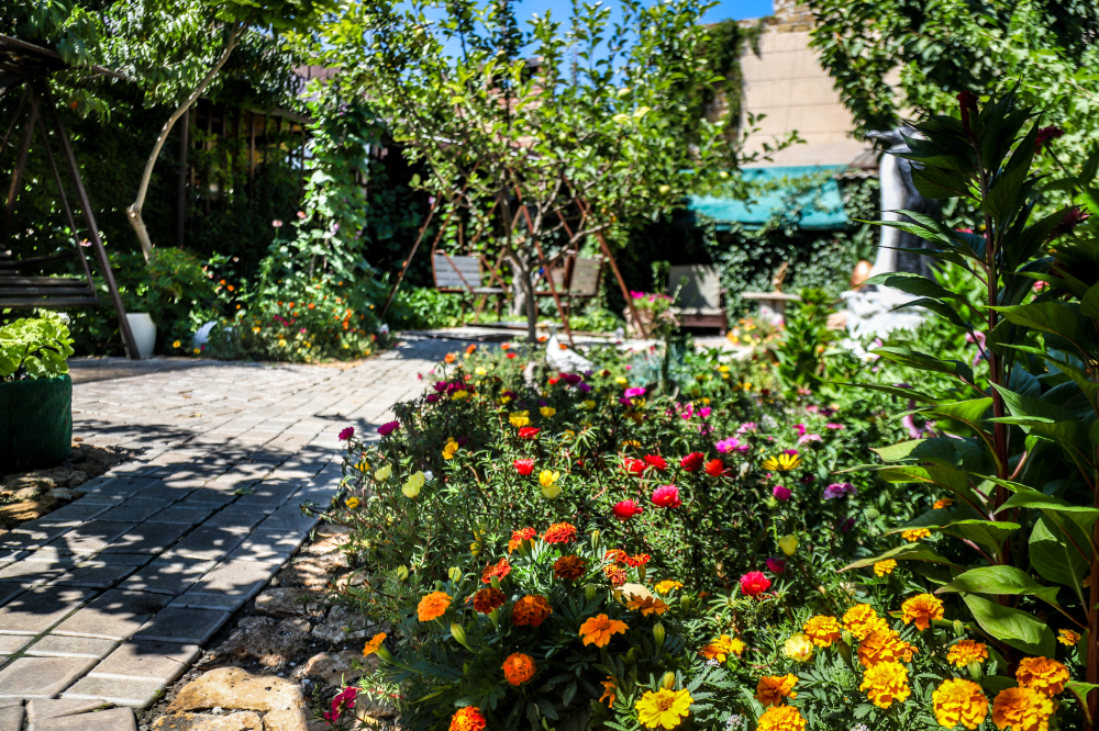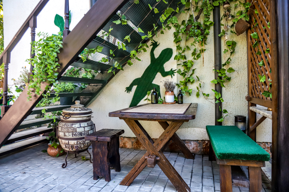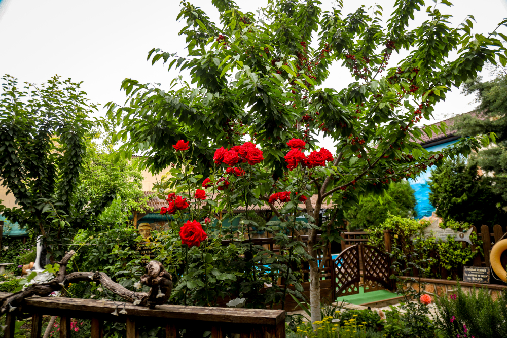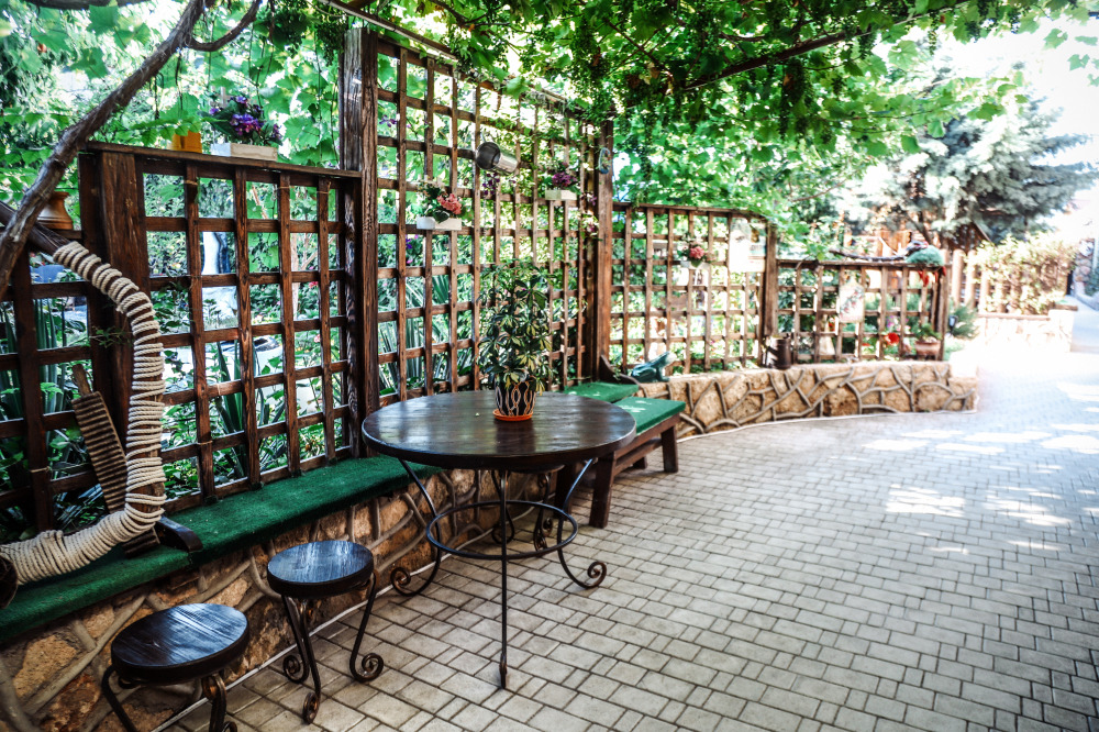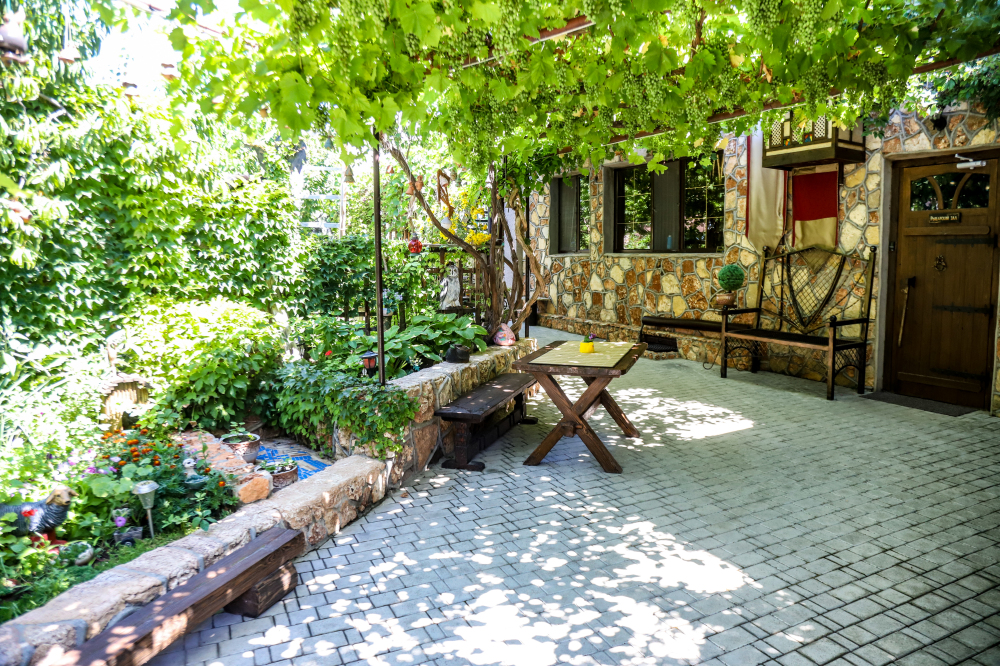 Просторная и хорошо обустроенная территория, оформленная в стиле средневековья. На зелёной и цветущей территории, которая рассчитана на отдых даже не покидая усадьбы, есть:
