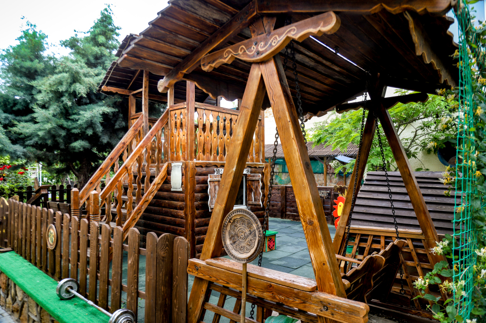 - Детская площадка с пентхаусом Бабы Яги.