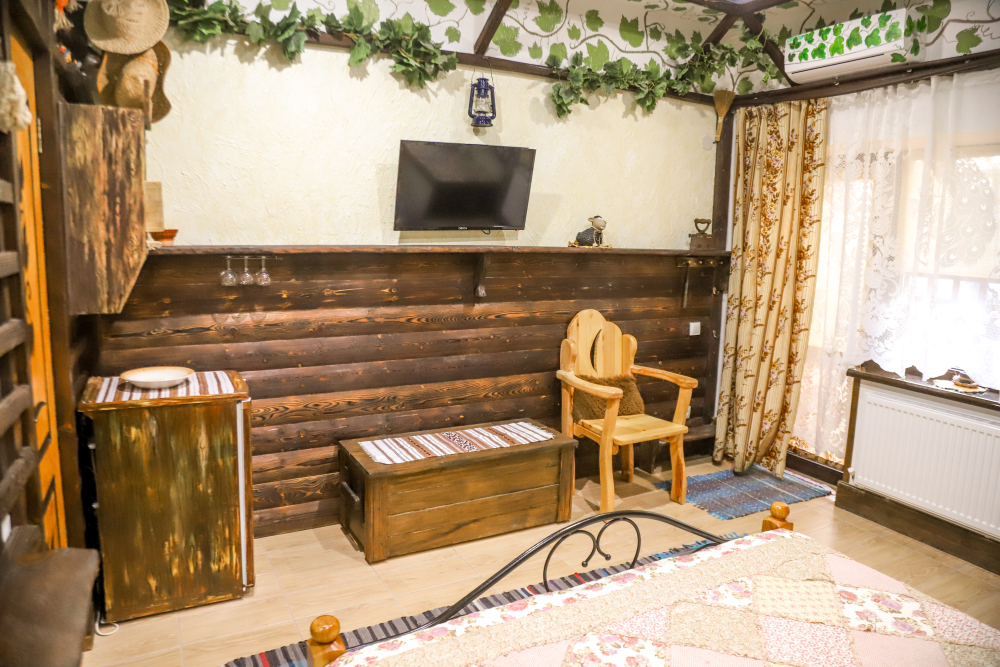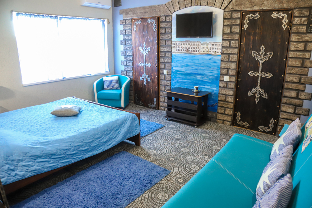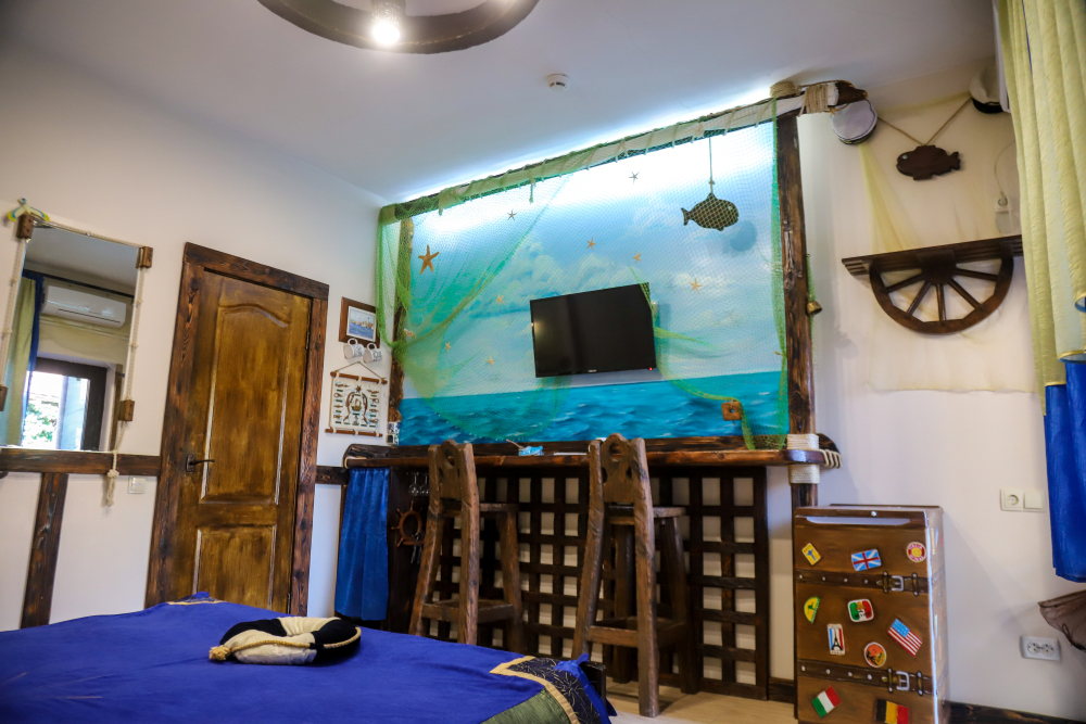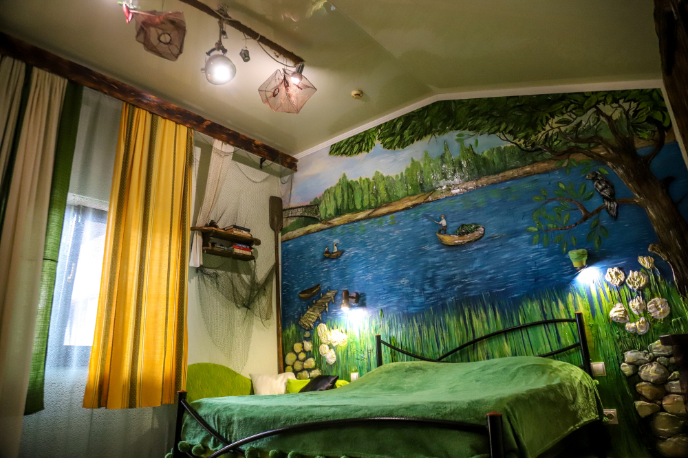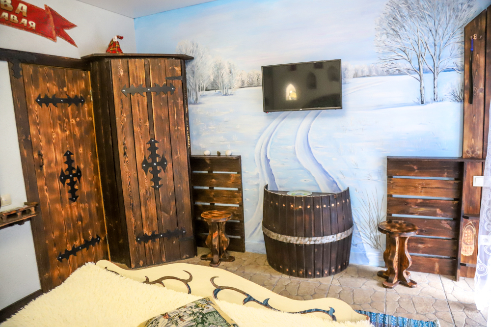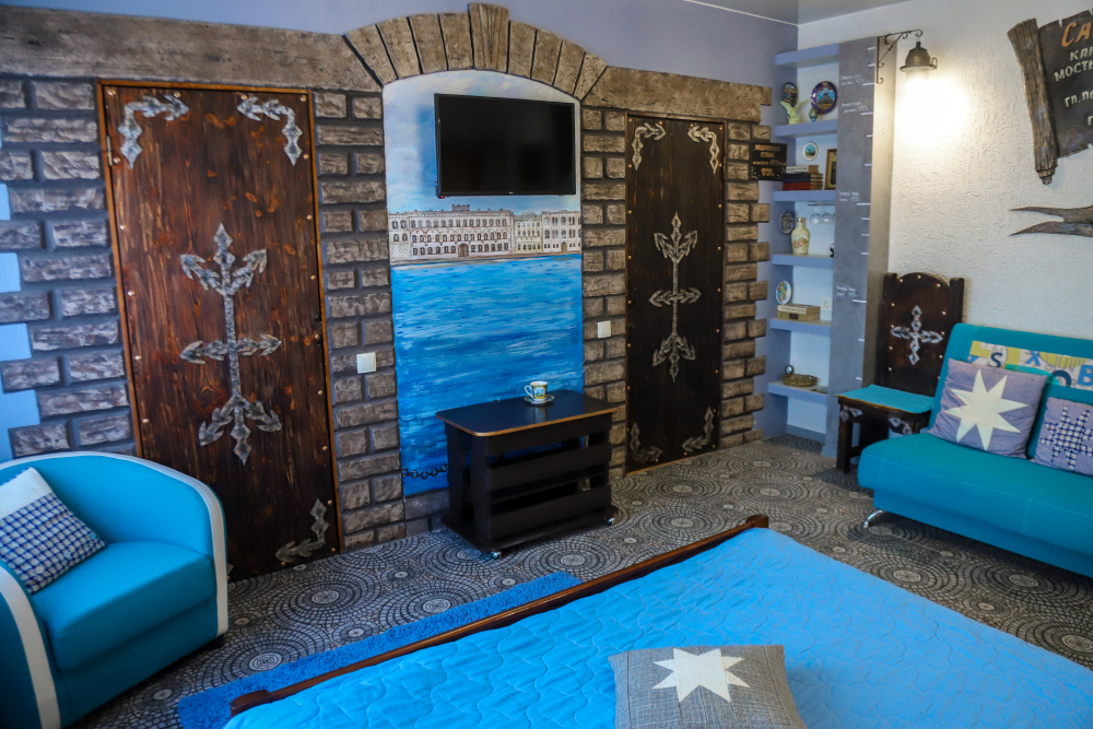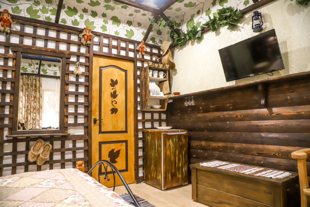 Комфортабельные номера со всеми удобствами, оформленные в разных тематических стилях. Они в одинаковой степени подойдут молодоженам, семьям с детьми или просто компаниям, приехавшим в поисках новых впечатлений. Оснащение номера: