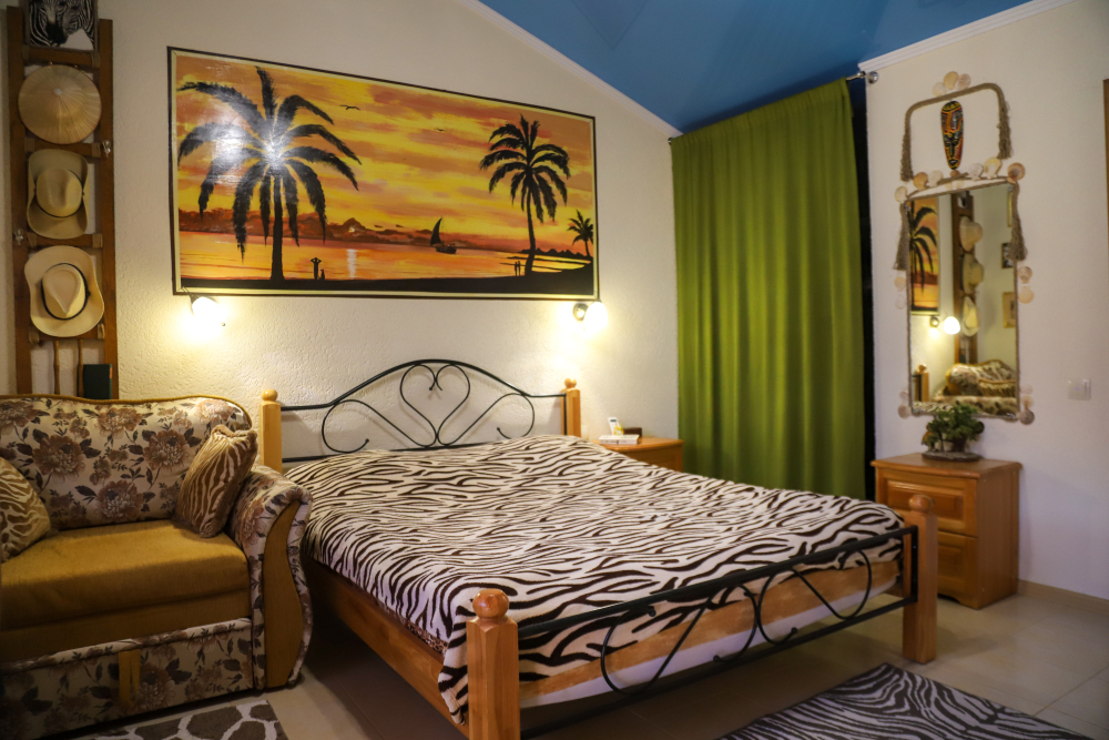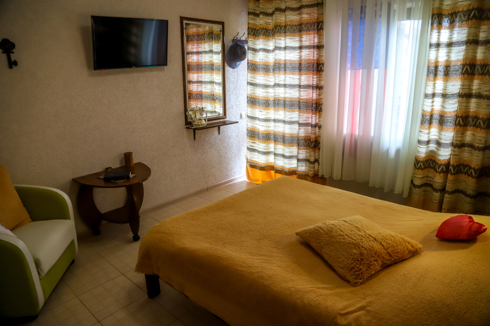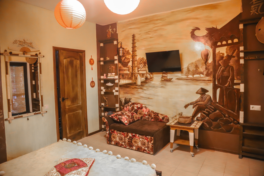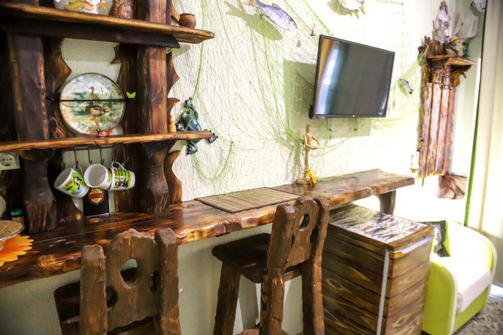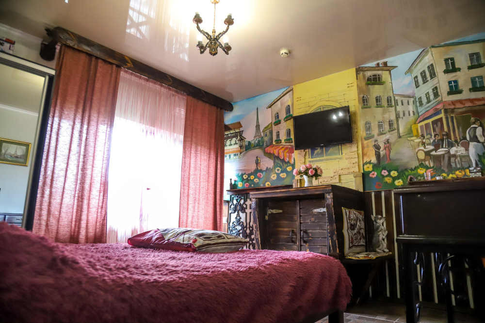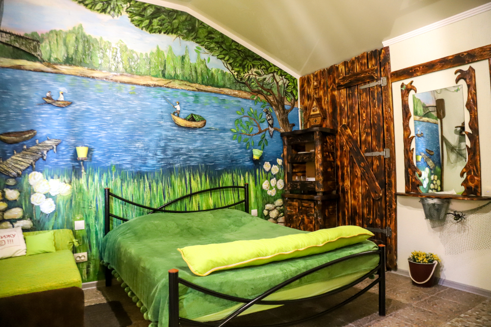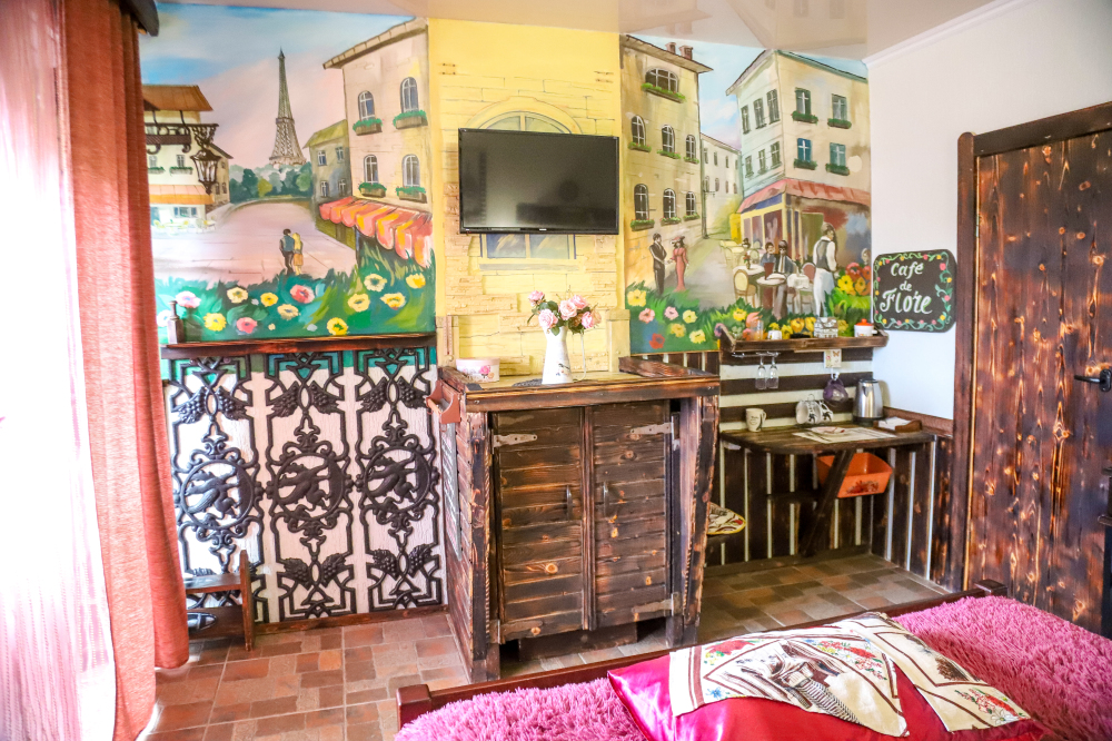 Комфортабельные номера со всеми удобствами, оформленные в разных тематических стилях. Они в одинаковой степени подойдут молодоженам, семьям с детьми или просто компаниям, приехавшим в поисках новых впечатлений. Оснащение номера:
