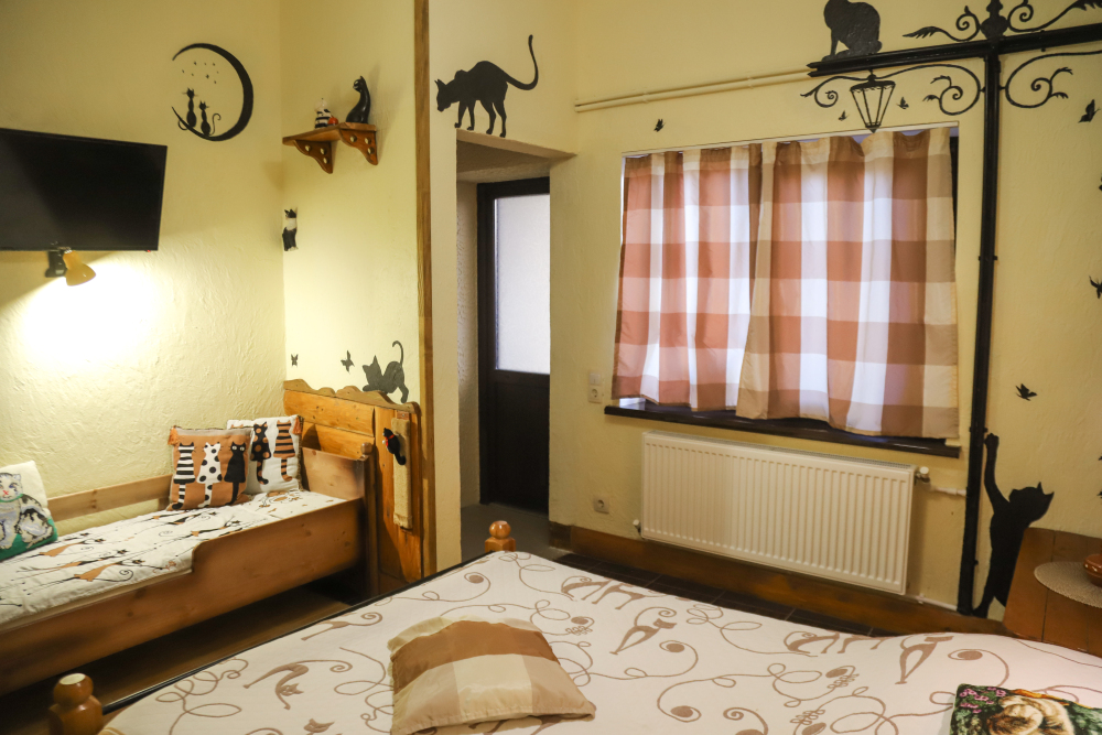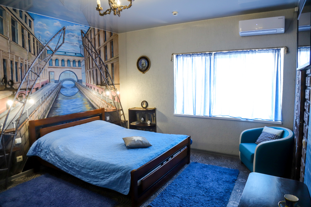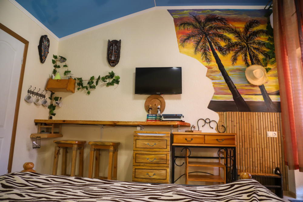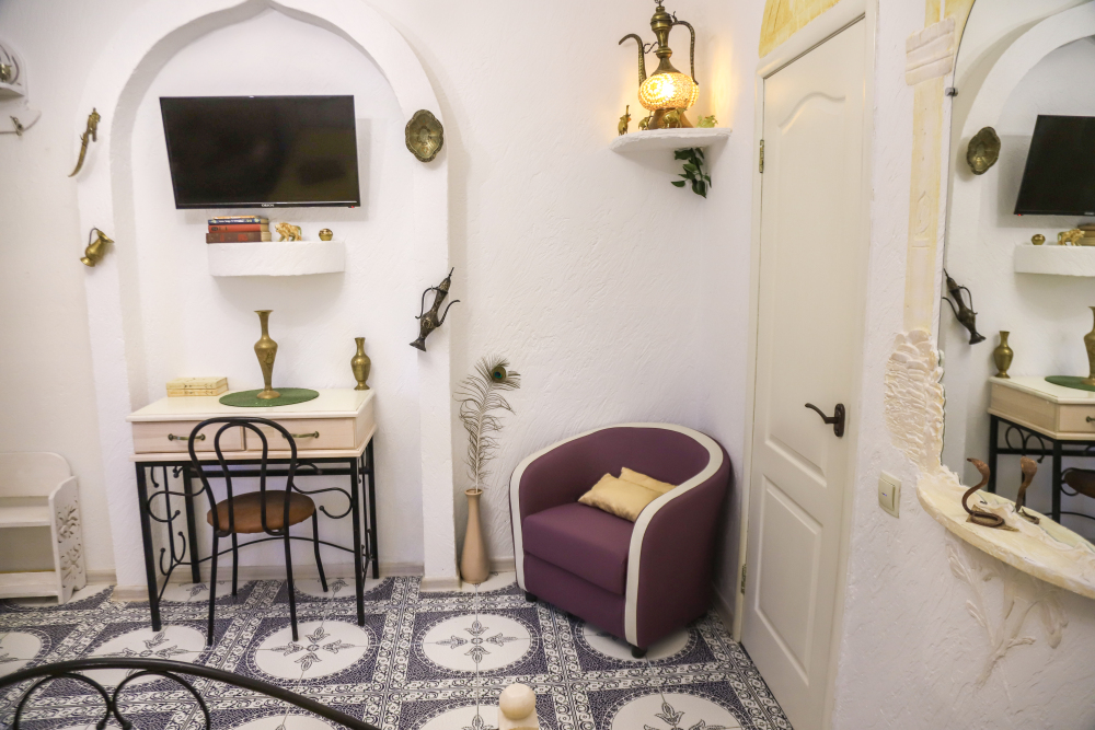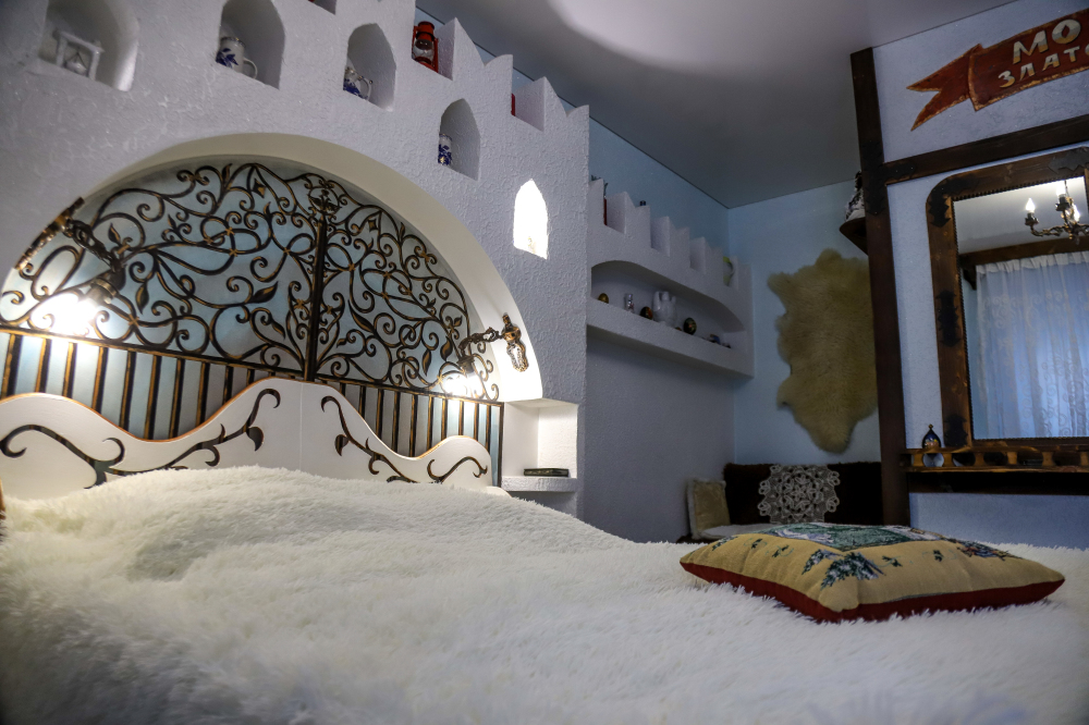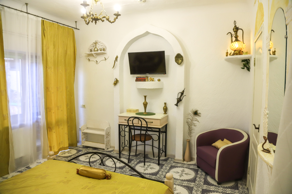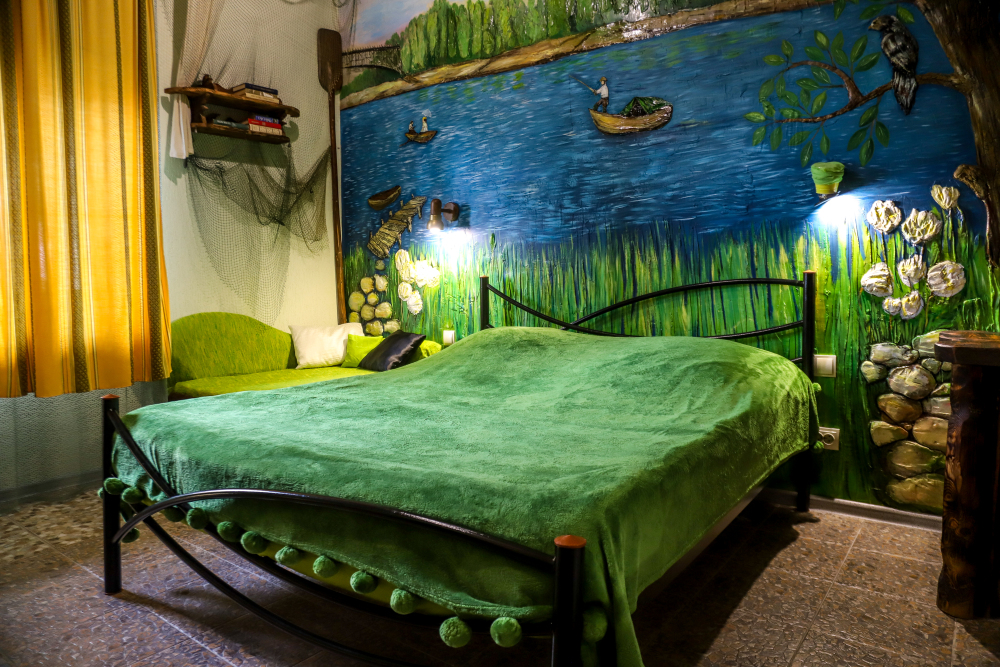 Комфортабельные номера со всеми удобствами, оформленные в разных тематических стилях. Они в одинаковой степени подойдут молодоженам, семьям с детьми или просто компаниям, приехавшим в поисках новых впечатлений. Оснащение номера: