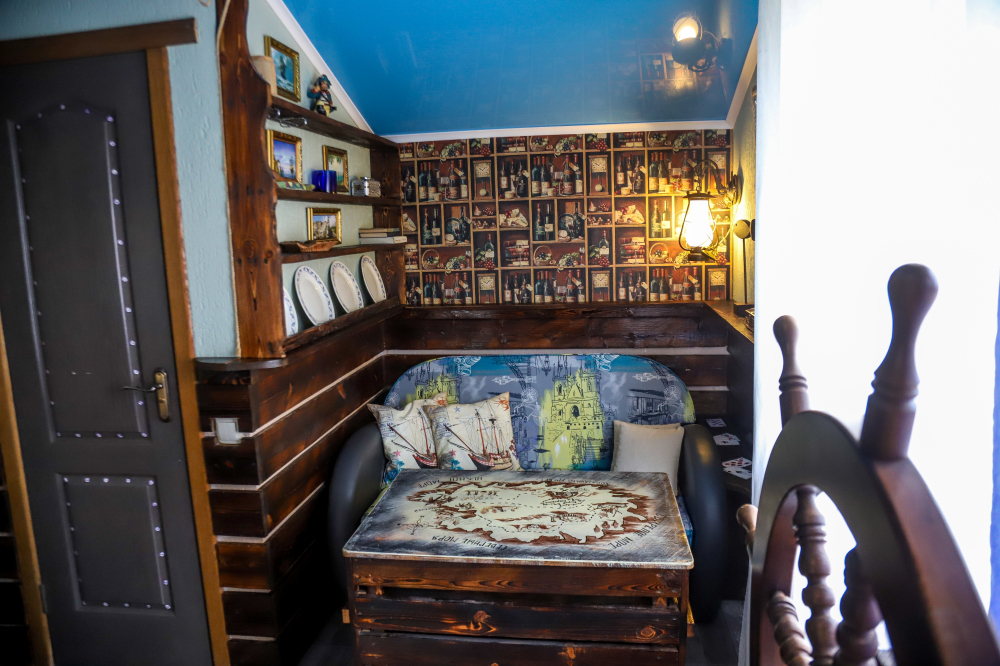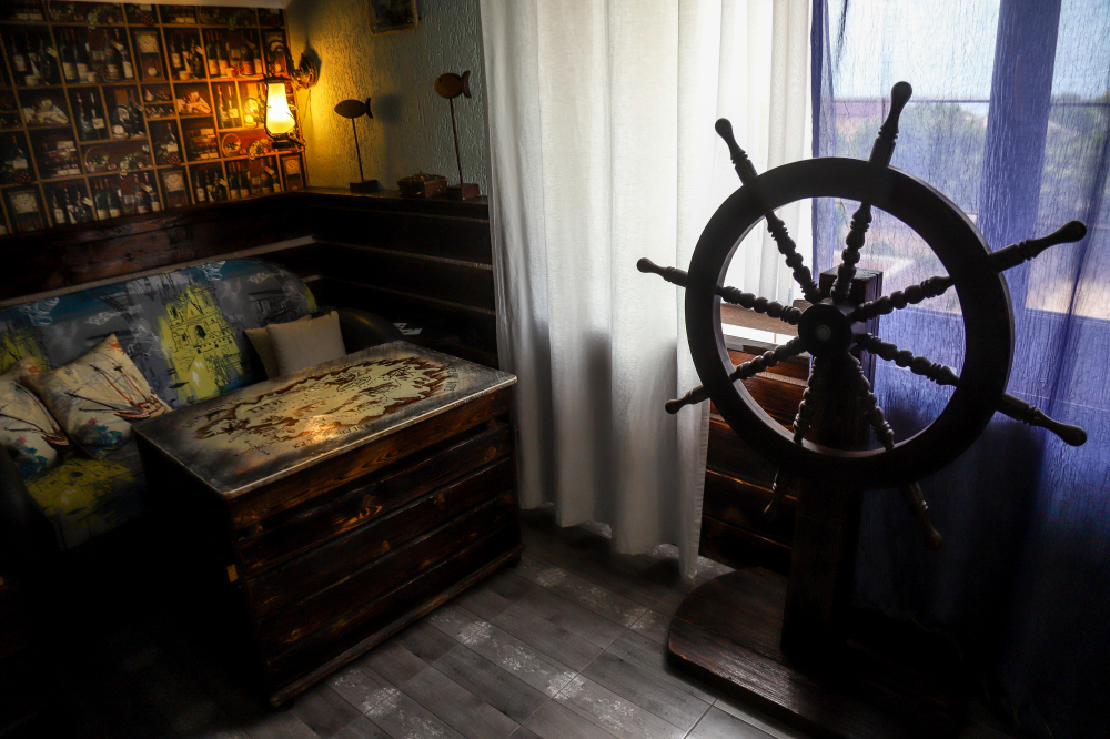 К сожалению, нам очутиться в прошлом невозможно, но покровитель усадьбы – великий дракон сэр Гарри приоткроет для Вас мир средневековья и отправит Вас в волшебное путешествие. Каждая комната усадьбы – это целый мир: «Вьетнам», «Индия», «Рыбалка на Волге», «Каюта капитана Немо», «Корабль Флинта. Где окажетесь Вы!? Пировать наши гости будут в «Рыцарском зале», рассуждать и философствовать в «Синей бутылке» и приобщаться к прекрасному в читальне «Трезвые мысли».