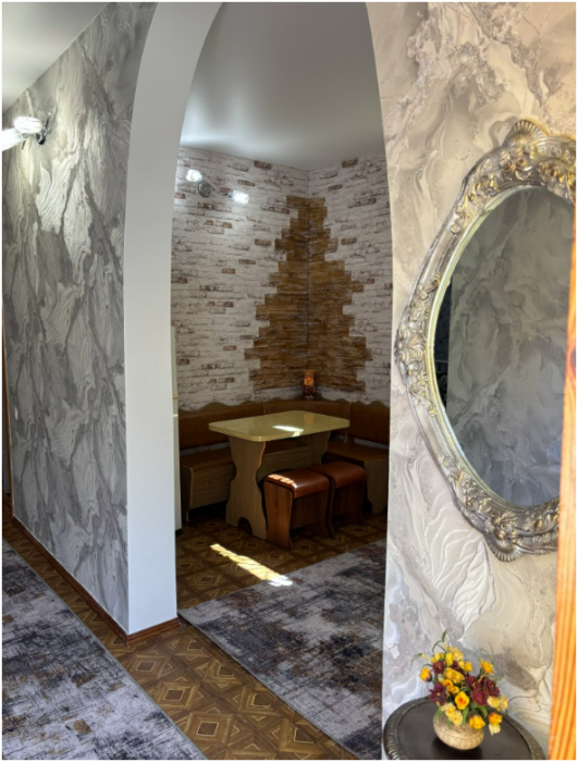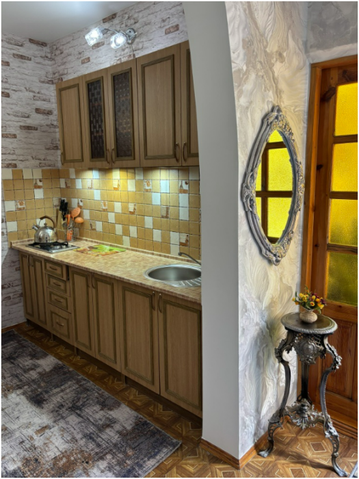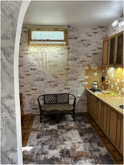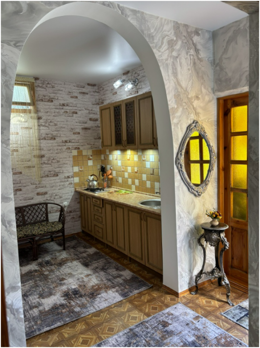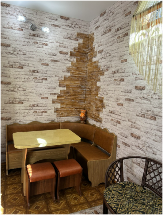 В каждом домике современный ремонт, свой санузел, кухня, плита, ТВ, кондиционер.