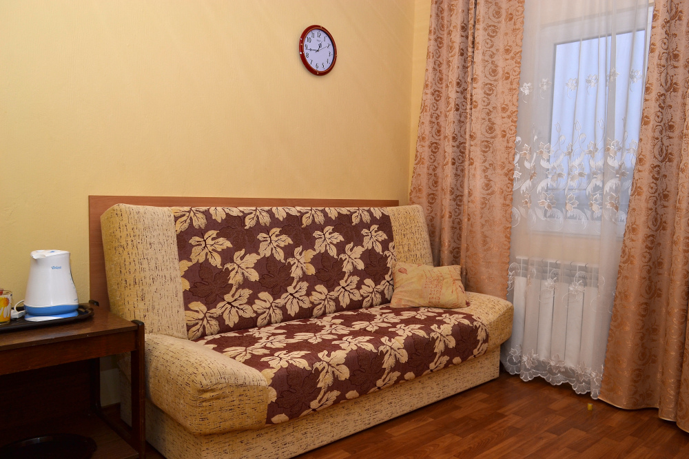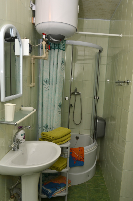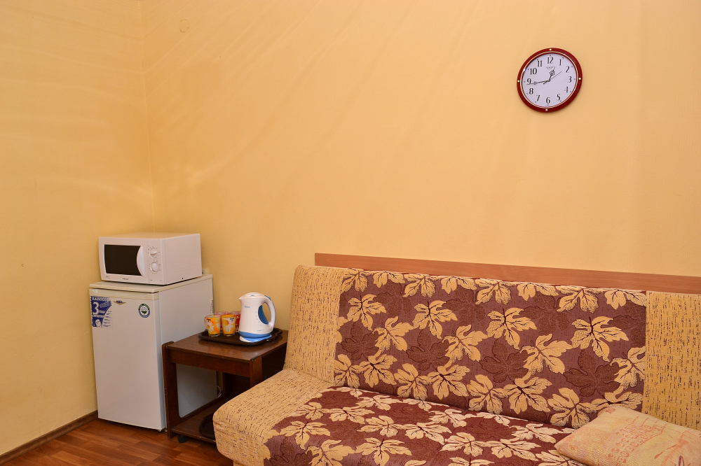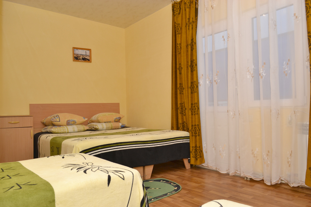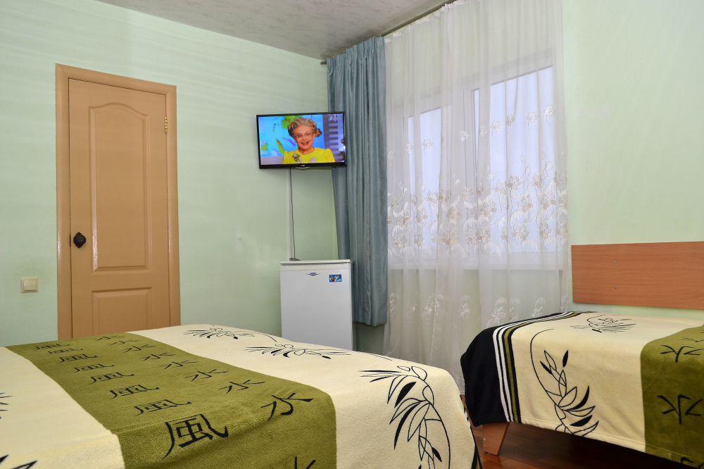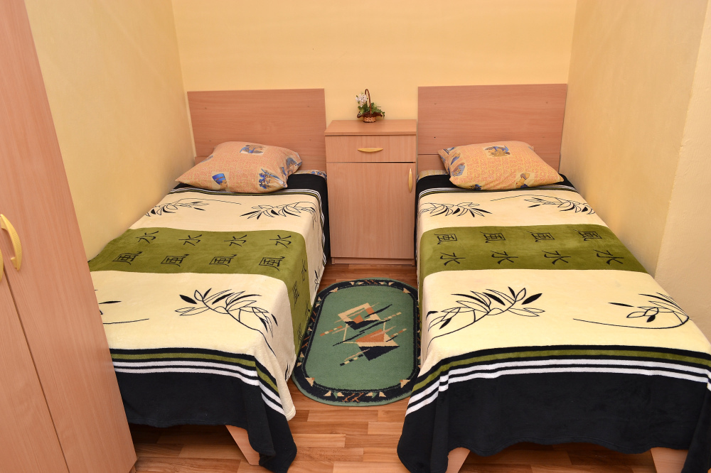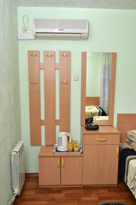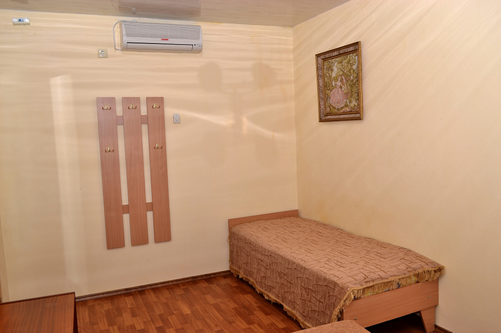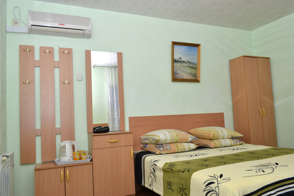 Для отдыха гостям предлагаются 3-х и 4-местные комнаты, в которых есть вся необходимая мебель, посуда для чая, кофе, холодильник, телевизор, сейф, фен. В комнатах также есть кондиционер, что немаловажно для отдыха в летний жаркий период. Интерьер выполнен в спокойных, светлых тонах. В каждой комнате имеется отдельный санузел с душем и набором полотенец (в том числе и для пляжа).