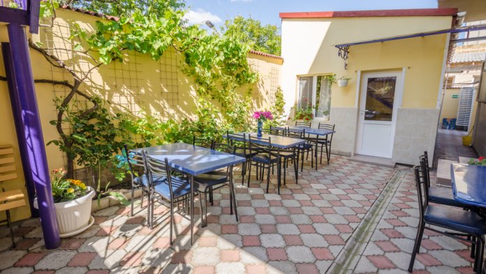 Гостевой дом в Евпатории - находится на небольшой улочке в 7 метрах от моря. На расстоянии 150 м находятся оборудованные песчаные пляжи.