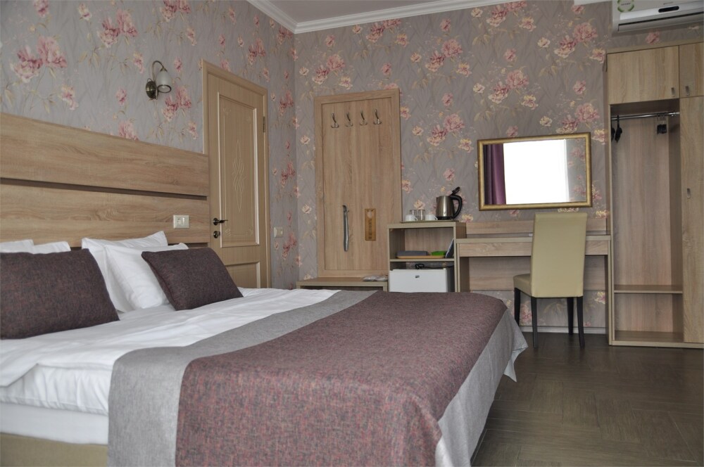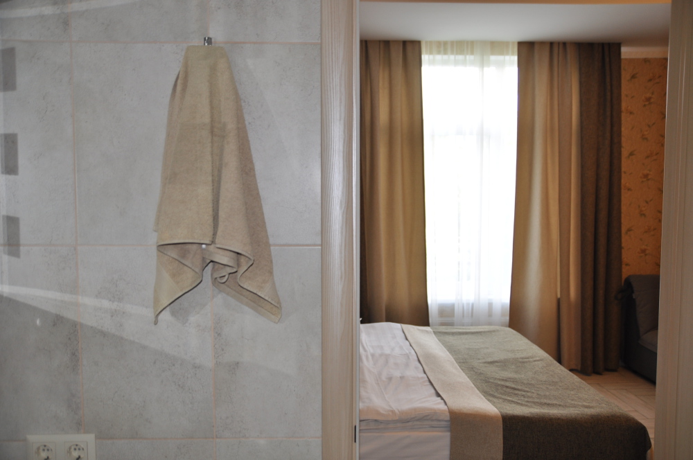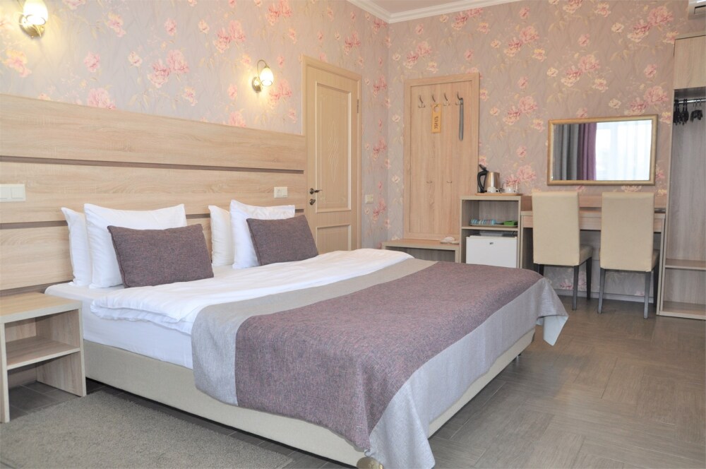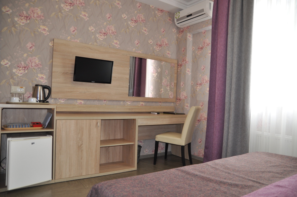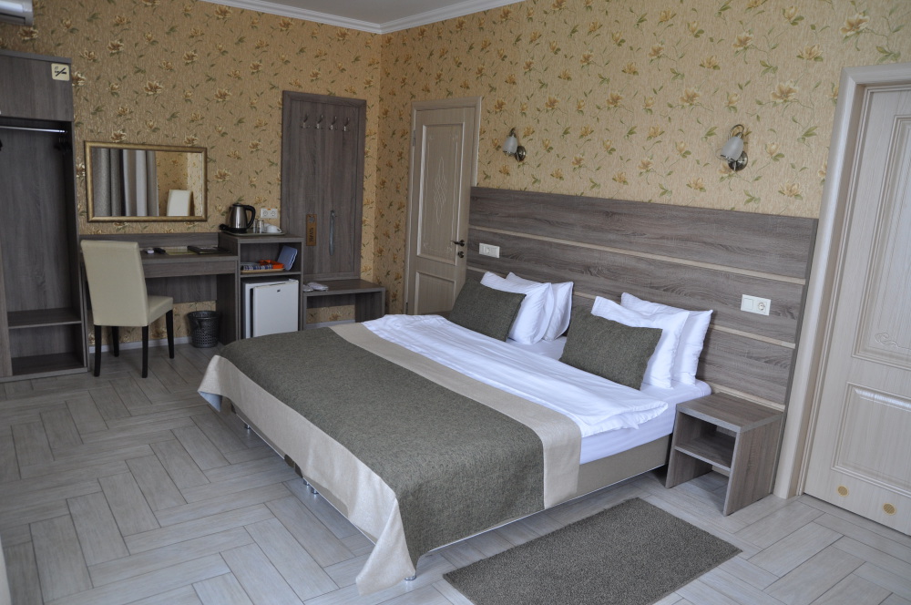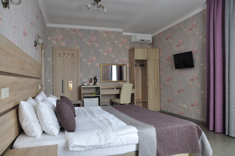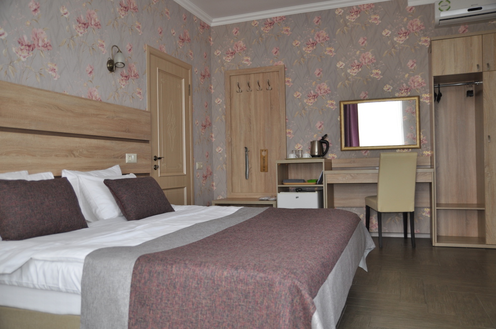 Отель абсолютно соответствует своему классу. Очень хорошо обустроена территория, в номерах чисто, к уборке претензий не было. Замечательный персонал, отзывчив на любую просьбу. Прекрасная терраса на третьем этаже, наличие в отеле кухни, стиральной машины и пр. бытовых деталей приятно удивило. Трансфер до пляжа тоже был кстати, тем более его осуществлял хозяин отеля, очень приятный и обаятельный. А запеканка, которую подавали на завтрак, превыше всех похвал, сама постоянно ее готовлю, но такой вкусной не ела никогда.Браво Ларисе Михайловне! Немного не устроило то, что подниматься пешком к отелю в горку было тяжеловато, приходилось брать такси.