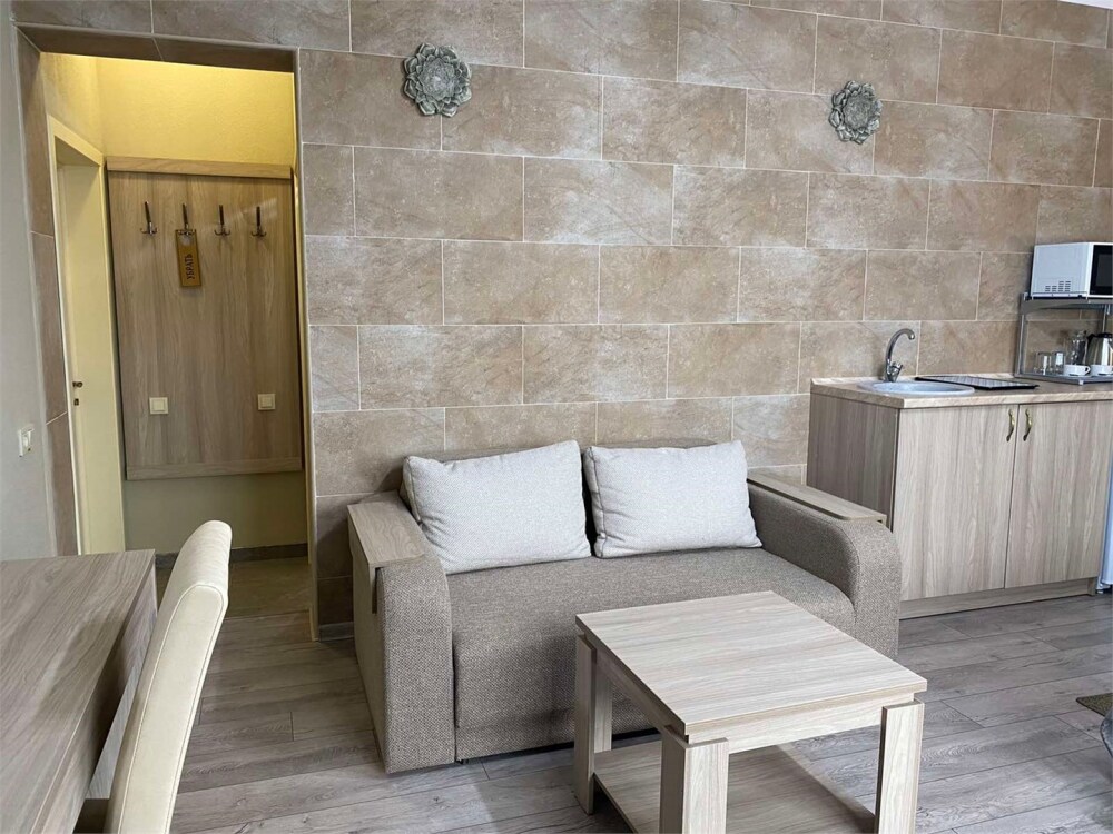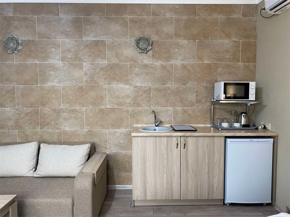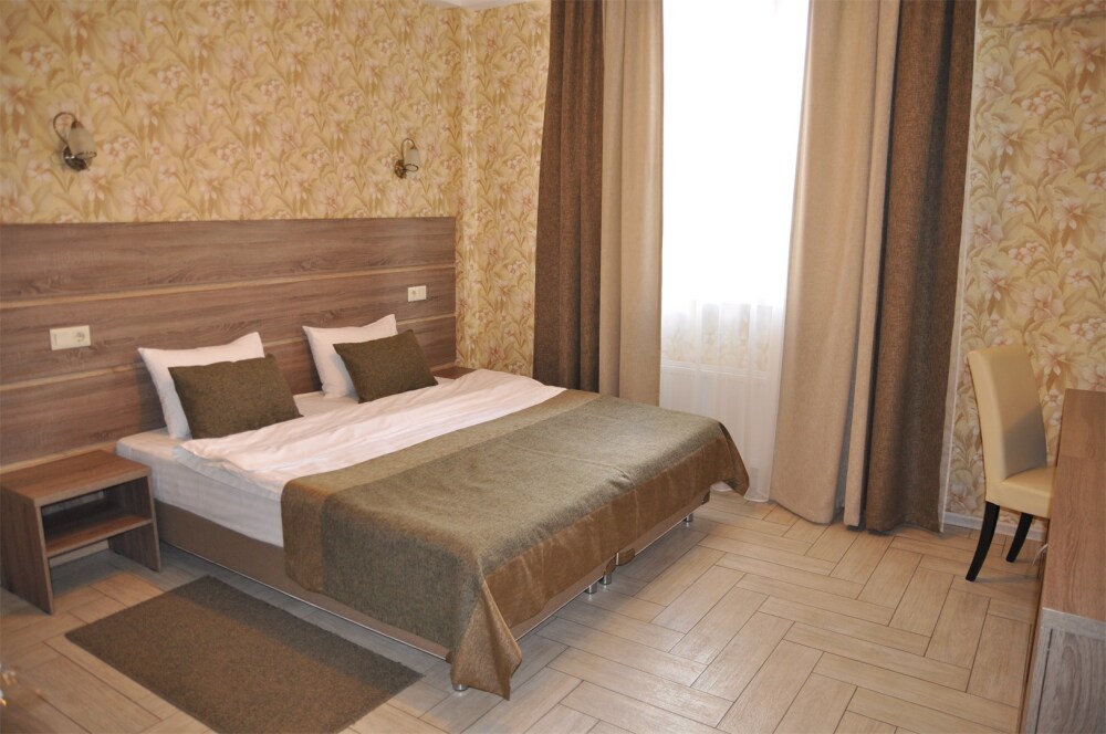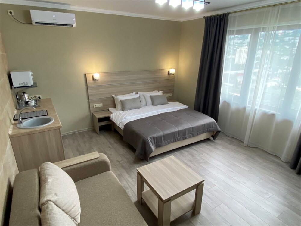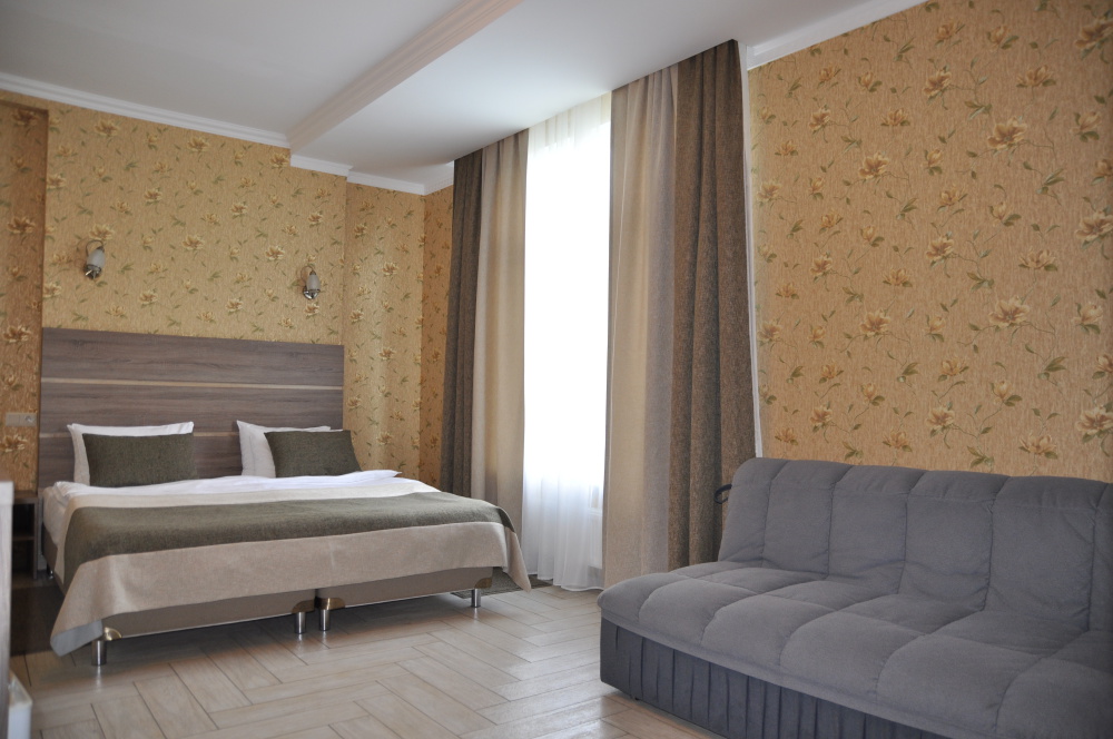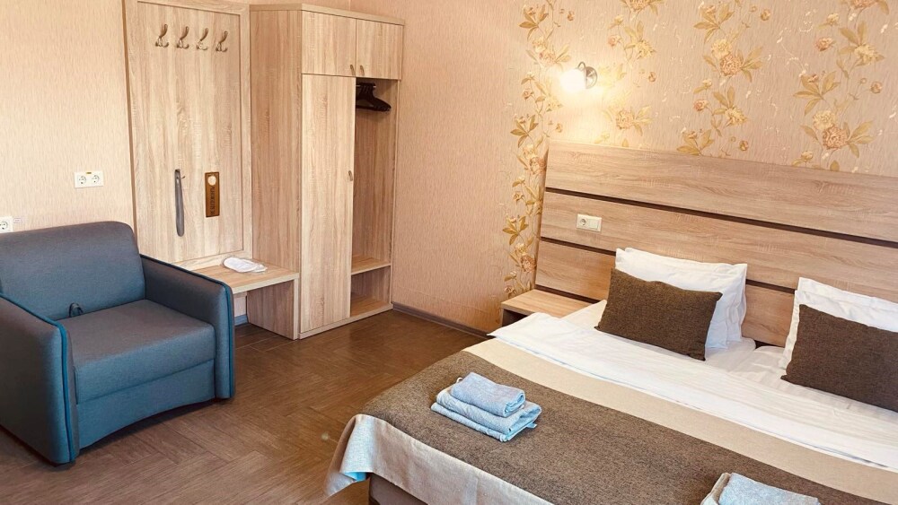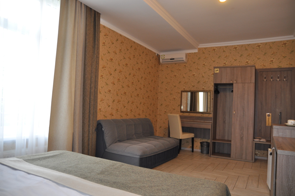 Отель абсолютно соответствует своему классу. Очень хорошо обустроена территория, в номерах чисто, к уборке претензий не было. Замечательный персонал, отзывчив на любую просьбу. Прекрасная терраса на третьем этаже, наличие в отеле кухни, стиральной машины и пр. бытовых деталей приятно удивило. Трансфер до пляжа тоже был кстати, тем более его осуществлял хозяин отеля, очень приятный и обаятельный. А запеканка, которую подавали на завтрак, превыше всех похвал, сама постоянно ее готовлю, но такой вкусной не ела никогда.Браво Ларисе Михайловне! Немного не устроило то, что подниматься пешком к отелю в горку было тяжеловато, приходилось брать такси.