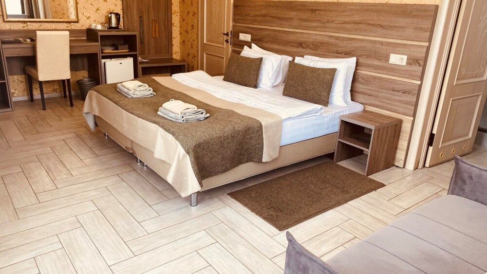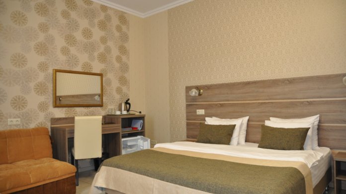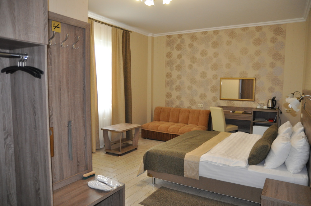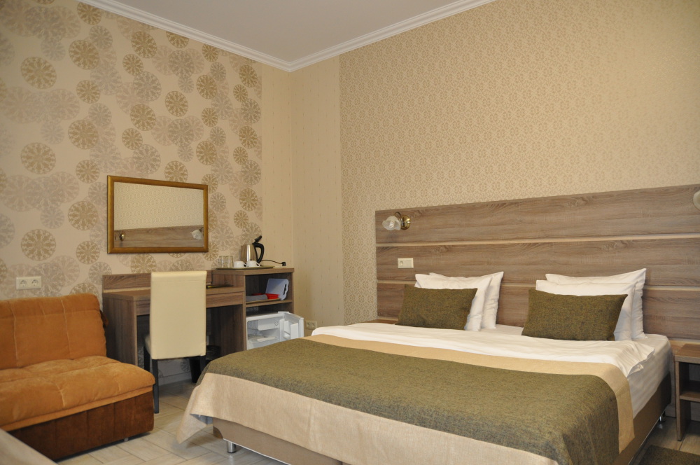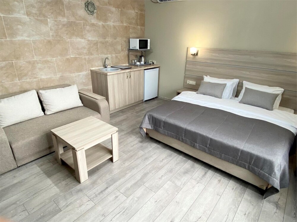 Однокомнатный комфортабельный номер со всеми удобствами. Современный классический продуманный дизайн и удобная мебель и большие туалетные комнаты с душевой кабиной.