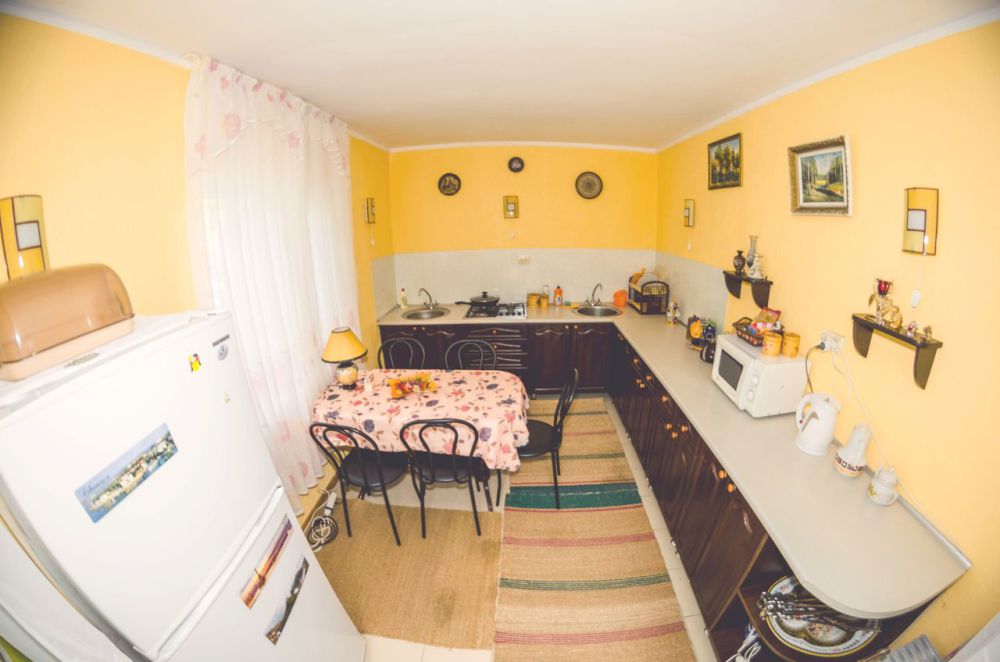 В распоряжении отдыхающих отдельная кухня с газовой плитой и всей необходимой посудой. А если Вы не хотите готовить - рядом с домом (через дорогу) отличное кафе с домашней кухней, где можно по-бюджетному утолить голод. Вокруг номеров сад, цветы.