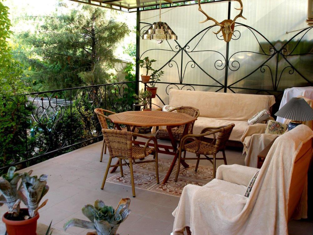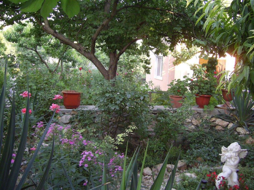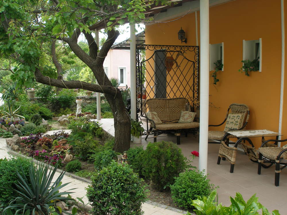 Дом расположен в глубине сада, вокруг цветы и тенистая зелень деревьев. У каждой комнаты своя веранда, где можно в свежее утро выпить чашечку ароматного чая или кофе. Вам никто не мешает – наслаждайтесь тишиной и ароматом цветов!