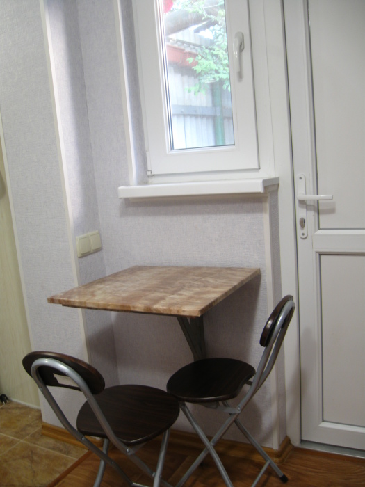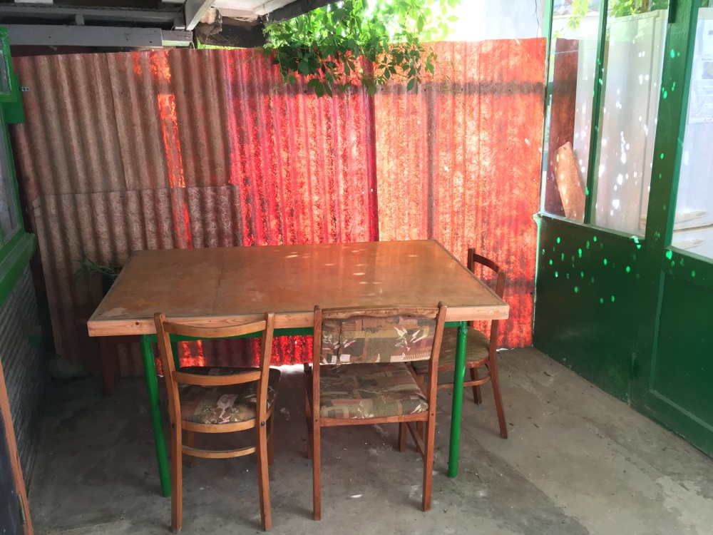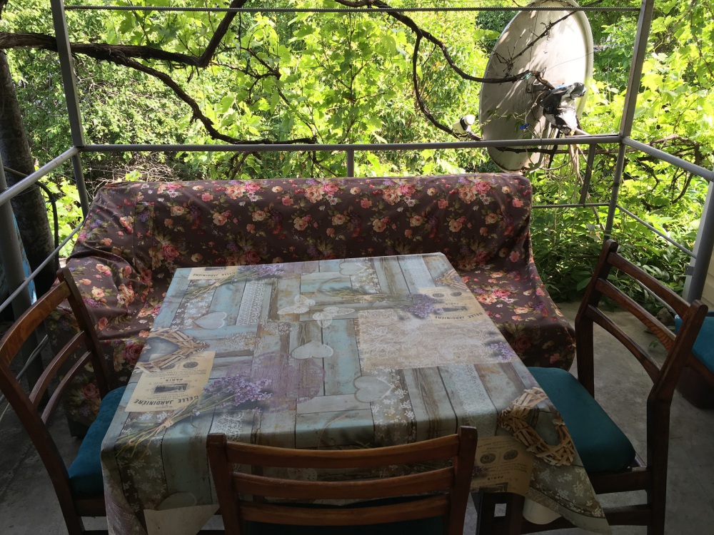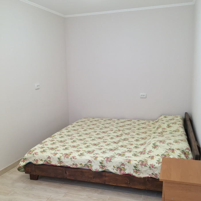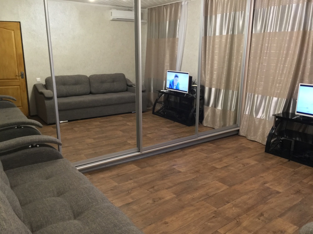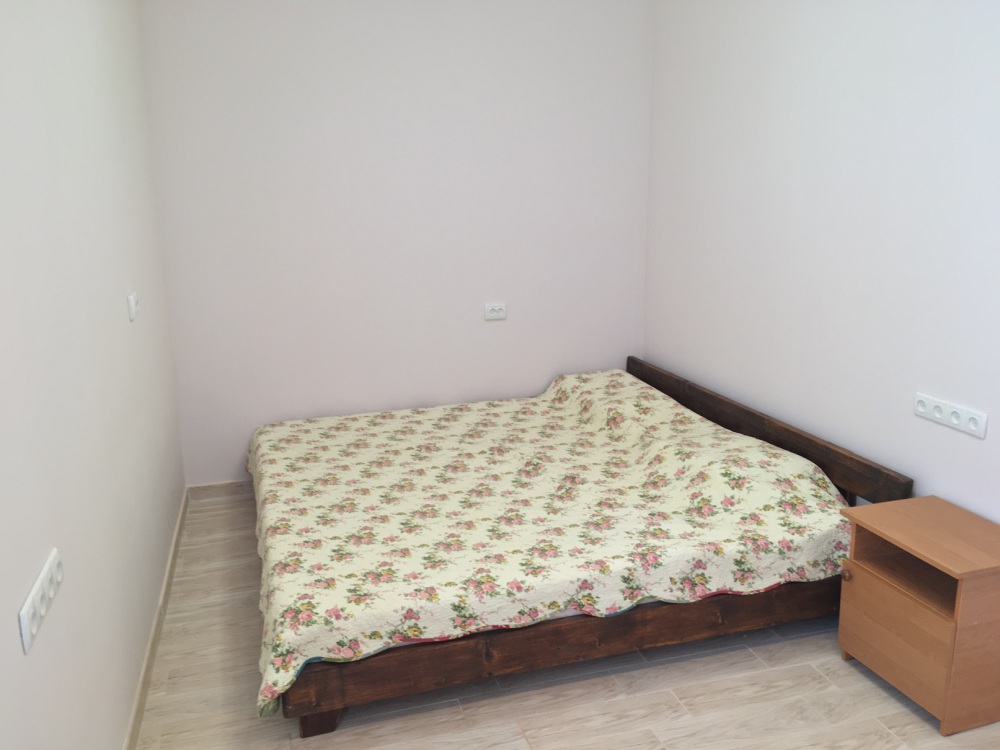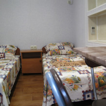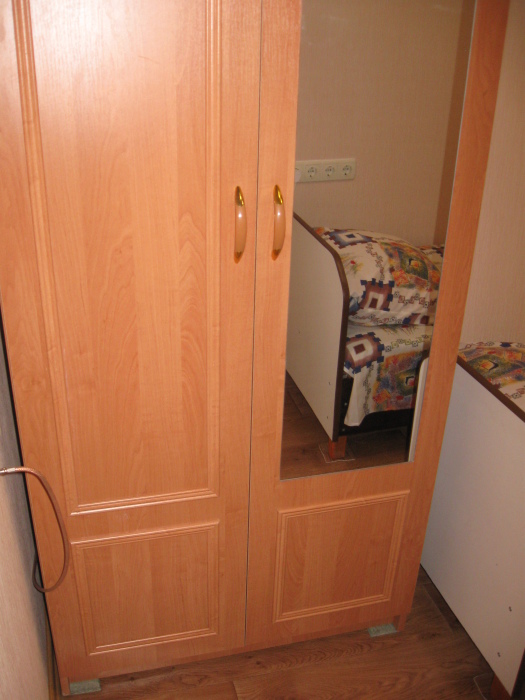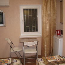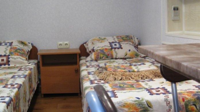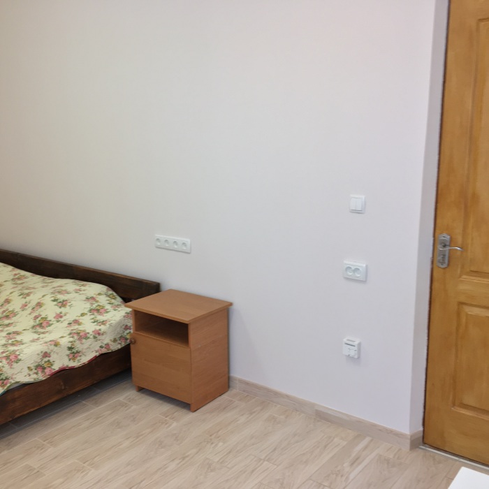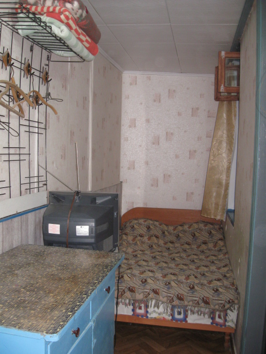 В комнате: одна кровать шириной 120 см, вторая кровать шириной 75 см, телевизор (кабельное телевидение 72 канала), бесплатный интернет Wi-Fi, вентилятор, два открывающихся окна, зеркало, три розетки, вешалка для одежды, 2 стула, 2 тумбочки. На полу линолеум. Комната узкая, шириной 1,5 метра, но длинная - 5 метров, как лоджия. Удобства во дворе (душ, 2 туалета), горячая и холодная вода круглосуточно. Душем, туалетами и холодильником кроме Вас будет пользоваться еще только один человек. Во дворе - общая летняя кухня с газовой плитой на 4 конфорки, с большим холодильником и всей посудой.