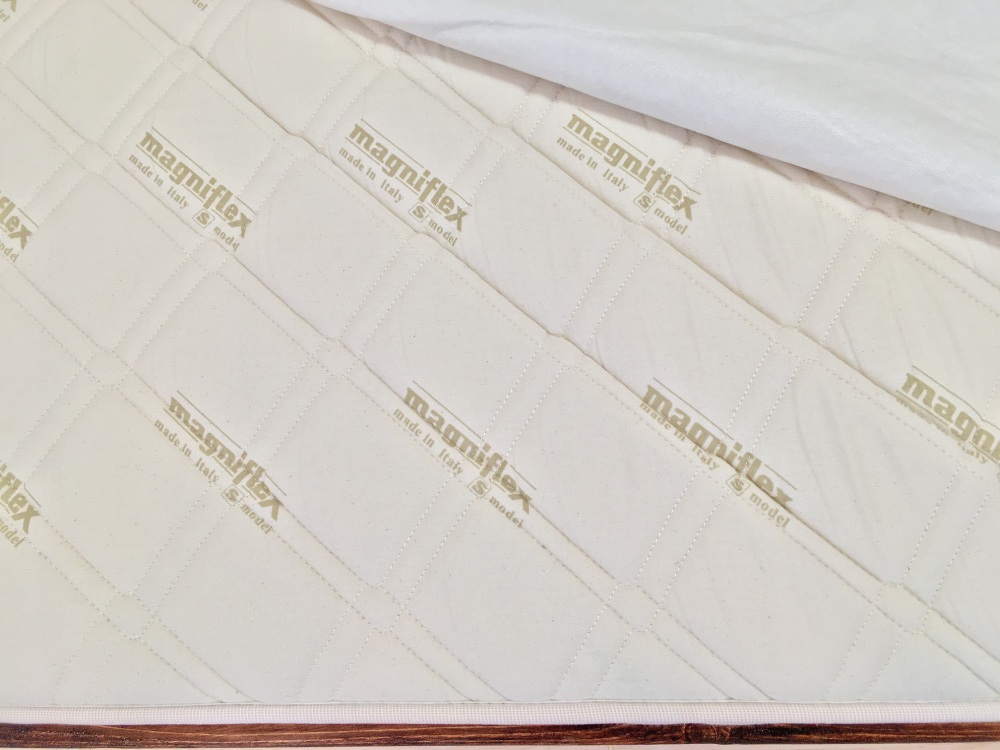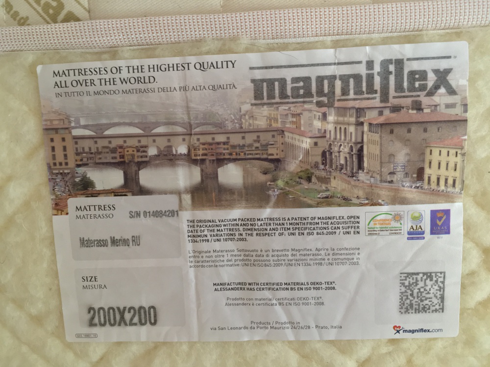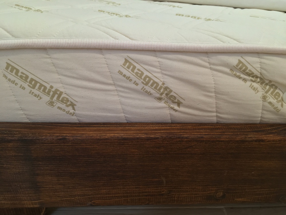 В спальне стоит шикарная деревянная кровать размерами 2 метра на 2 метра, с новым итальянским ортопедическим матрасом фирмы Magniflex, модель MERINO (MERINOS), размером 2 метра на 2 метра.