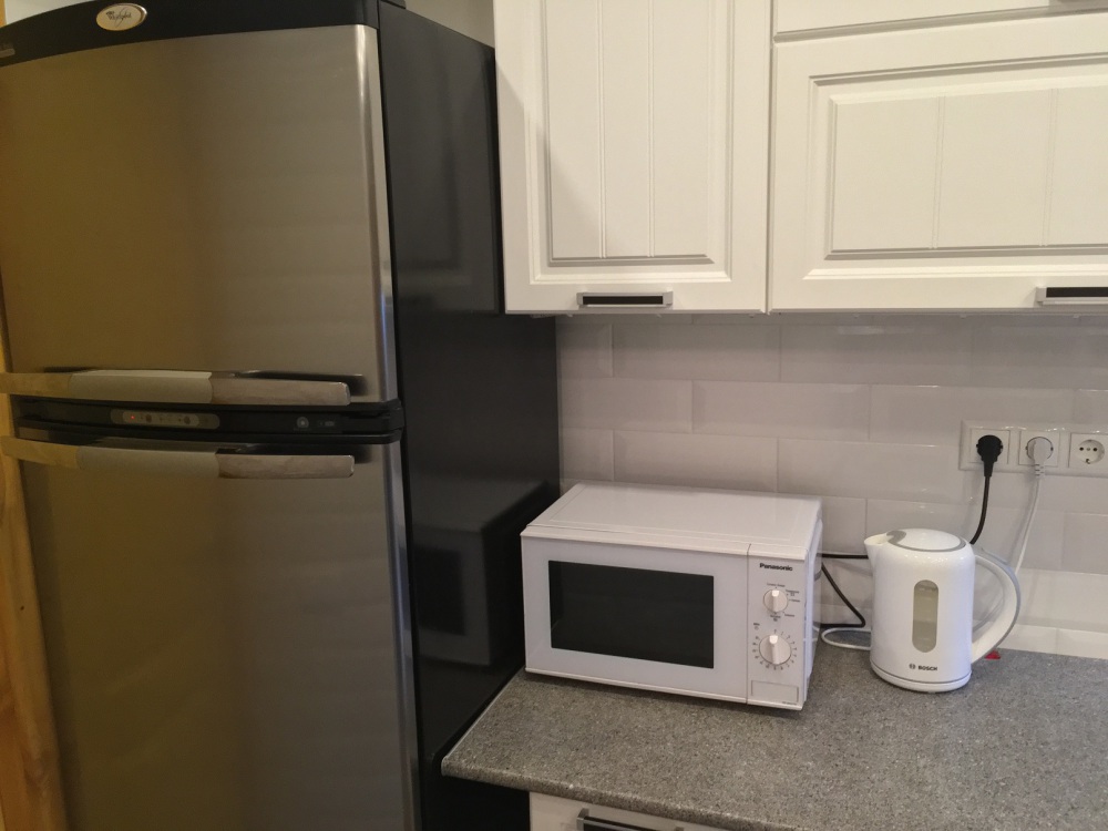 Кондиционер, стиральная машина, большой двухкамерный холодильник, микроволновка, эл.чайник, фен, телевизор с 27 цифровыми каналами, Wi-Fi.