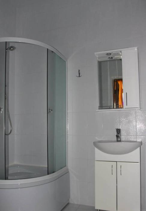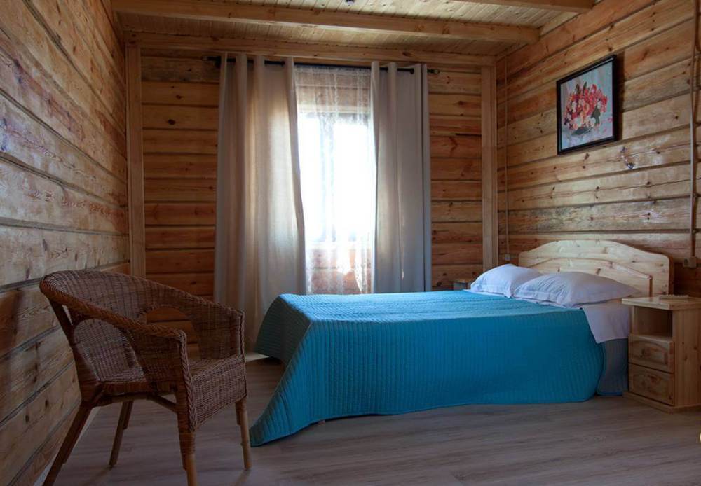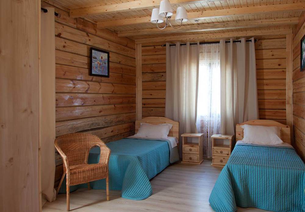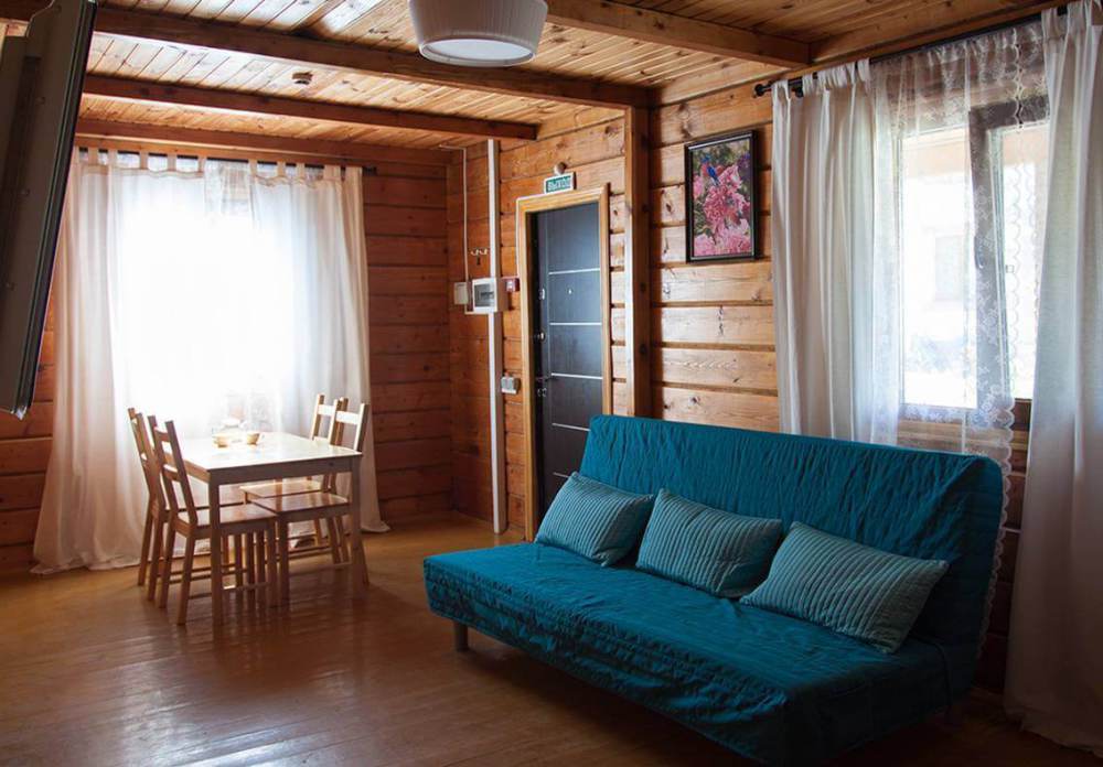 Двухэтажный коттедж - это две спальни, гостиная, два санузла и мини-кухня. В коттедже 4 основных места. В спальнях 2 одноместных кровати и одна двухместная. В гостиной имеется раскладной диван. Жилая площадь позволяет размещение одного дополнительного места. Мини-кухня оборудована микроволновой печью с комплектом посуды, большим холодильником и набором мебели (обеденный стол и стулья).