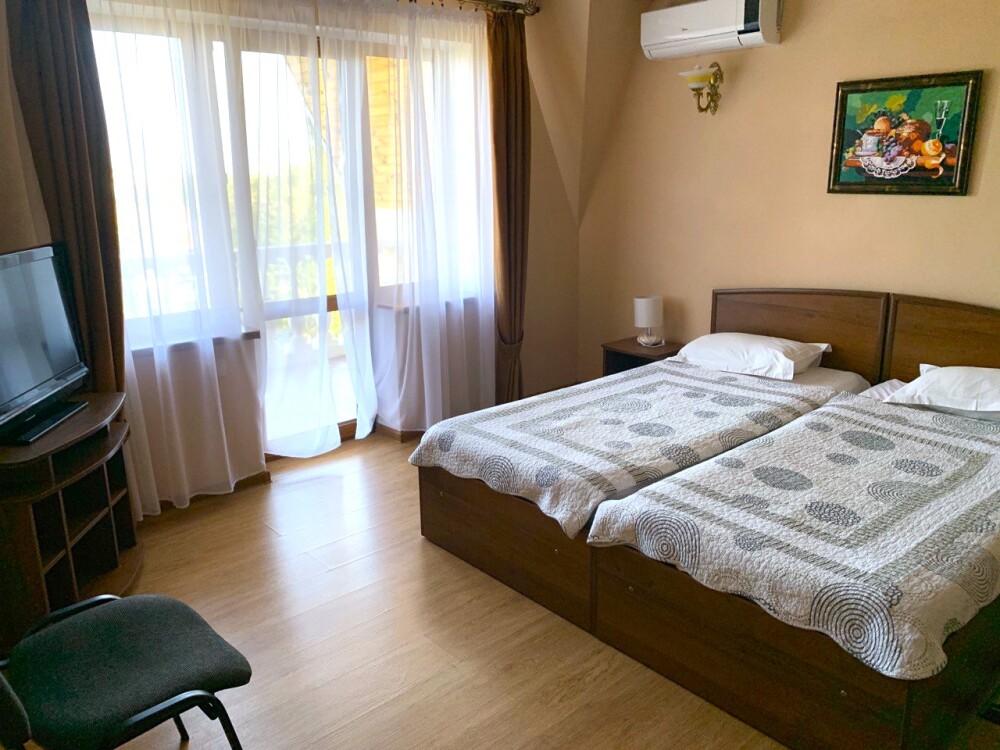 Наш комфортабельный отель расположен возле базы отдыха «Прибой», в двух шагах от берега Черного моря.