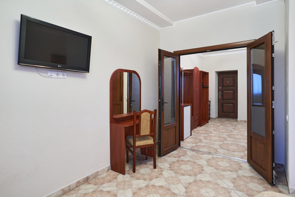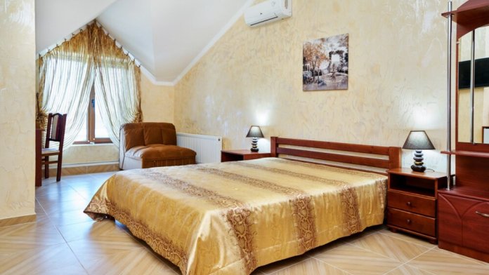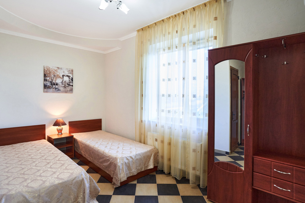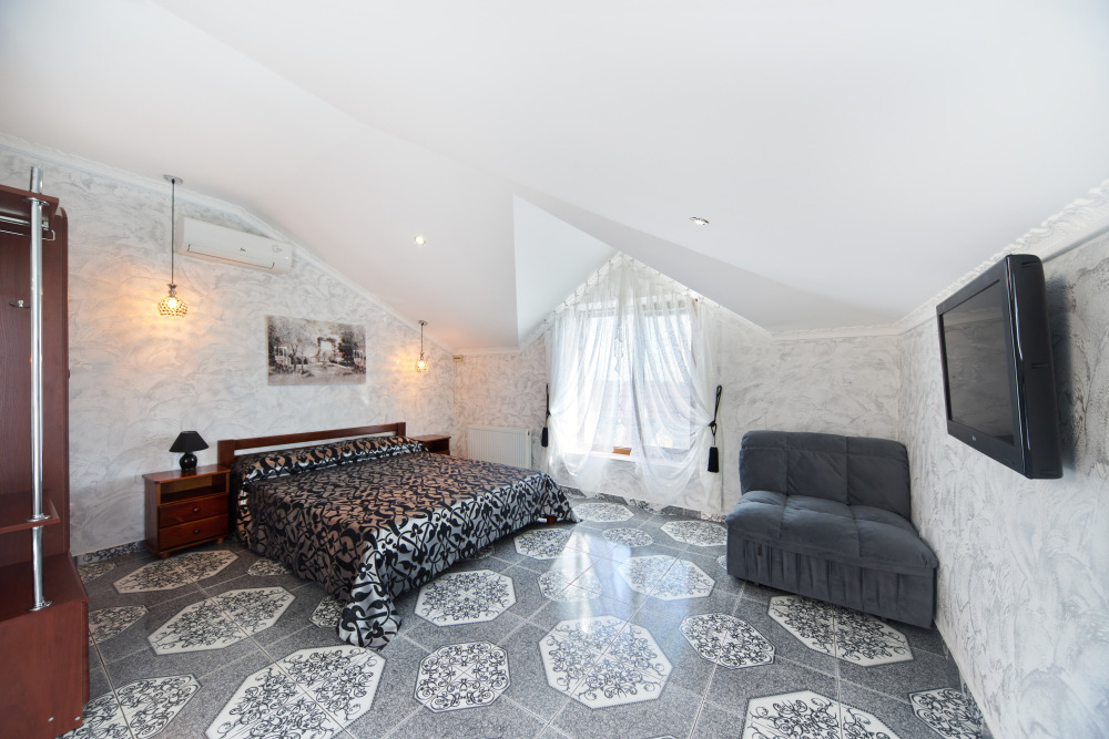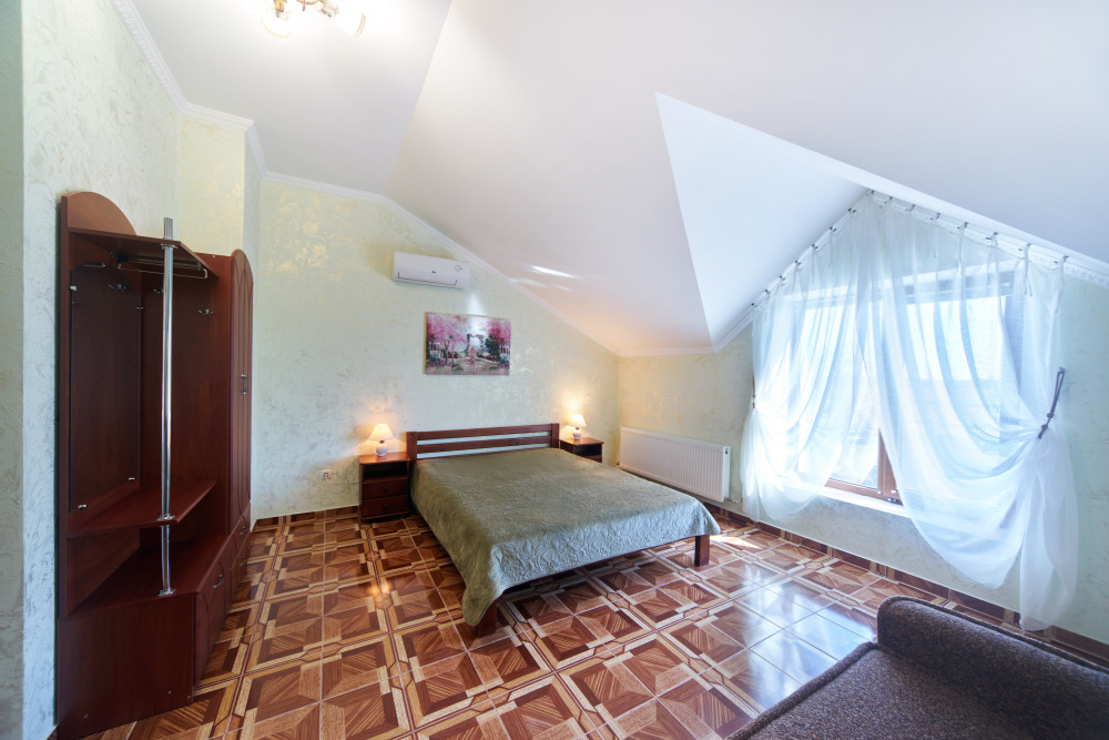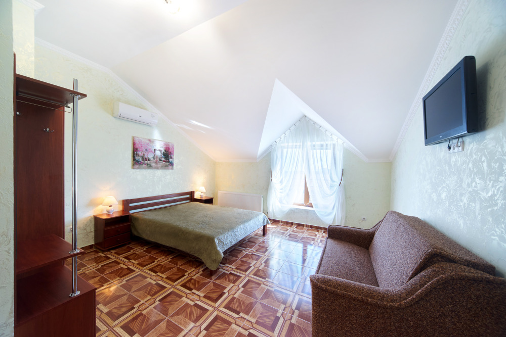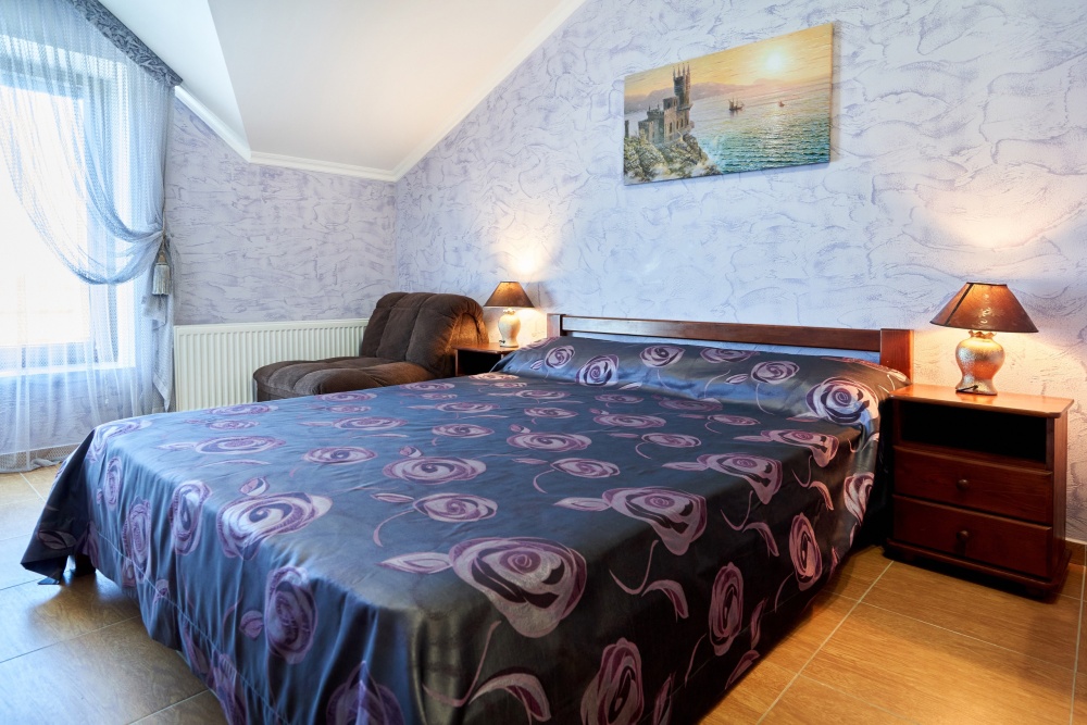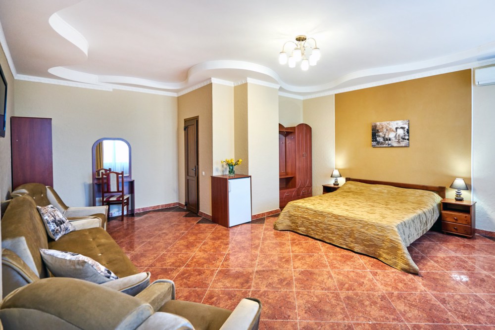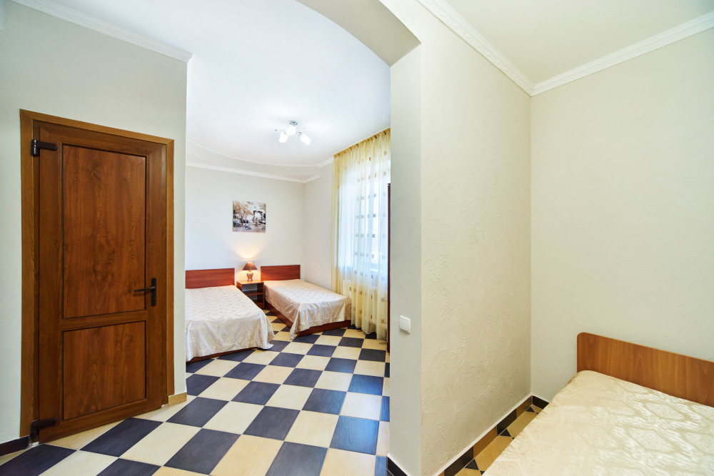 В гостевом доме есть номера, которые подойдут как небольшой семье или компании, так и большие двухкомнатные номера, которые вмещают в себя до 6 человек.