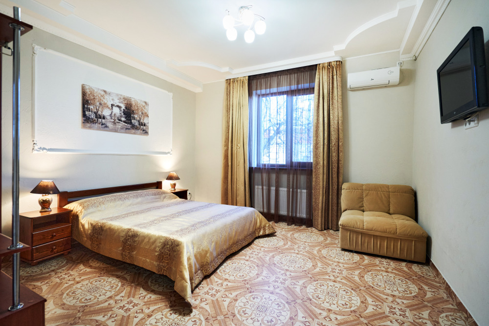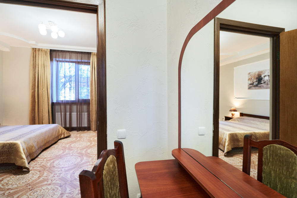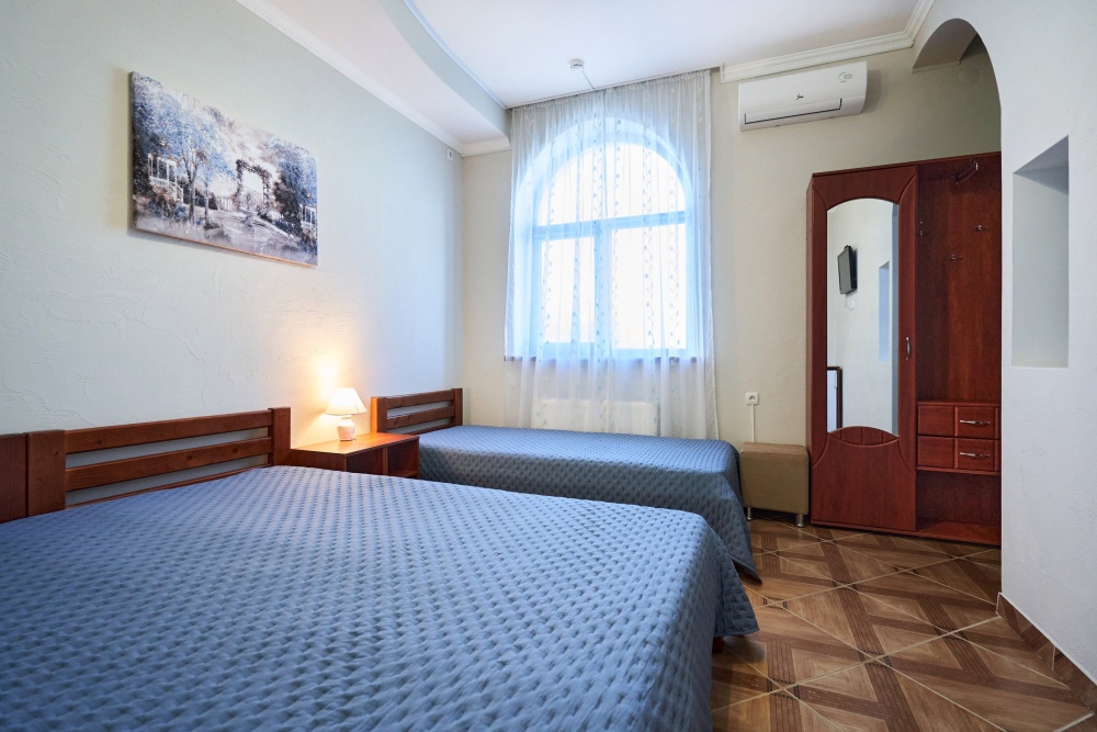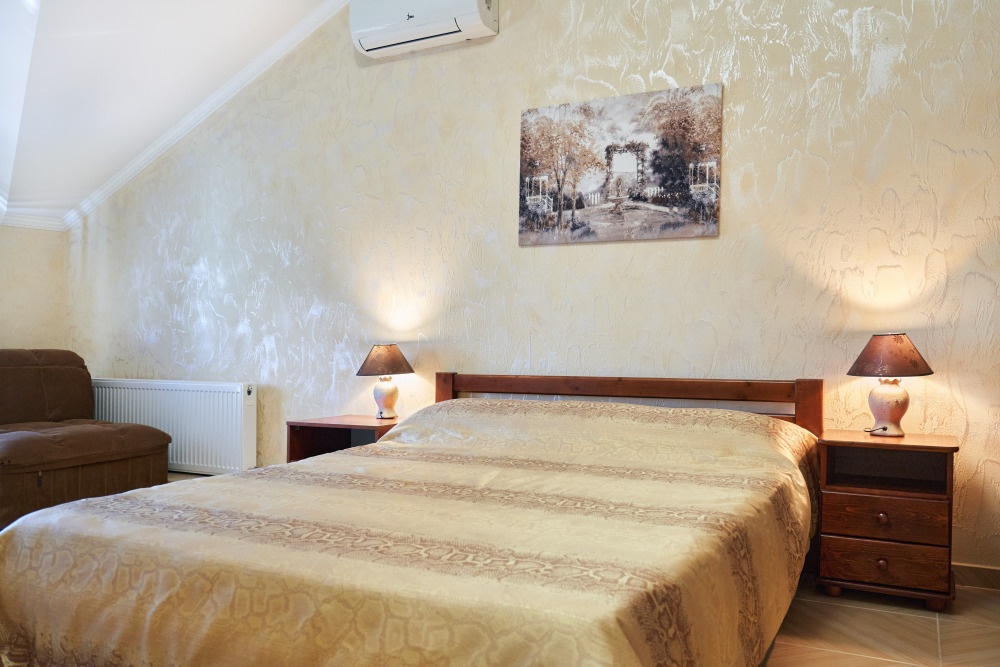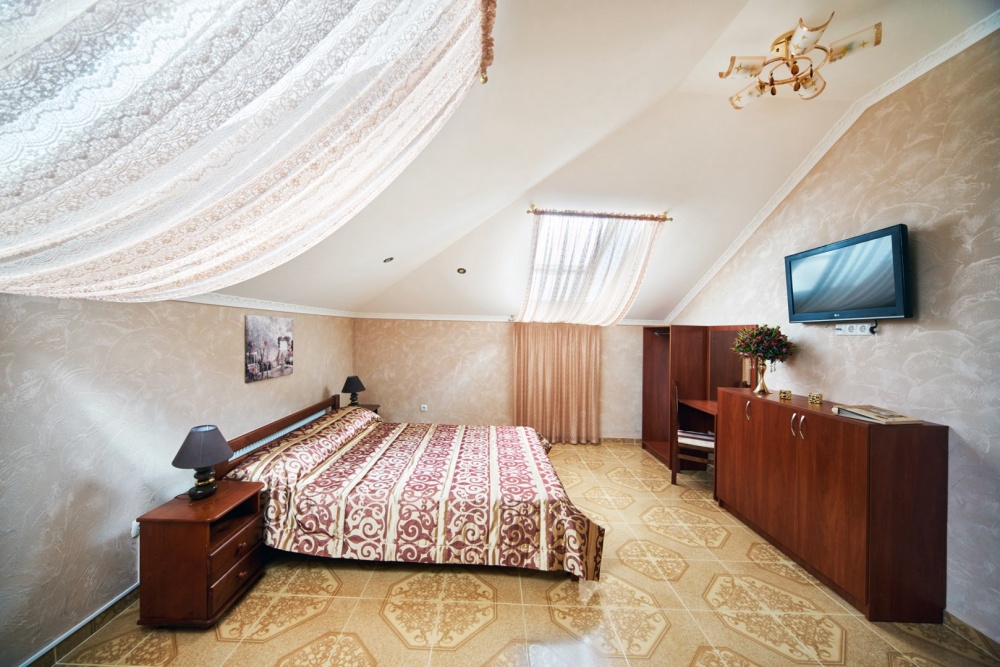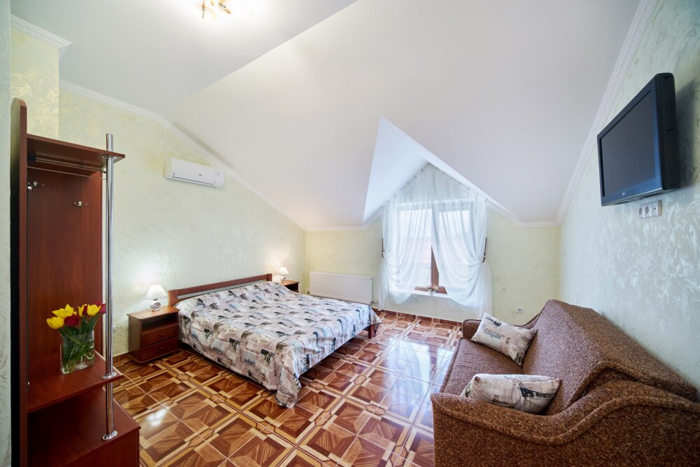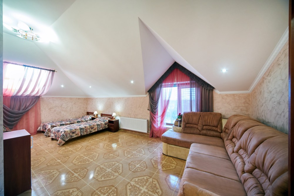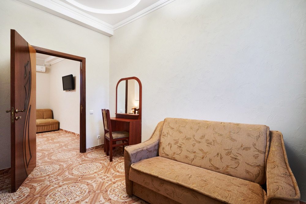 В гостевом доме есть номера, которые подойдут как небольшой семье или компании, так и большие двухкомнатные номера, которые вмещают в себя до 6 человек.